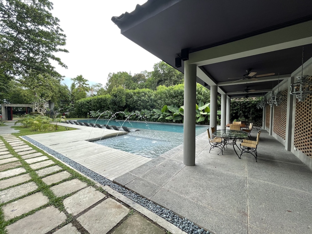 Unwind by the outdoor pool or enjoy the serene garden view.