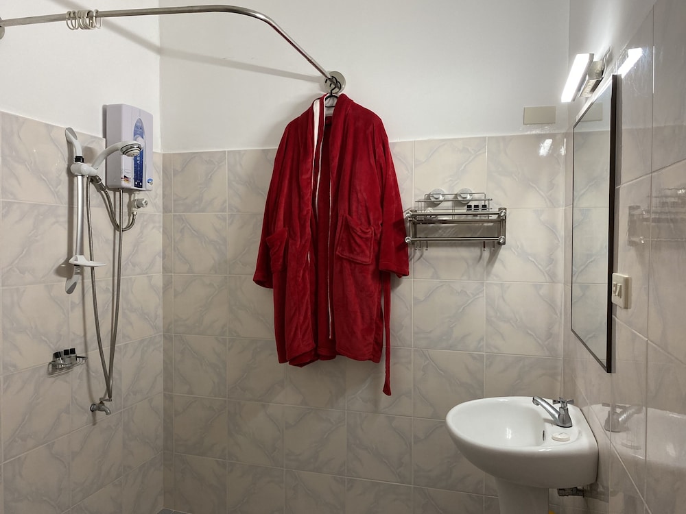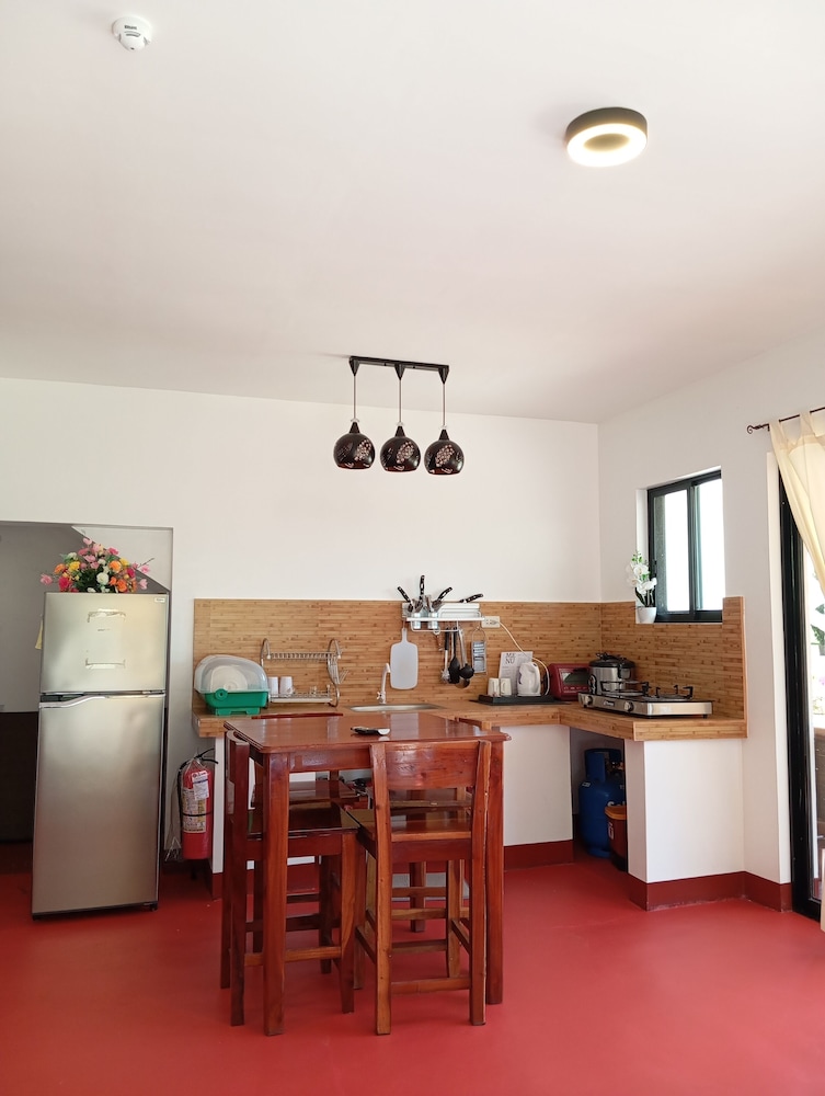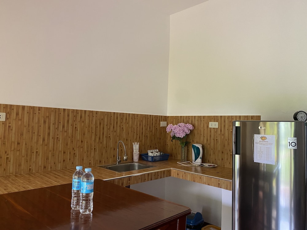 The unit was clean and came with a kitchen sink, large fridge and kettle. The bathroom was basic but clean and had hot water. Bedroom had a TV but we never turned it on, only gripe in room was mattresses were the 5-6in dense foam, very common in the Philippines but way to firm for my wife’s liking.