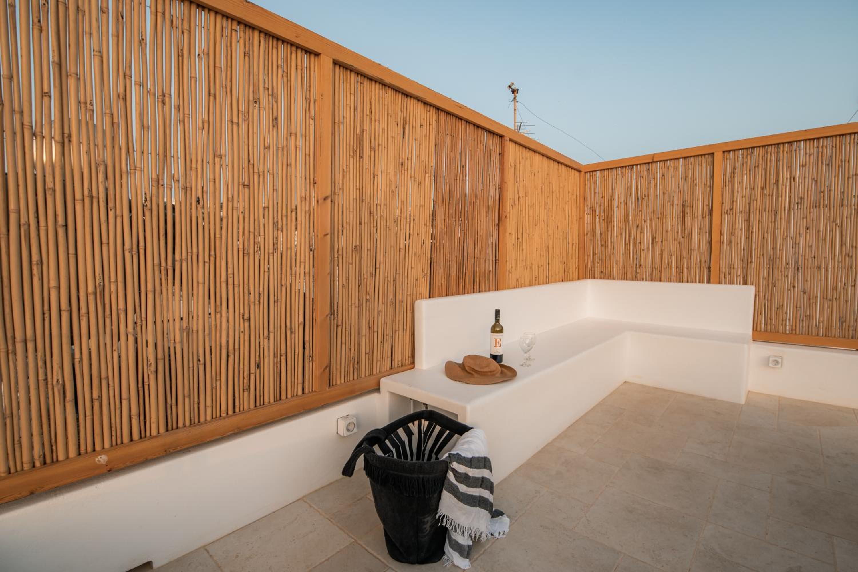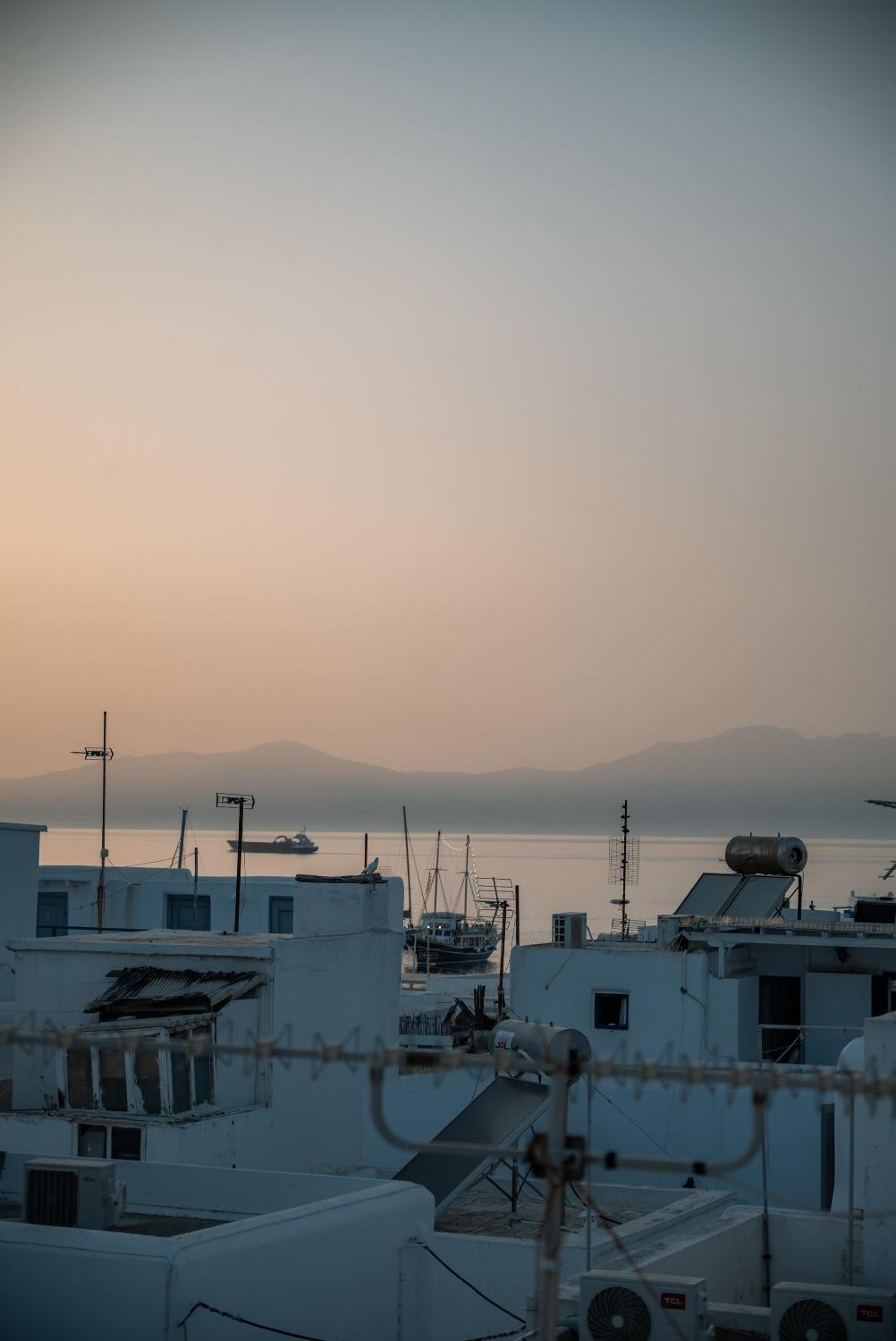 the location is closed to the Mykonos Windmills and in walking distance to everything in Little Venice...having a roof top terrace is very nice, however the majority you see are other roofs, antennas and pigeons...