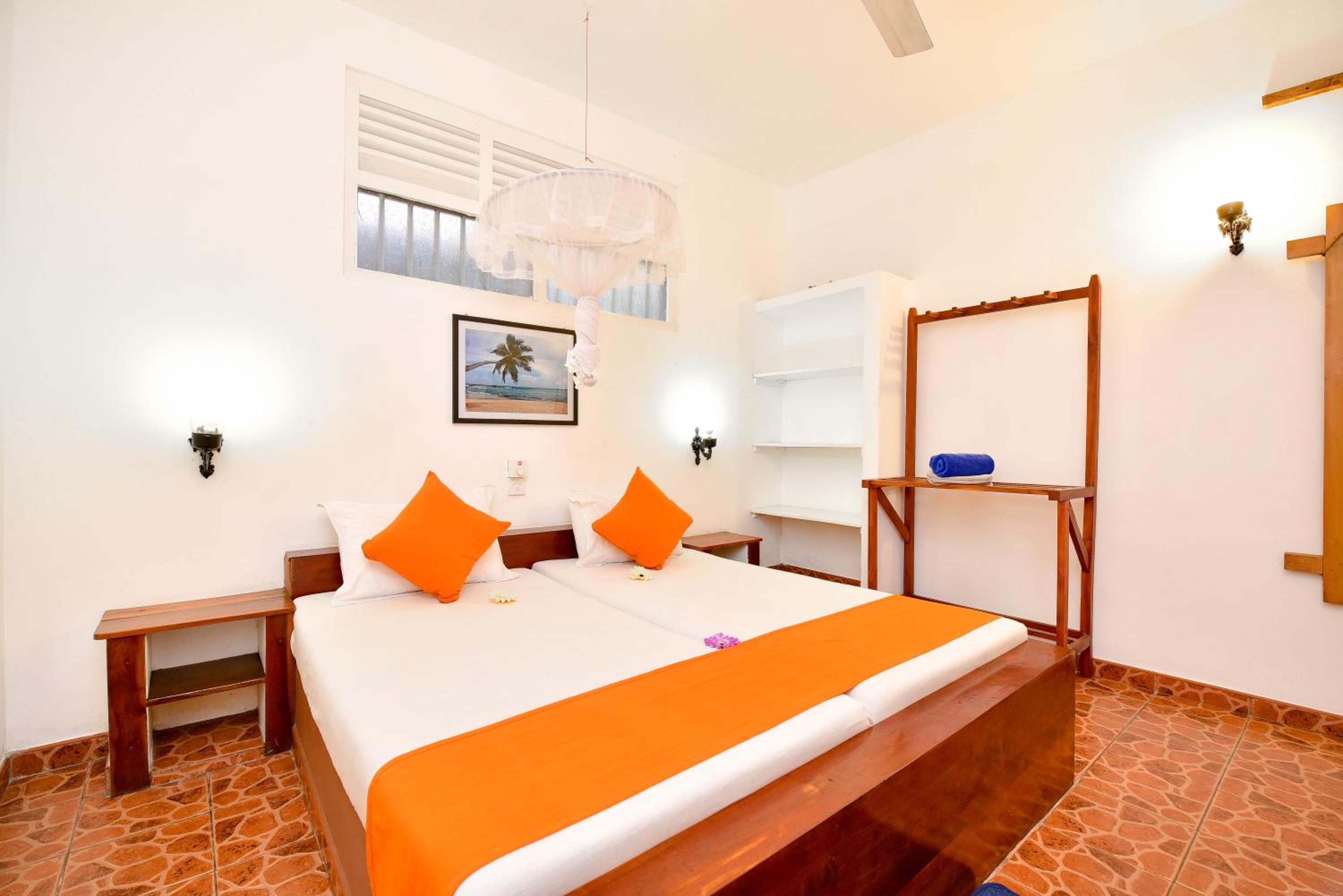 Det var en fantastisk beliggenhet ved en nydelig strand. Rommet vårt vendte ut mot stranden og fin utsikt. Store rom, AC og vifte. Veldig hyggelig personalet og spesielt Janaka tok godt vare på oss. Veldig god frokost inkludert. Veldig mye for pengene.