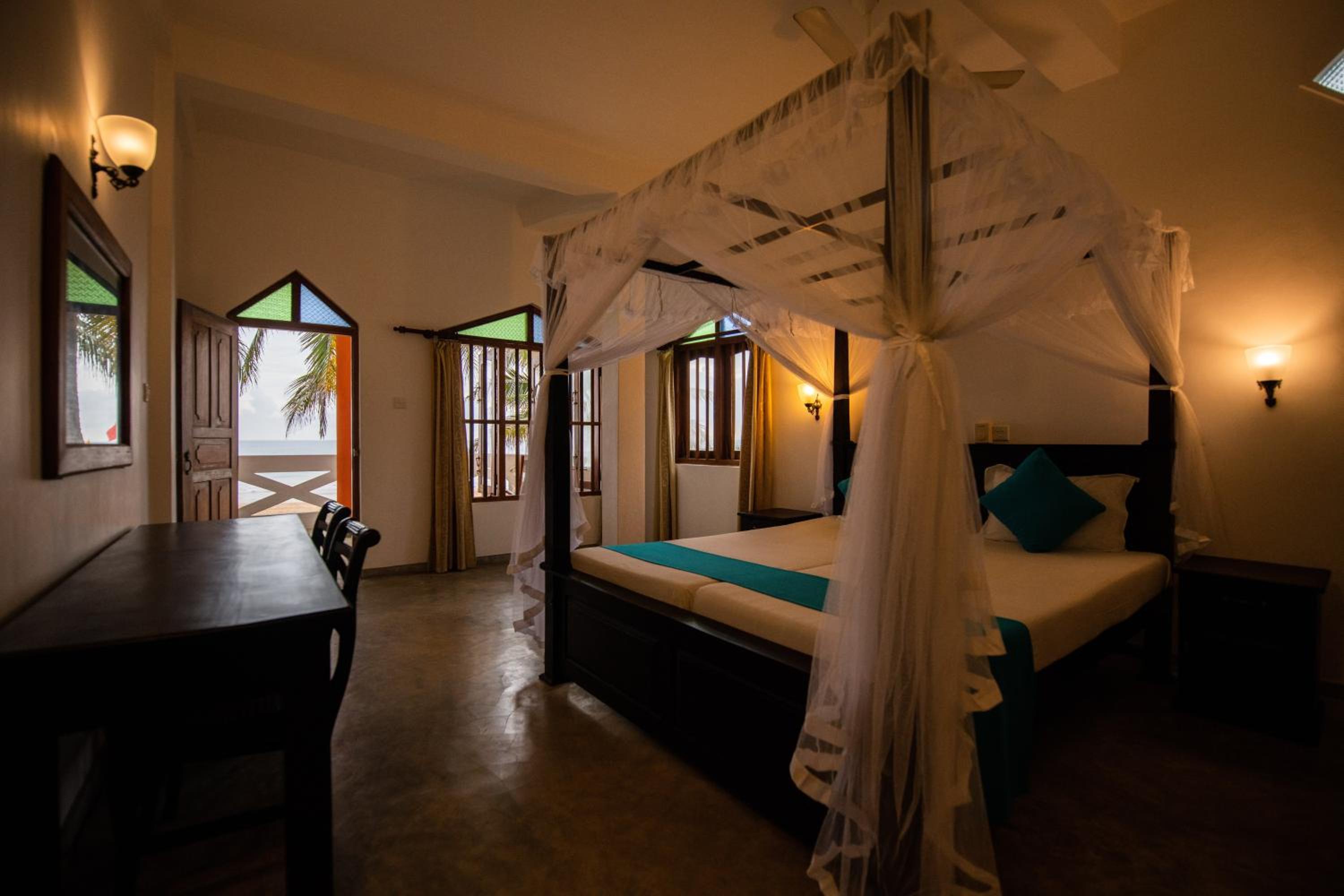We hadden kamer geboekt met zeezicht. 1e nacht hadden we een kamer met uitzicht op rotzooi, en een heel klein stukje zeezicht. Dit direct gemeld. Zeezicht kamers waren vol, kon pas de volgende dag zeezicht kamer krijgen. Terwijl we maanden geleden al geboekt hadden. Zeer teleurstellend. Over compensatie daar wou de receptionist niks van weten. De volgende dag werd de rotzooi opgeruimd en het zicht beter, waarom doen ze dat niet van te voren. Elektriciteit werkte niet met de wereldstekker welke wij in Sri Lanka hadden gekocht. Strandstoelen bij de accommodatie aan het strand waren niet verstelbaar. Dus alleen liggen,