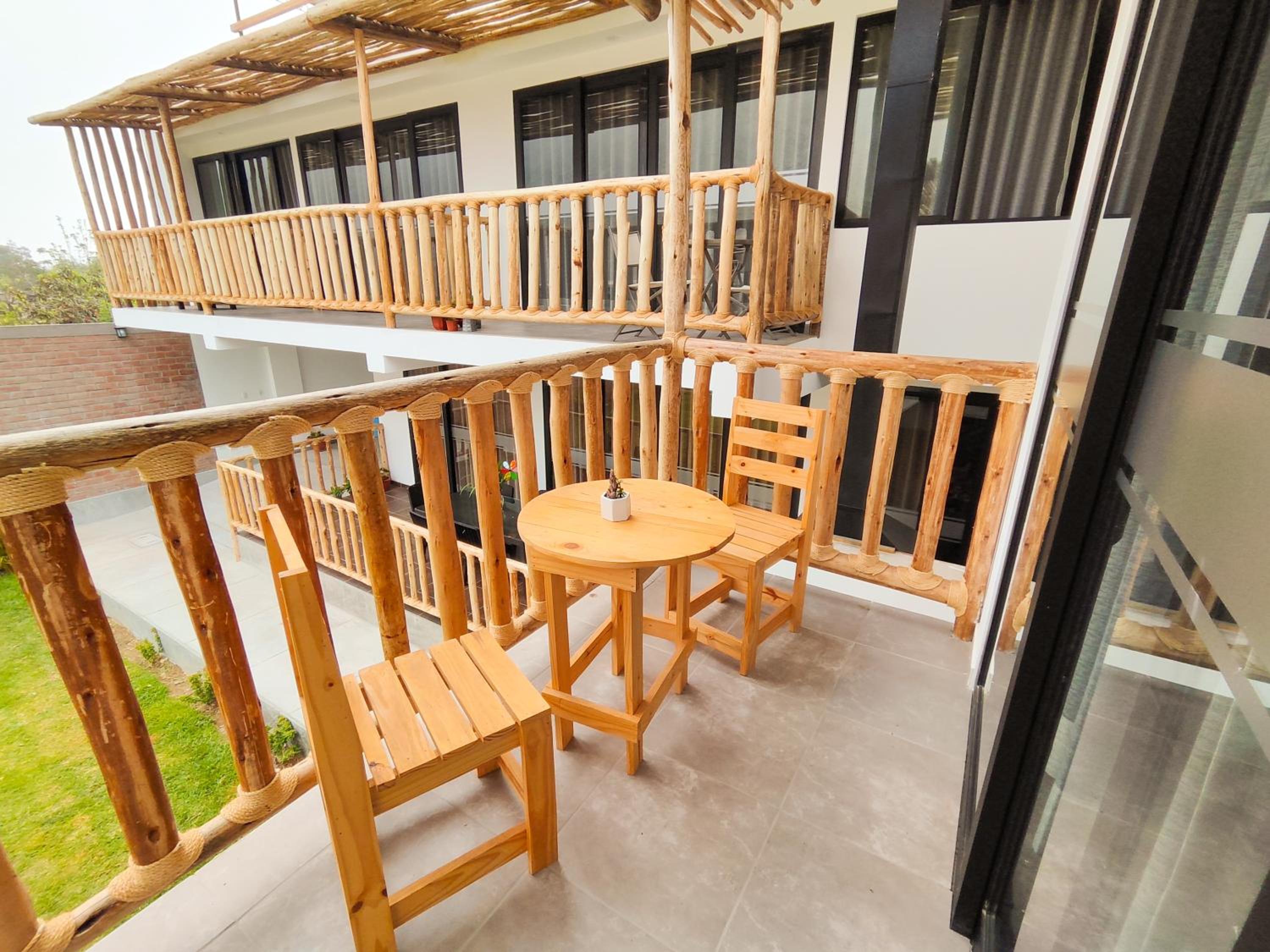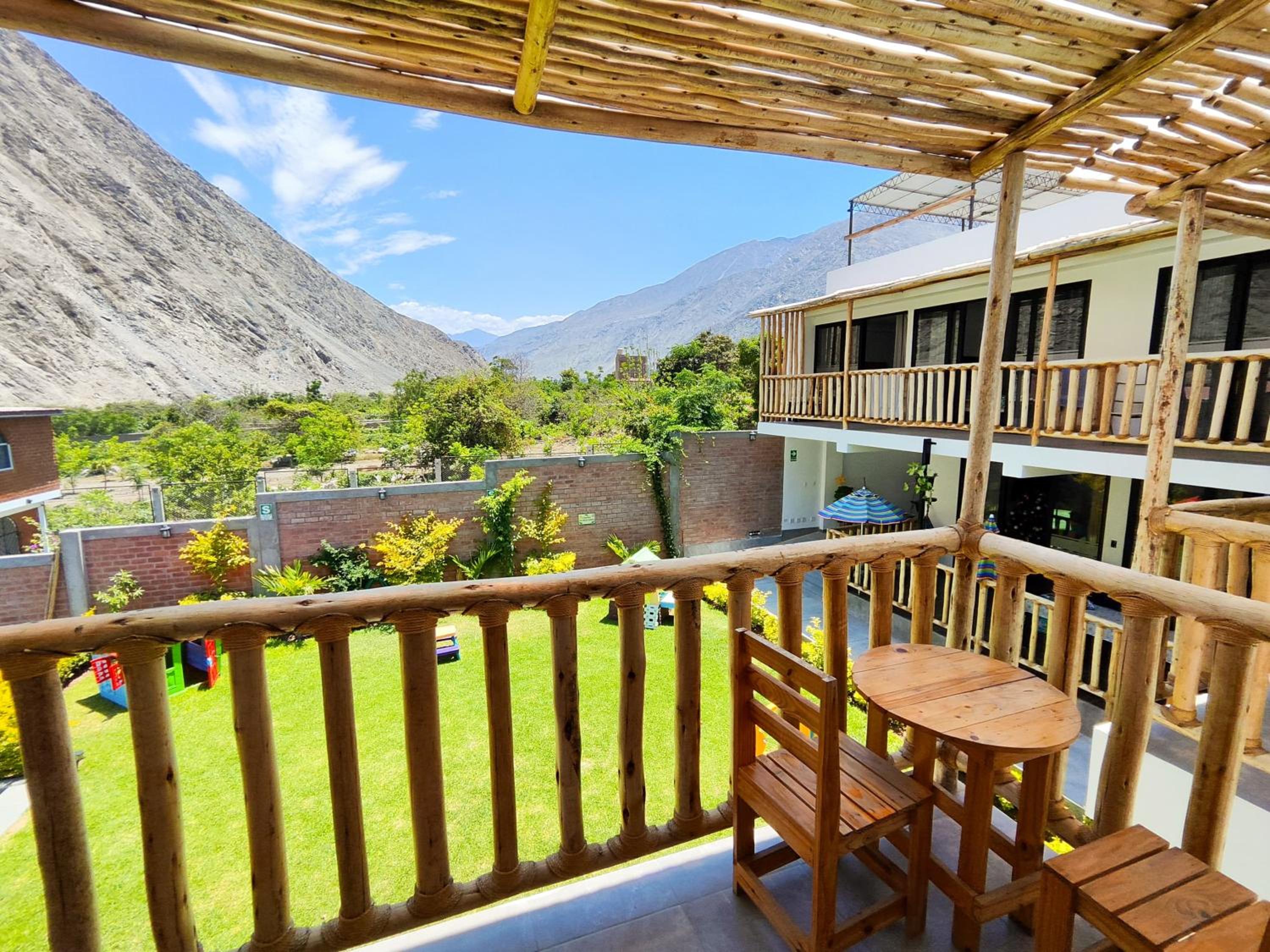 Each room at Jalara Lunahuaná Hotel offers a private balcony with a picturesque garden view, providing a serene and peaceful atmosphere for guests.