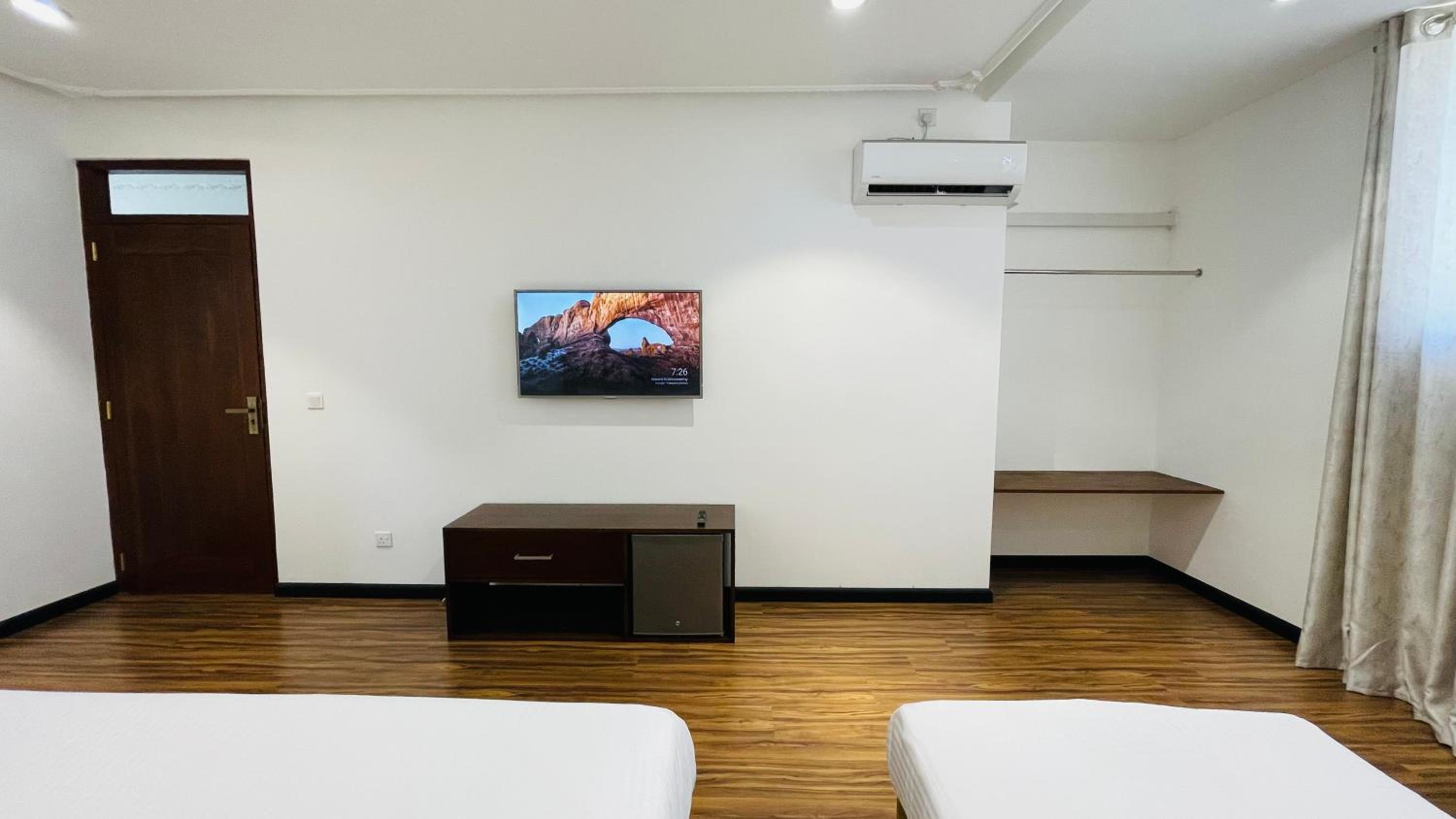 Please avoid visiting this hotel. There are many insects inside the property. We even found a lizard in our room, and there were mice running outside our room. Additionally, the AC was leaking water.