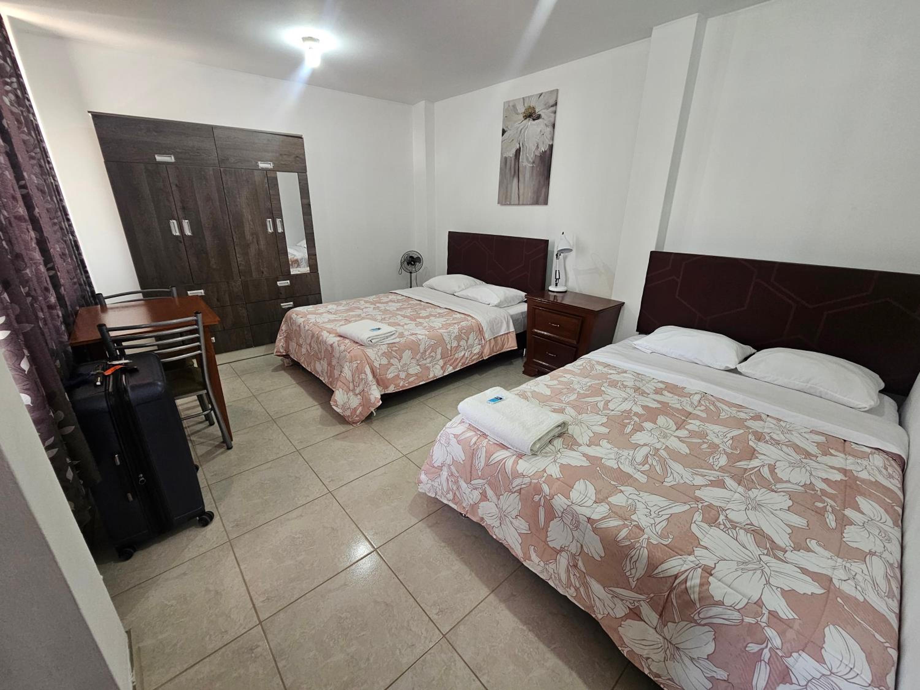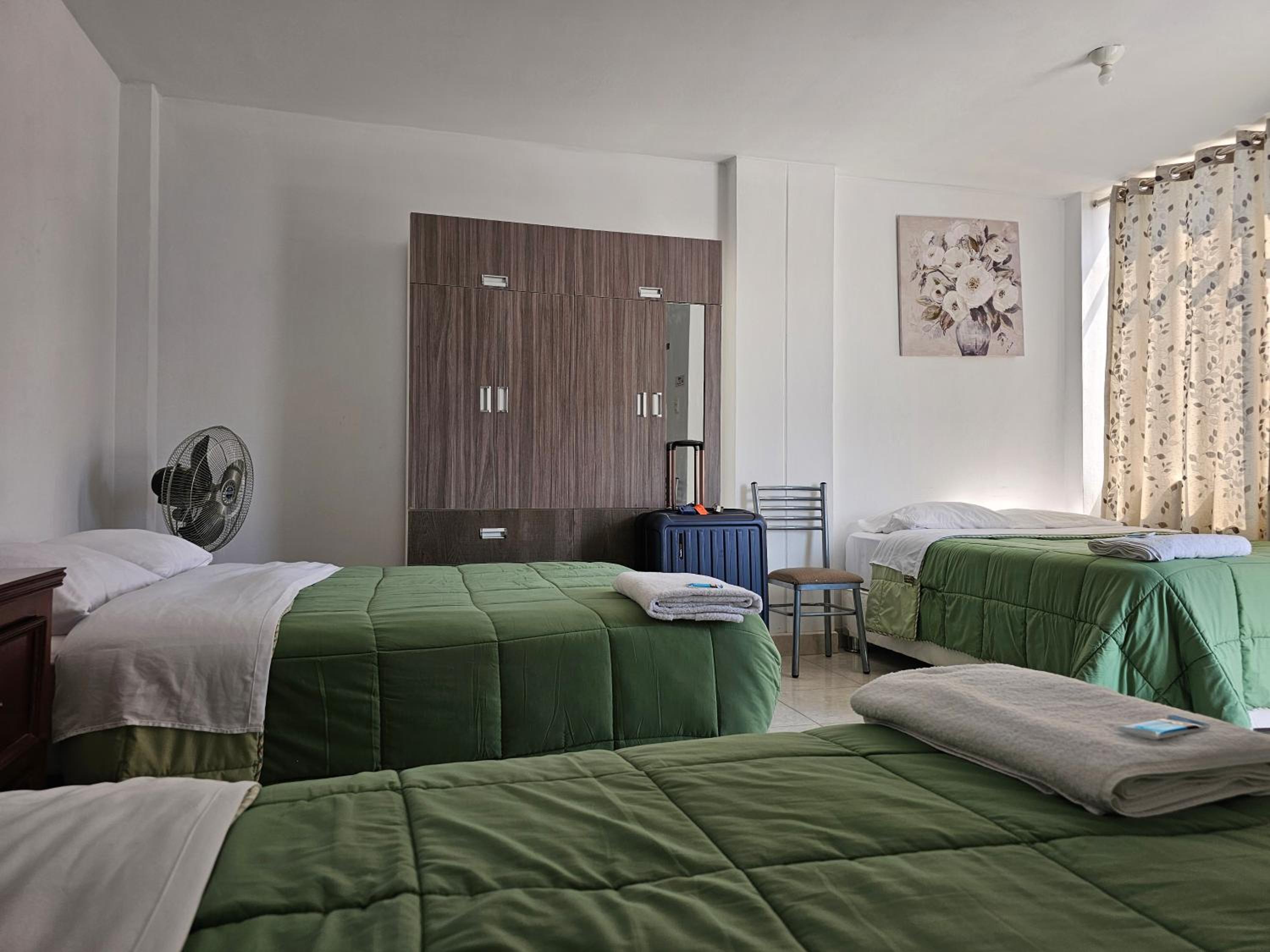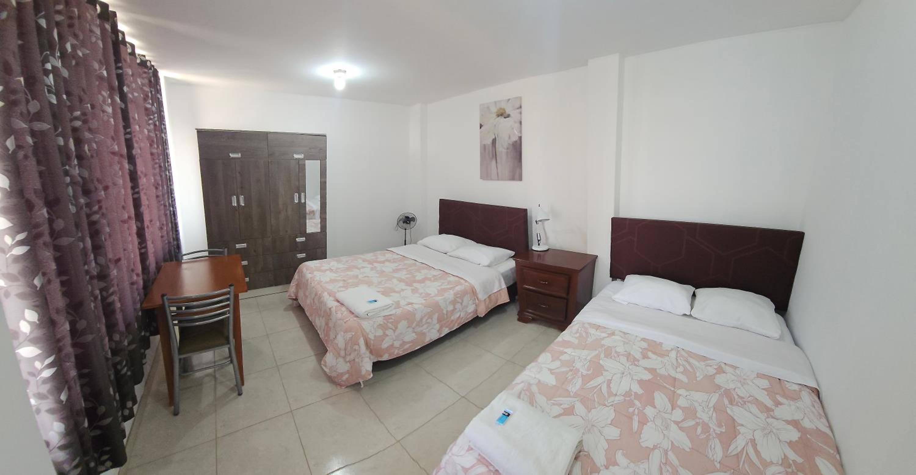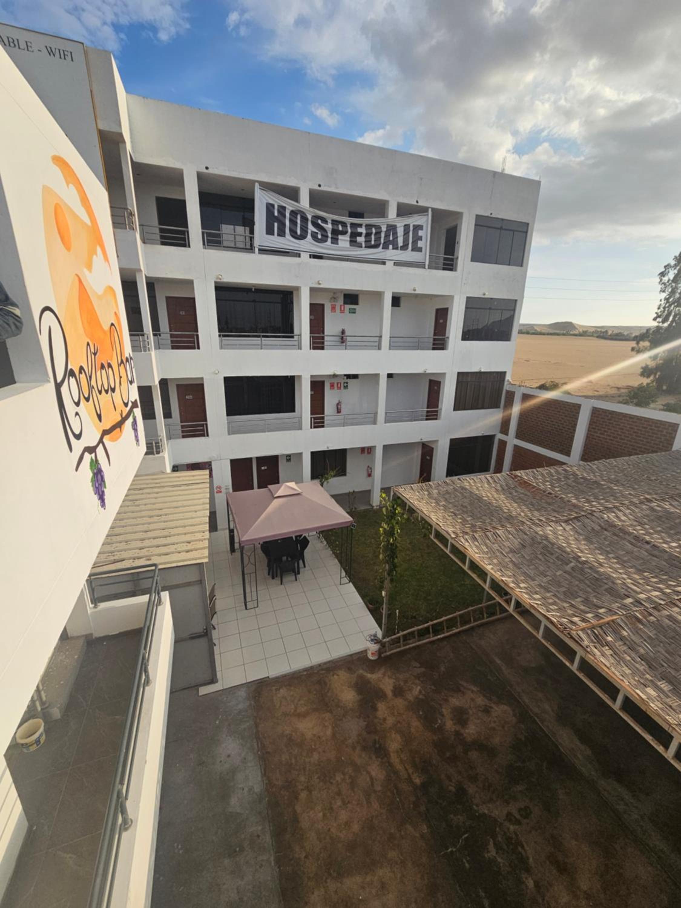 El hotel está en un sector alejado del ruido de ICA, y relativamente cerca del Oasis de La Huacachina (en auto o taxi). La cama muy cómoda, la pieza muy amplia, baño con agua caliente e insumos de aseo. El hospedaje cuenta con parqueadero y sirven un buen desayuno. El señor Adrian muy formal, lo mismo el joven que no recuerdo su nombre.