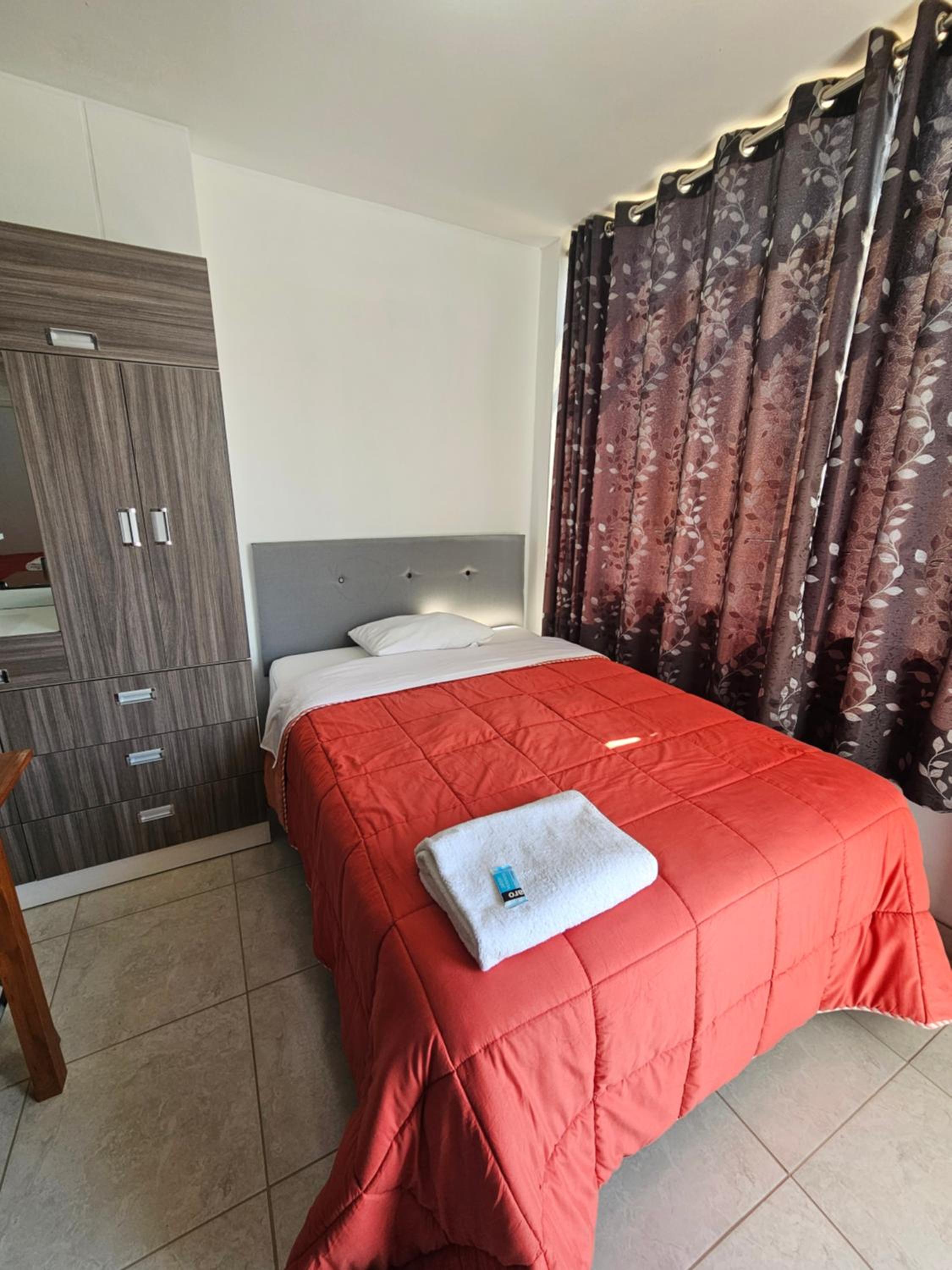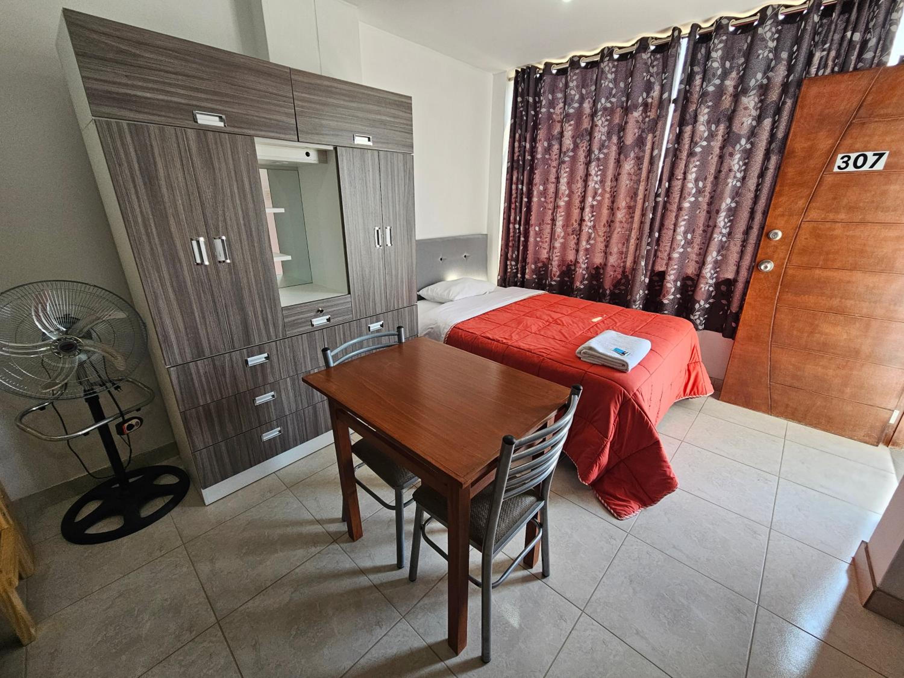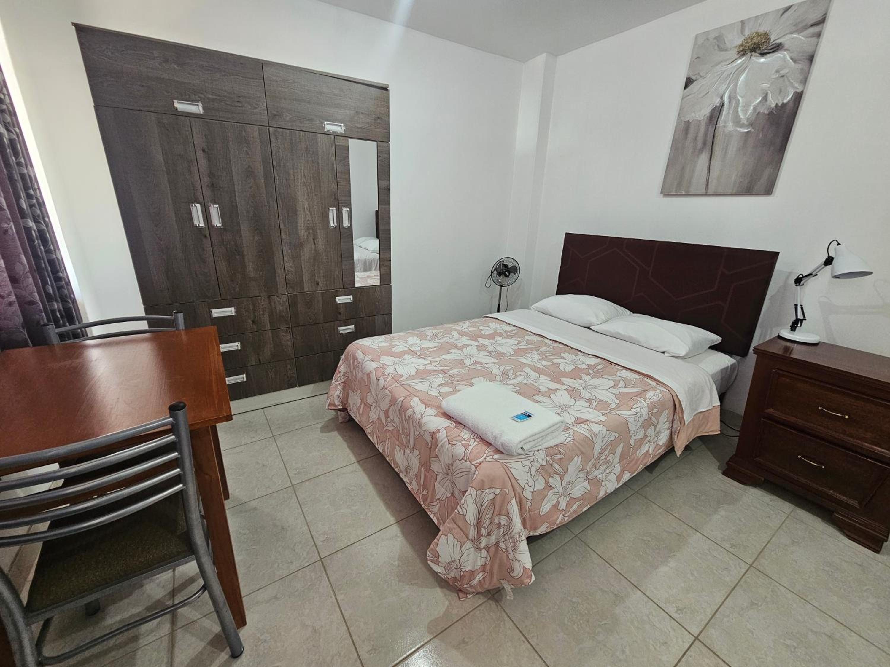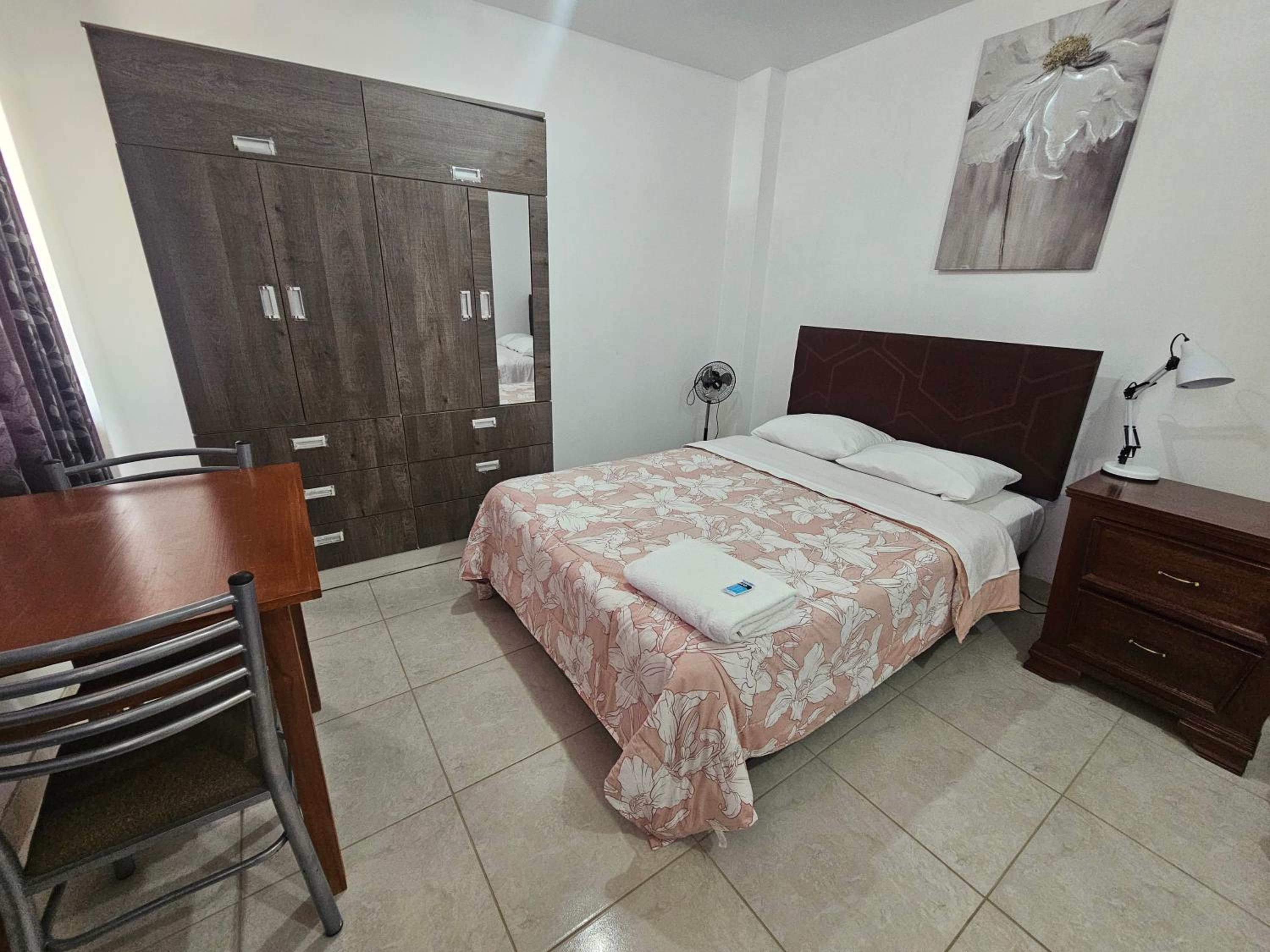 El hotel está en un sector alejado del ruido de ICA, y relativamente cerca del Oasis de La Huacachina (en auto o taxi). La cama muy cómoda, la pieza muy amplia, baño con agua caliente e insumos de aseo. El hospedaje cuenta con parqueadero y sirven un buen desayuno. El señor Adrian muy formal, lo mismo el joven que no recuerdo su nombre.