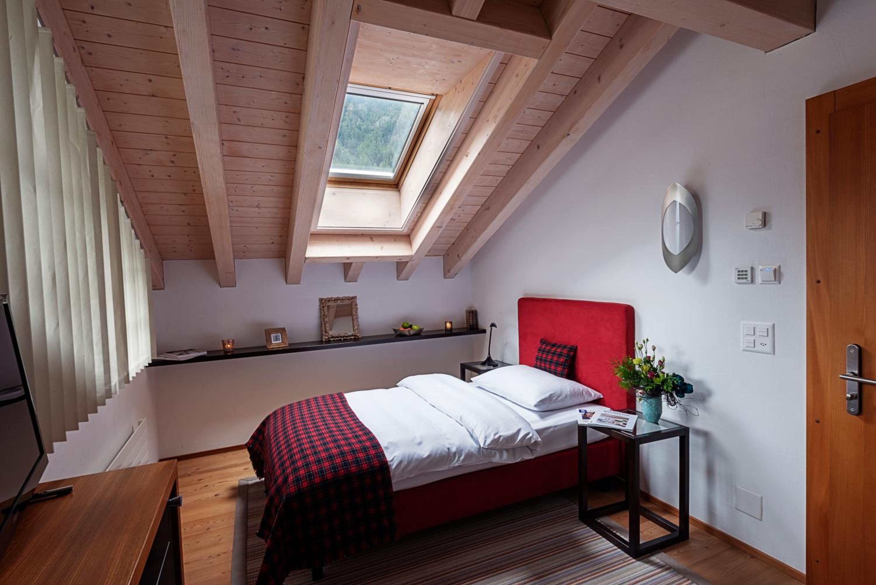 Newly renovated, modern room. Excellent location, short walk to ski lift, ski rental and train station. In house restaurants, breakfast buffet included. Very attentive staff. Extensive spa services, lap swimming pool and saunas.