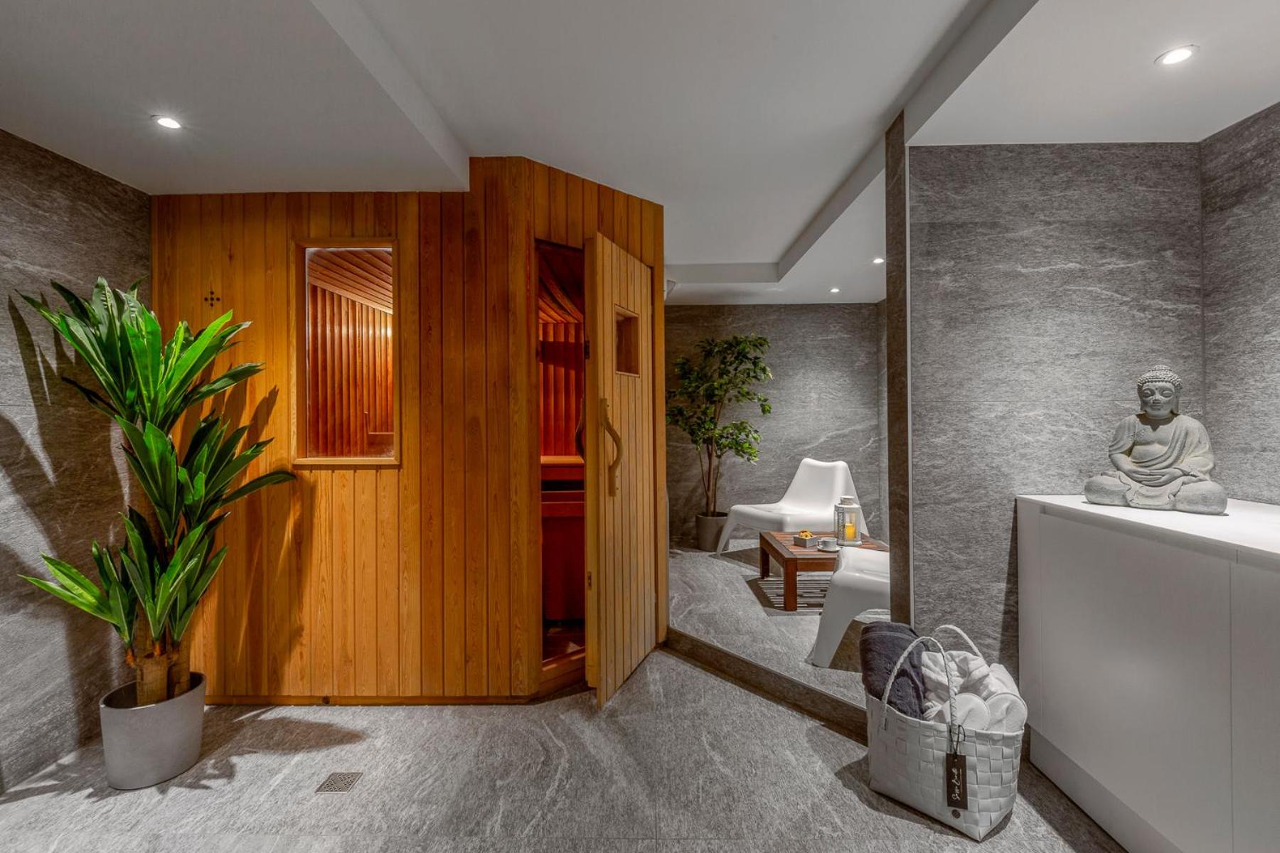 Indulgent Amenities: Enjoy modern comforts with flat-screen TVs, well-equipped kitchens, and private bathrooms with premium toiletries. Guests can also unwind in the indoor swimming pool and sauna.