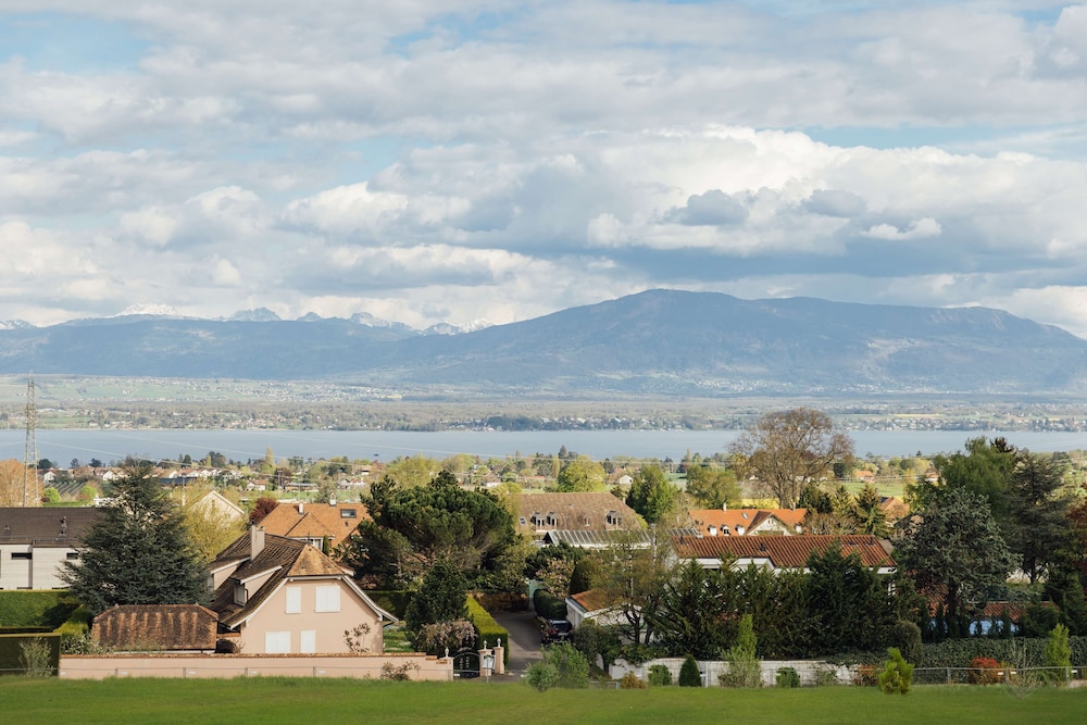 Nice hotel, about 15 minutes away from Geneva. The hotel provides free shuttle transportation to and from the airport. Also, a free bus pass to the train station. Beautiful lake views.