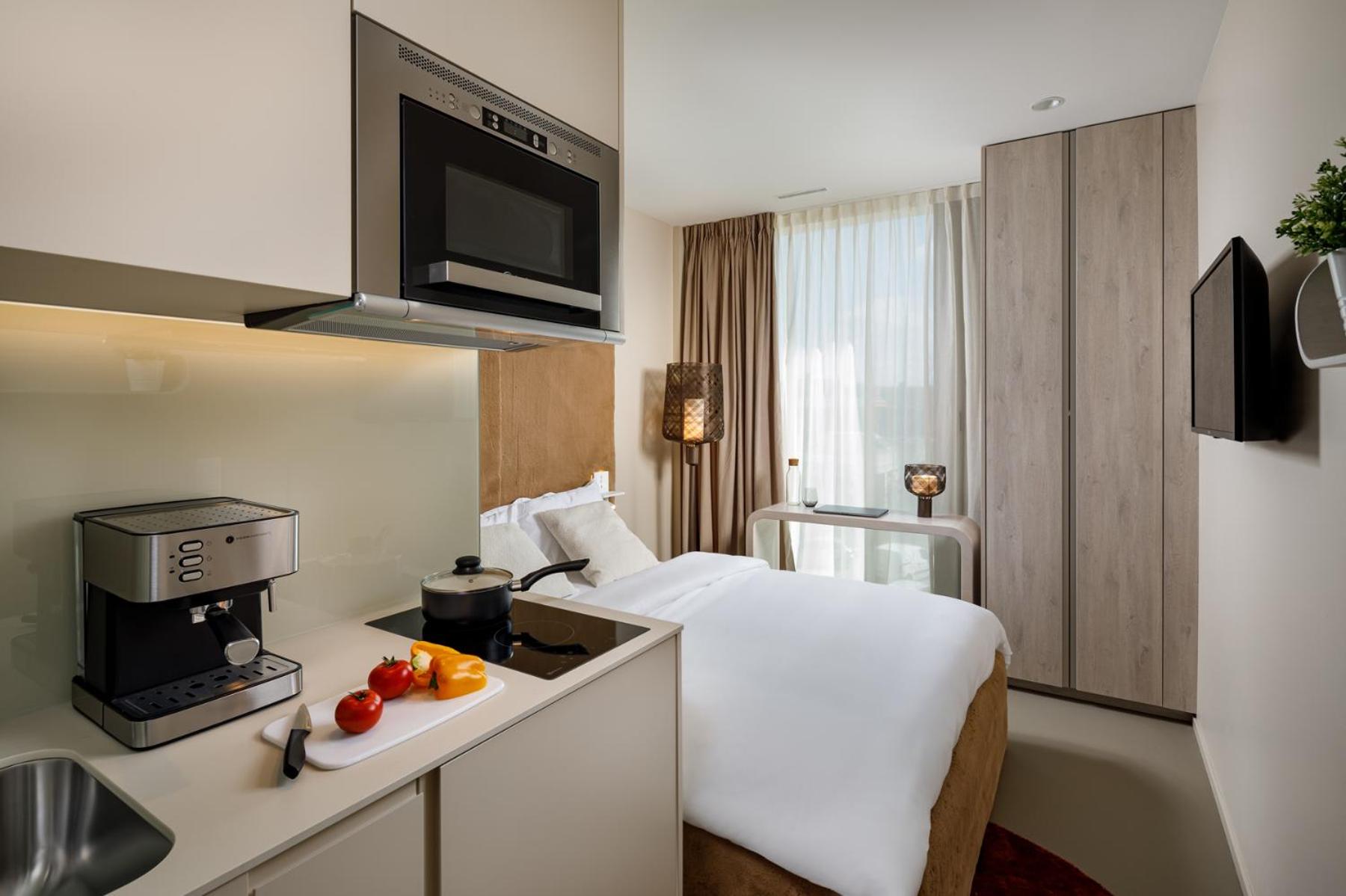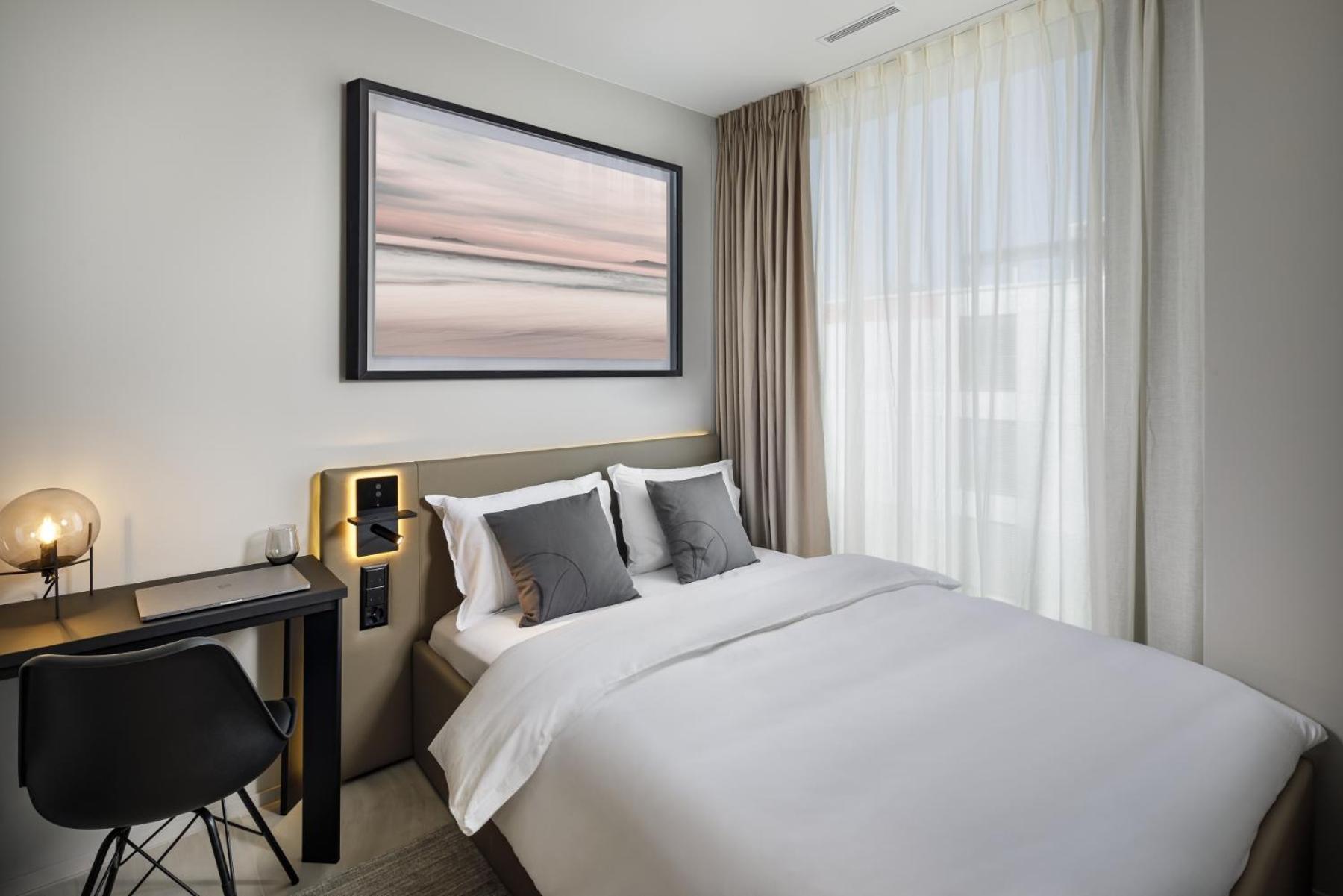 2 night stay at vision was smooth completely contactless check-in and check-out. All the facilities are available as described 10/10. From Zurich HB its 10 minutes Train journey (7.50 CHF regular ticket) and 6 minutes to Zurich Airport in Tram (4.70 CHF) many supermarkets around the area. Apartment has one double sofa, table and four chair ,fridge, dishwasher ,oven, plates, coffee machine ,double bed in both bedrooms and wardrobes in both bedrooms and auto blindfold. Overall highly recommended