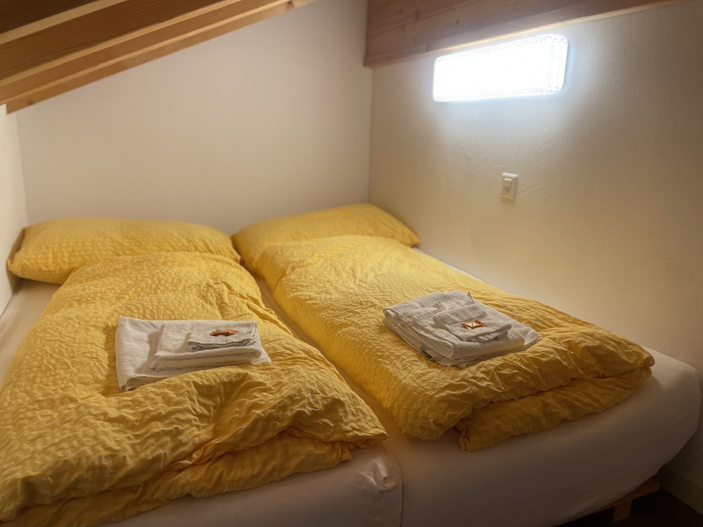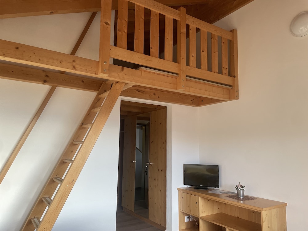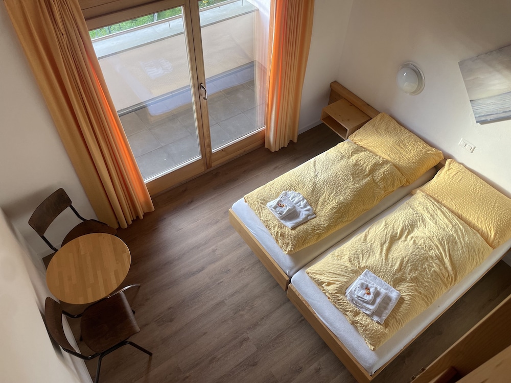 Ind checkning foregik uden at vi blev spurgt om, hvem vi var. Værelset var fint og havde udsigt ud over dalen og bjergene. Maden derimod bør i den grad forbedres. Vi fik schnitzel med pommes og schnitzlen var friturestegt og helt tør. Pommes var delvis sprøde og bløde. Vi fik kun en lille bitte ketchup hver og eneste "garniture" var en kvart citron.... Prisen 27,50 chf. Desværre lavet med stolthed for madlavning.