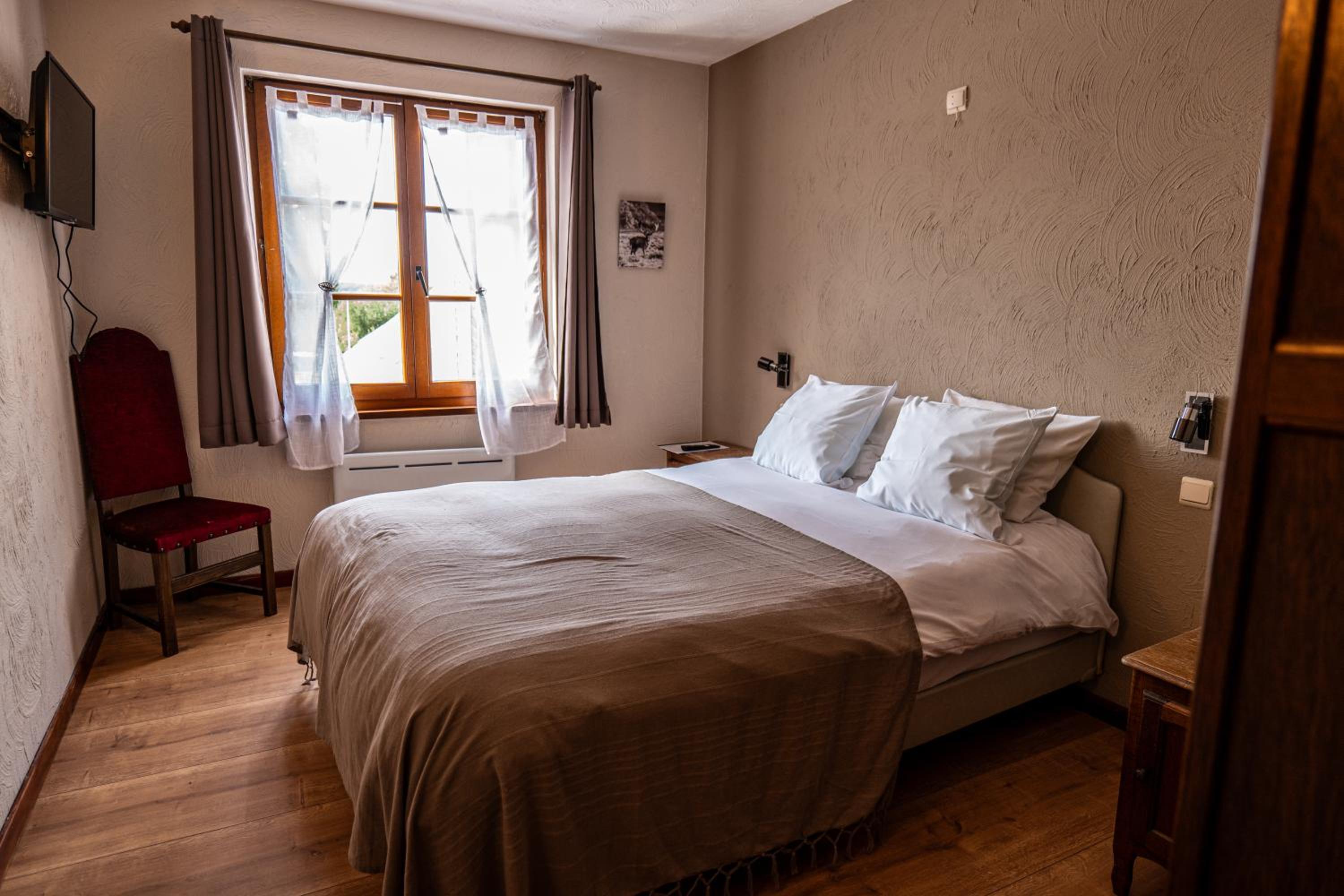 le lit trop petit, une couette trop lourde, pas de chaines câblées donc pas de tele , la cloche de l'église qui sonne chaque heure. Nous avons décidé de quitter après une nuit mais avons payé pour 2 nuits, il serait appréciable de nous rembourser une nuit