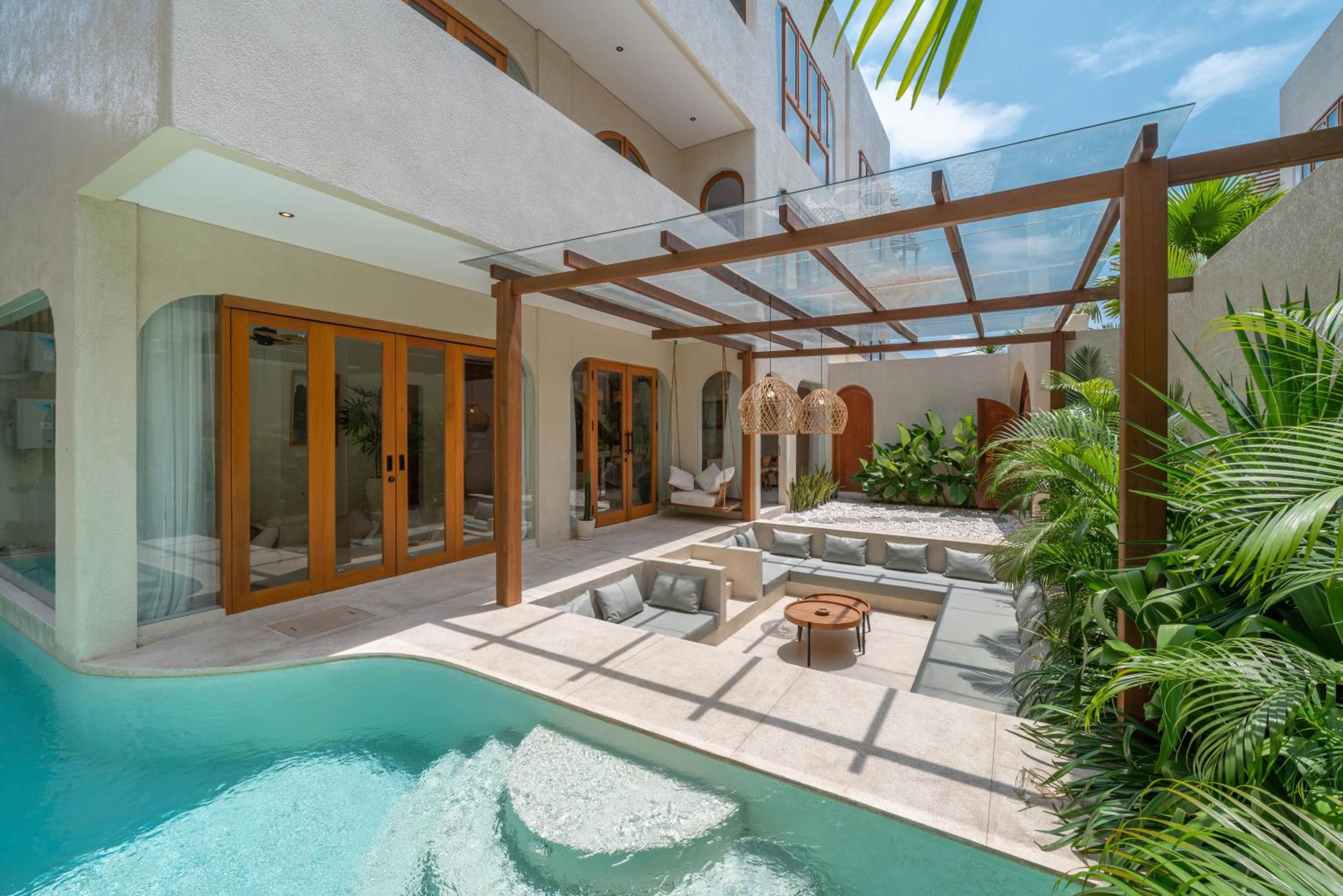 Experience 5-star luxury at Alegria de la Vida in Canggu, just steps away from Batu Belig Beach. Indulge in air-conditioned rooms equipped with modern amenities like a coffee machine, flat-screen TV, and a private terrace overlooking the pool.