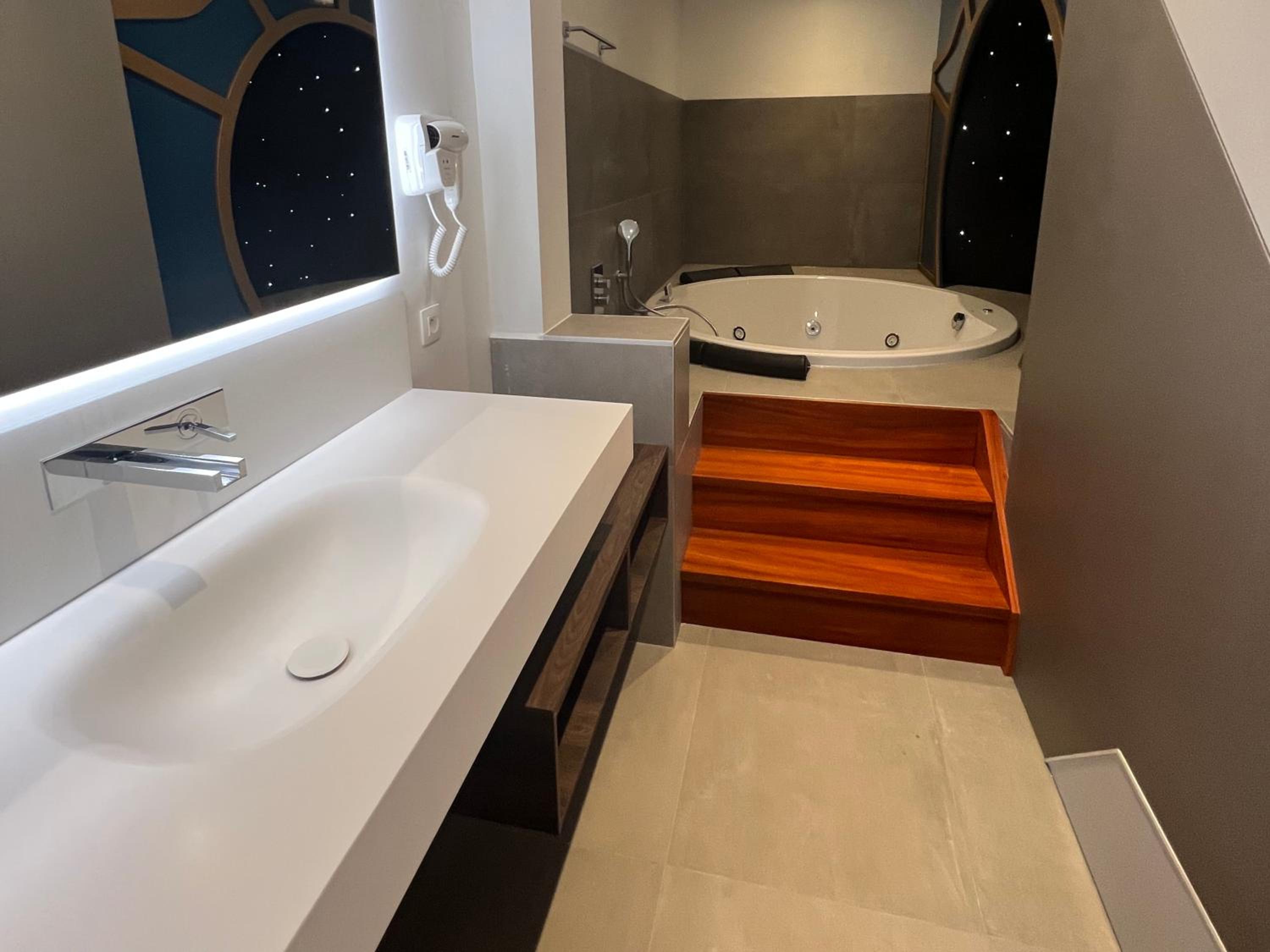 La décoration est très soignée, le spa dans la chambre très agréable