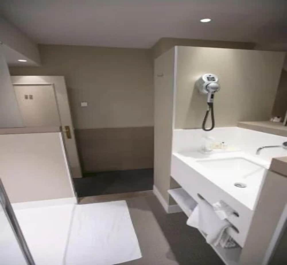 The bathroom while clean had a shower head that spouted water from every joint in the connection between pipe and shower and also from a crack in the plastic shower head itself but it did allow some of it to fall from the area designed to direct water.
