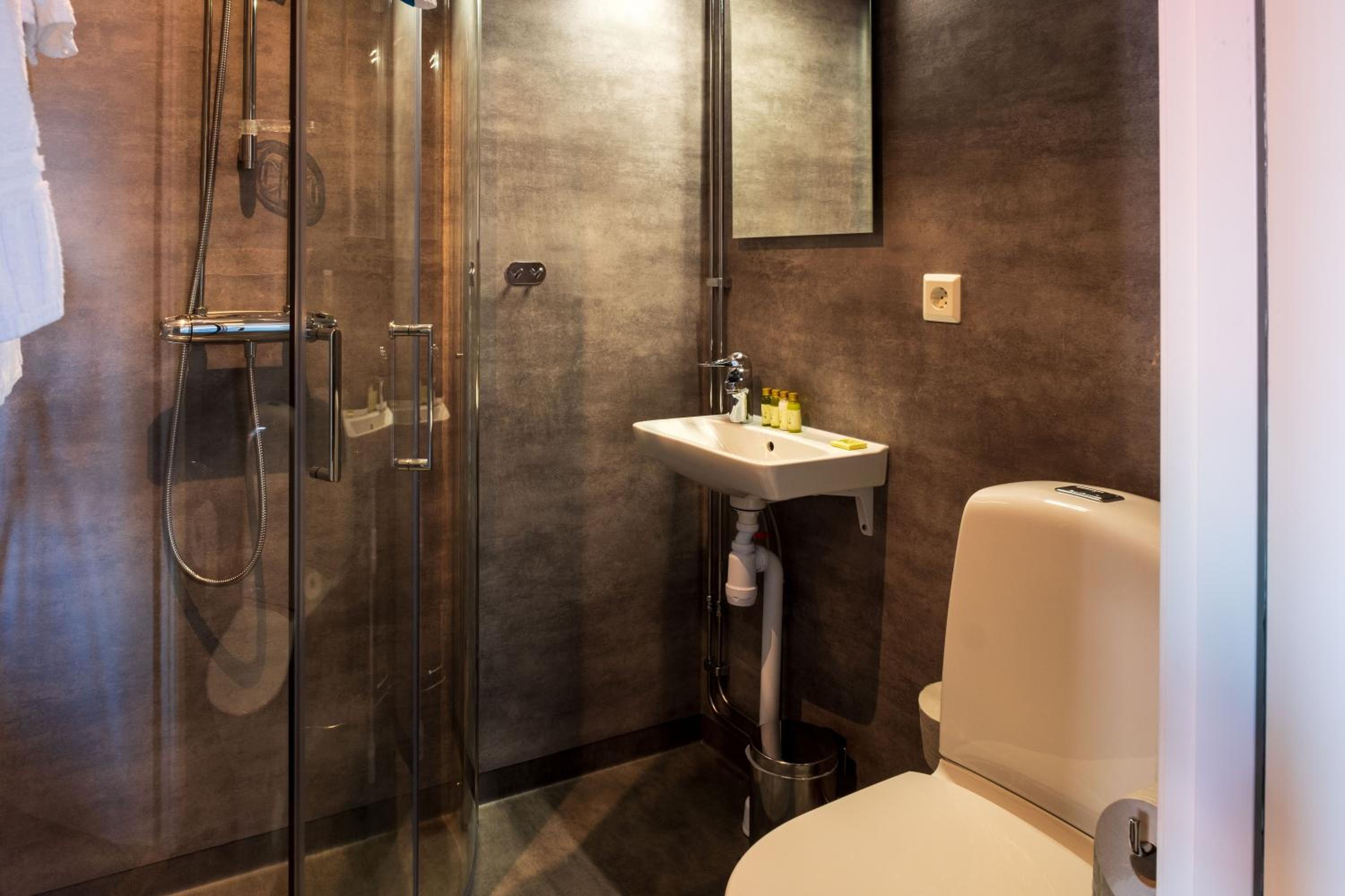 Vi hade rum med dusch och toalett på rummet. Rummet och toaletten var rent och fräscht. Rummen är enkla men helt okej för ett par nätter. Frukosten var väldigt basic, inget extra, inga varma alternativ.