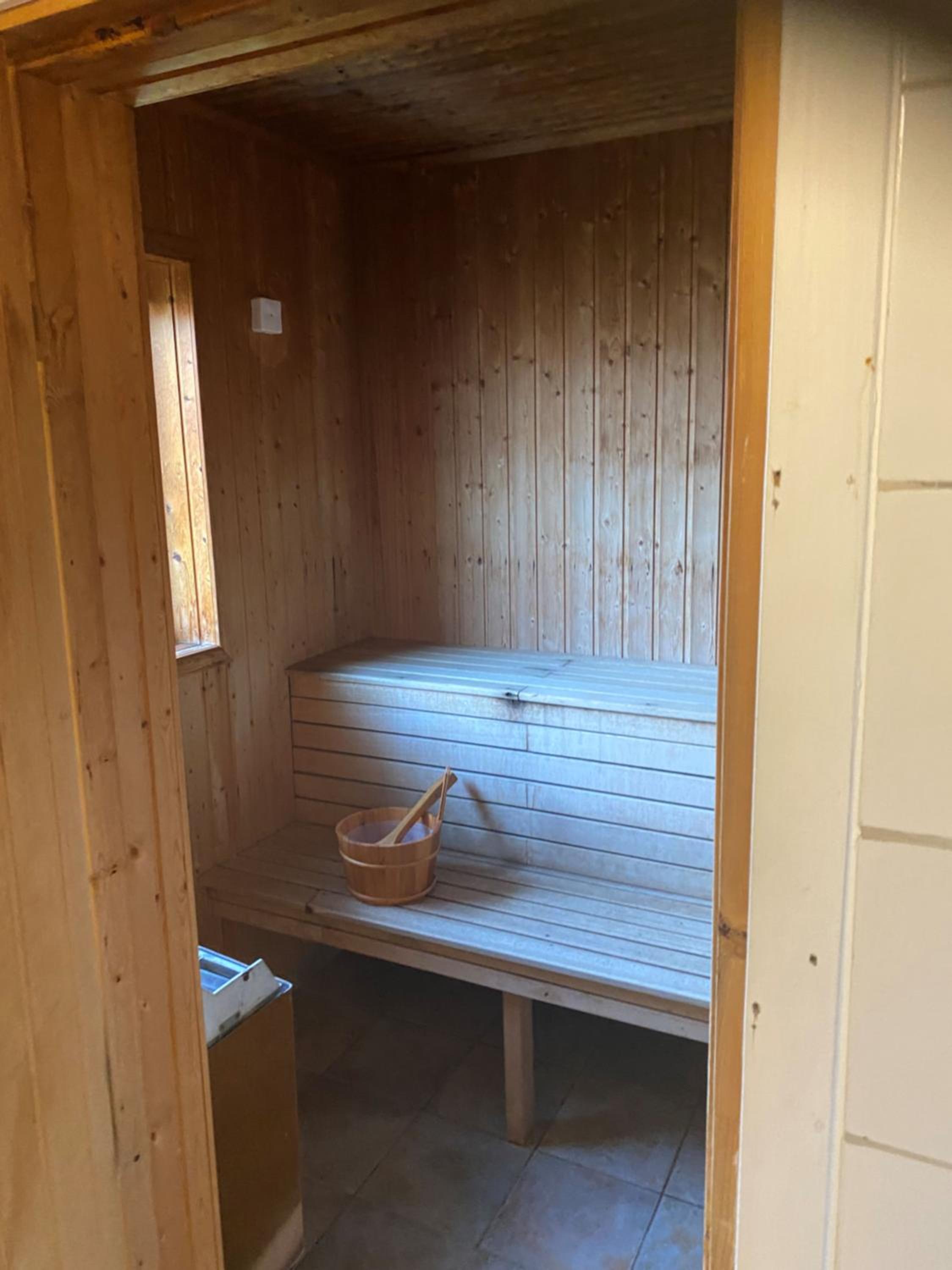 Bastu med snabb uppvärmning och fint poolområde precis utanför vår balkongdörr.