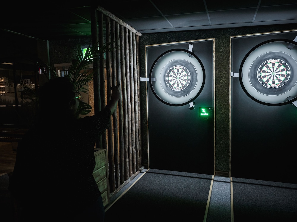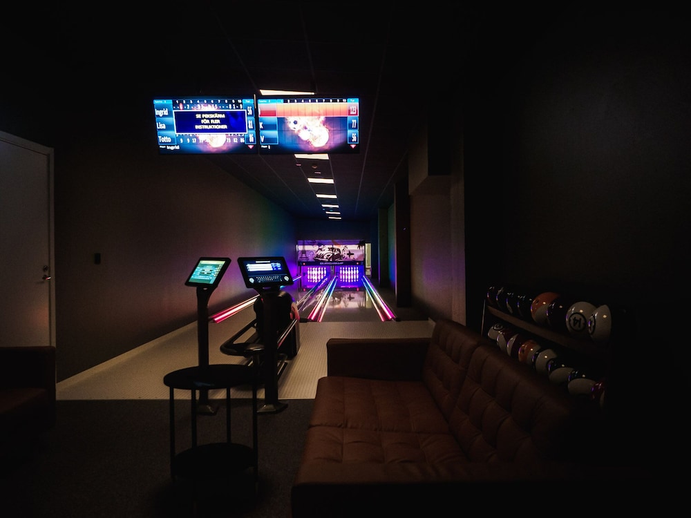 Food at the restaurant is excellent!!! We ate there almost every night. The restaurant also offers darts, and two bowling lanes. There is also an indoor fire pit.