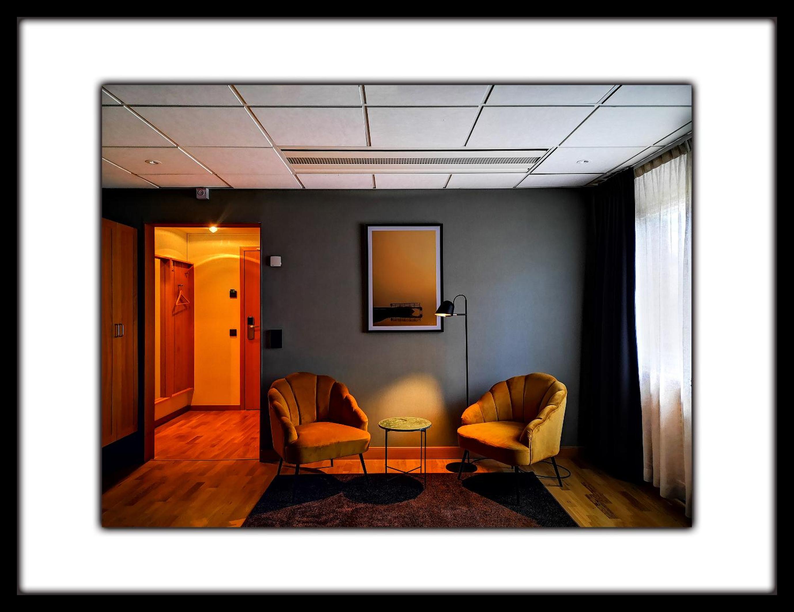 Rent och snyggt inrett rum, fint badrum, skön säng, sköna täcken, kuddar och lakan. Personalen i receptionen framstår som osäker och orutinerad; incheckningen blev famlande och vi kände oss inte välkomnade (men de var inte otrevliga). Kändes som prao-elever och inte en hotellreception. Jättebra att kunna låna uteleksaker, träningsredskap etc. Fin utomhusmiljö.