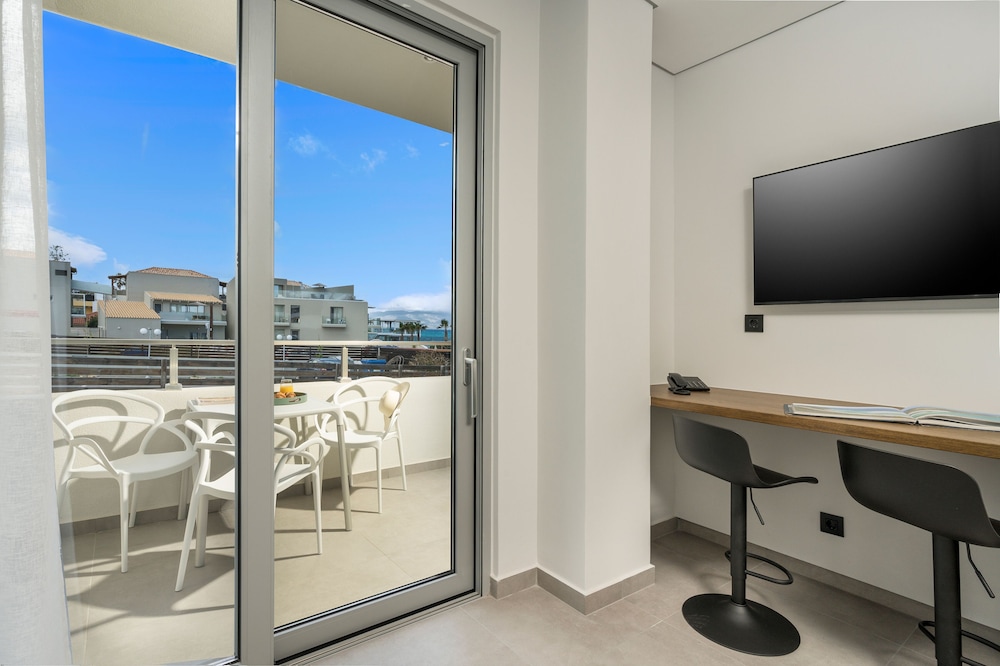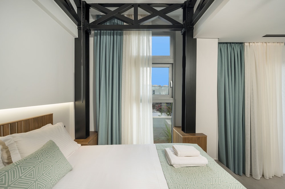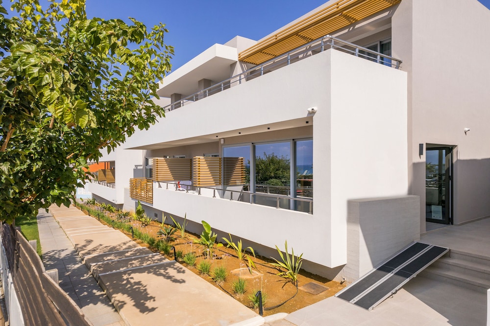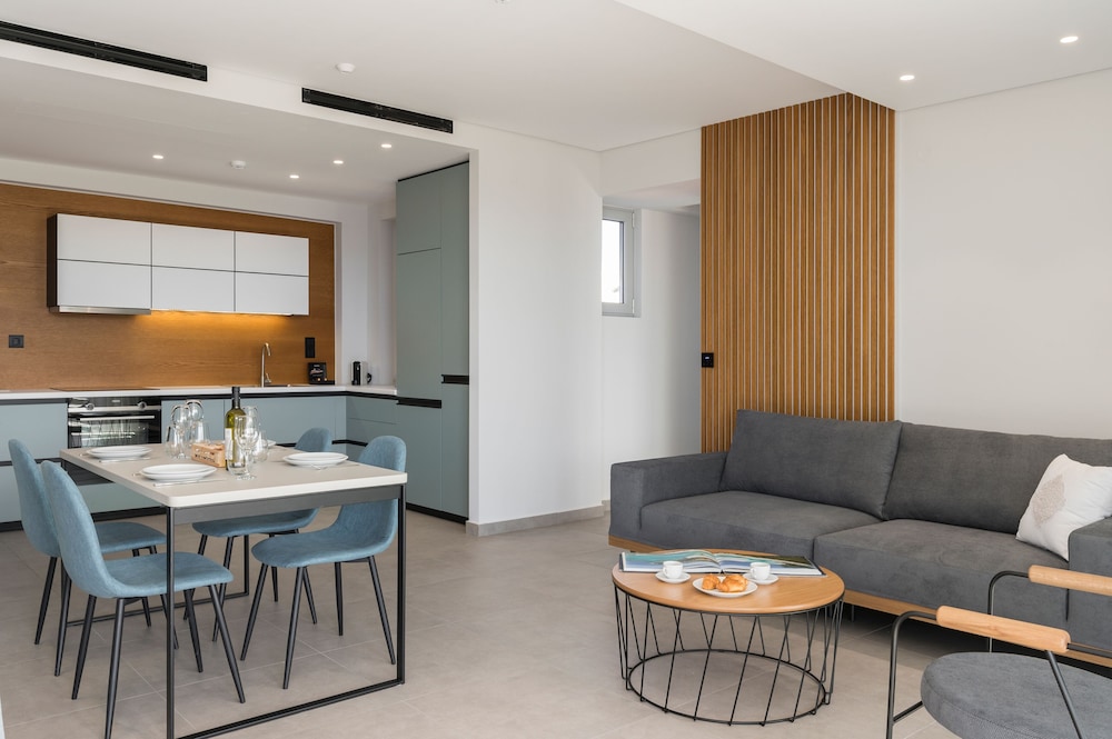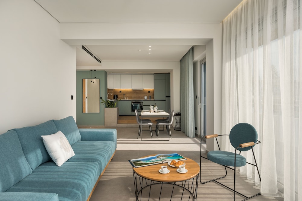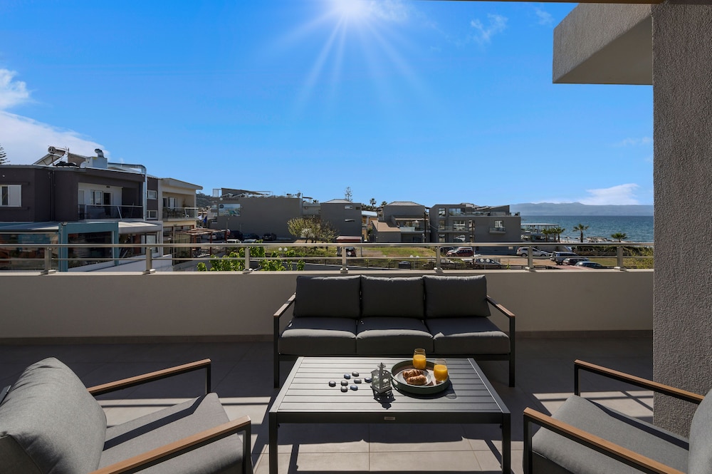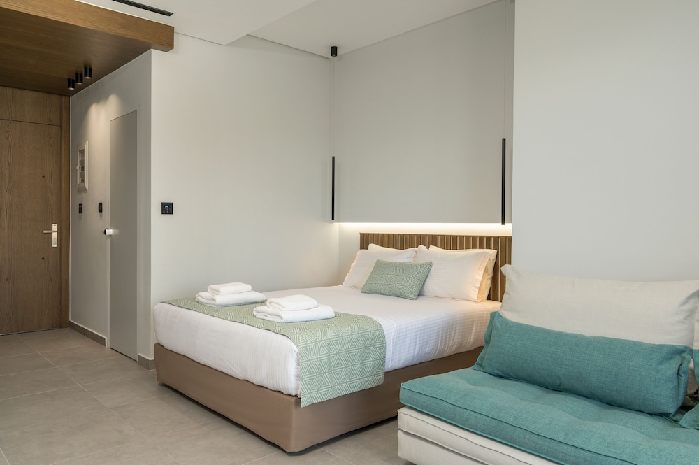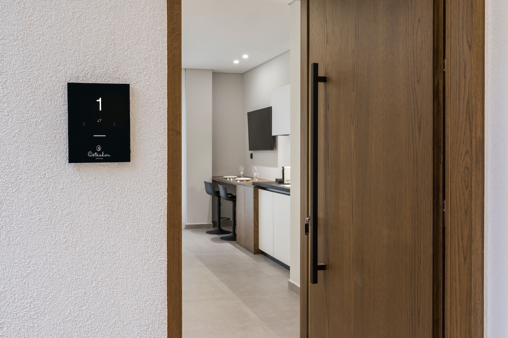 We had a wonderful week at the Ostrakon Suites! Everything was PERFECT! The rooms have a very modern and sophisticated interior, an absolute wow factor when you walk in. You have everything you need in the room (even a pretty beach bag!) and the cleanliness was excellent. The location of the hotel couldn't be better, absolutely perfect. It is right on the beach, so you can even hear the waves from your room. The beach area was the best on Agia Marina Beach. All the good beach clubs and restaurants are within walking distance. The bus stop for the bus that goes to Chania is right in front of the hotel.