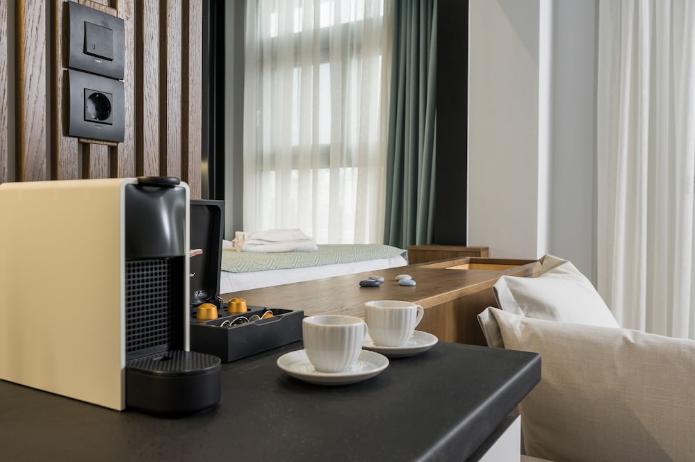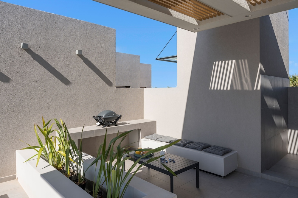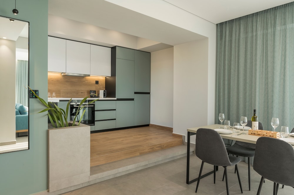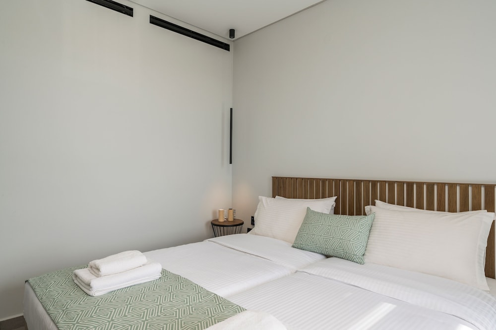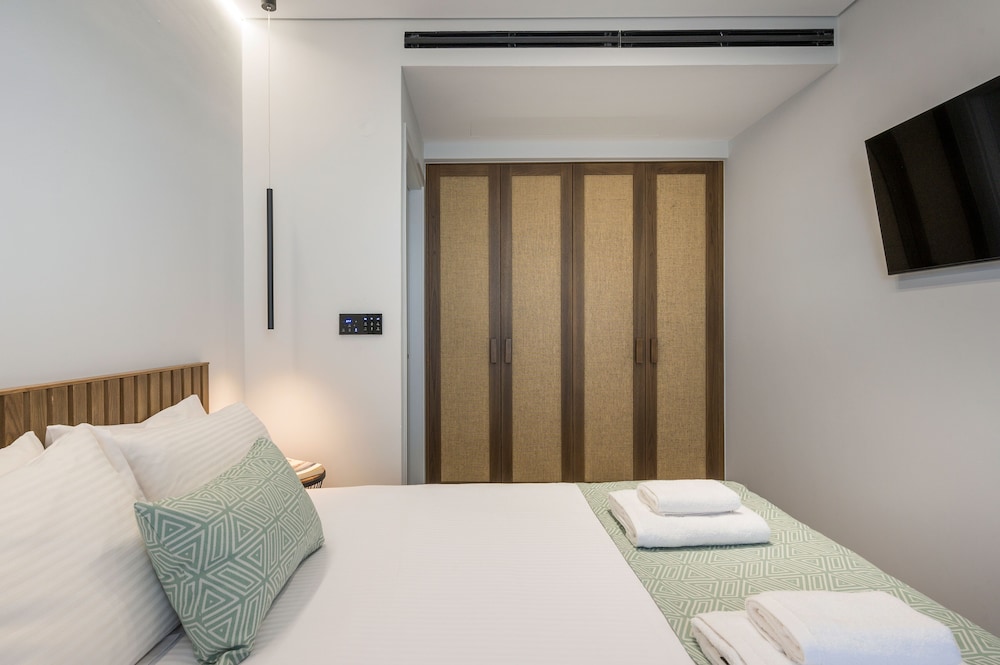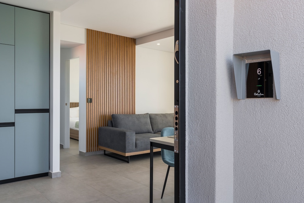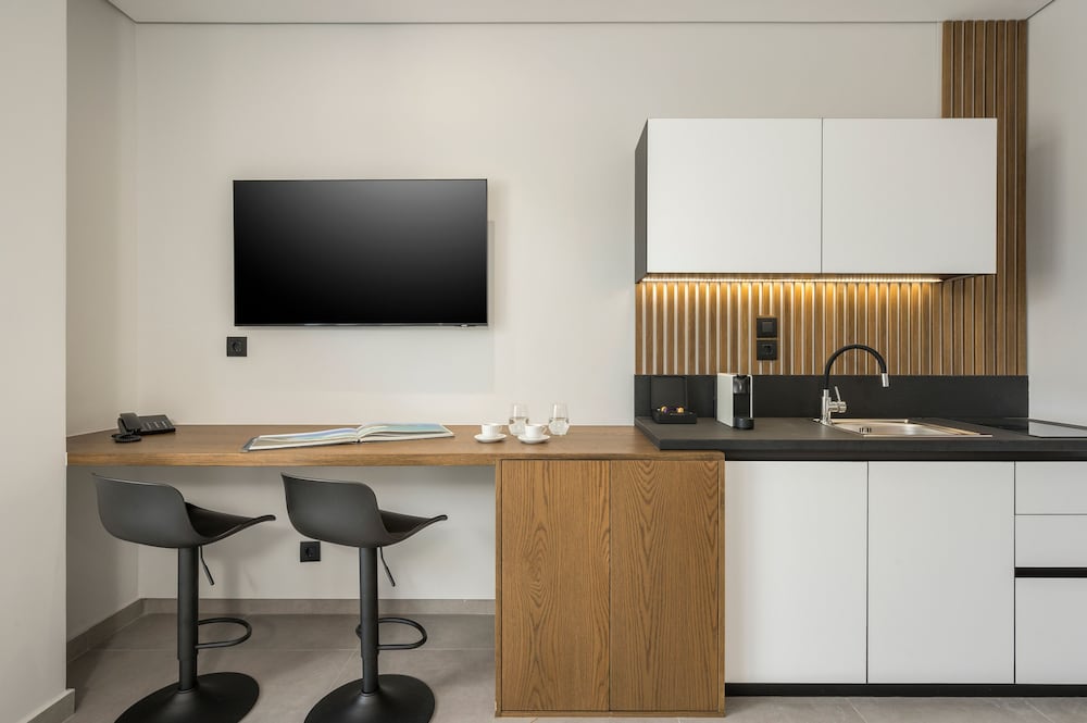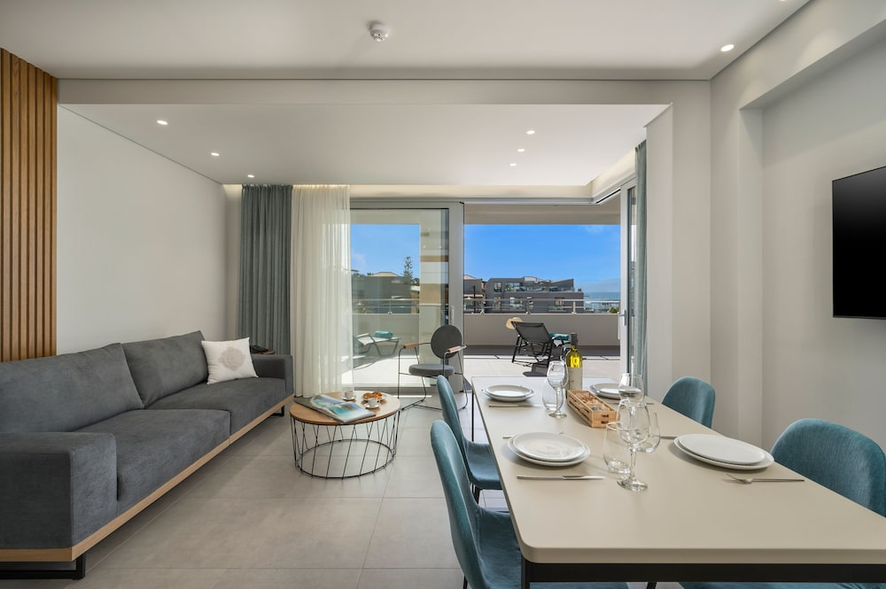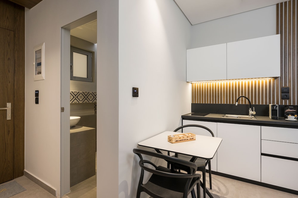 We had a wonderful week at the Ostrakon Suites! Everything was PERFECT! The rooms have a very modern and sophisticated interior, an absolute wow factor when you walk in. You have everything you need in the room (even a pretty beach bag!) and the cleanliness was excellent. The location of the hotel couldn't be better, absolutely perfect. It is right on the beach, so you can even hear the waves from your room. The beach area was the best on Agia Marina Beach. All the good beach clubs and restaurants are within walking distance. The bus stop for the bus that goes to Chania is right in front of the hotel.