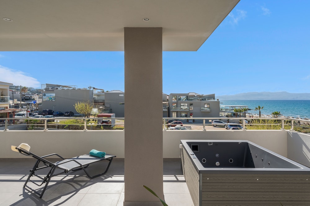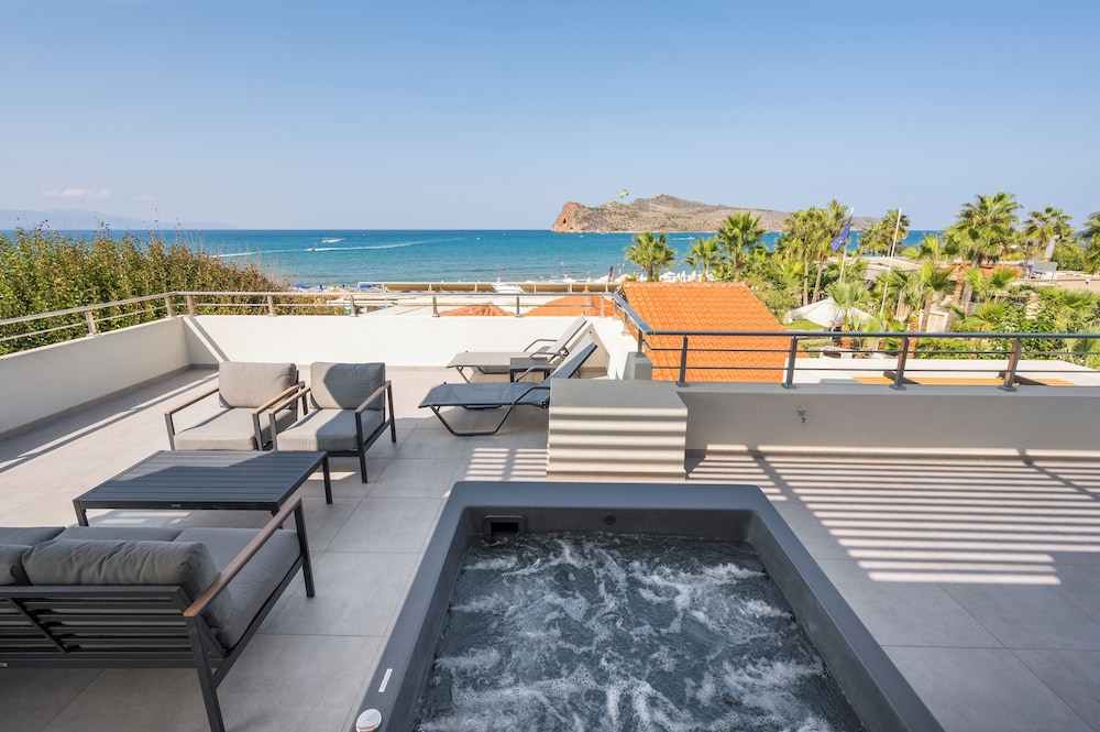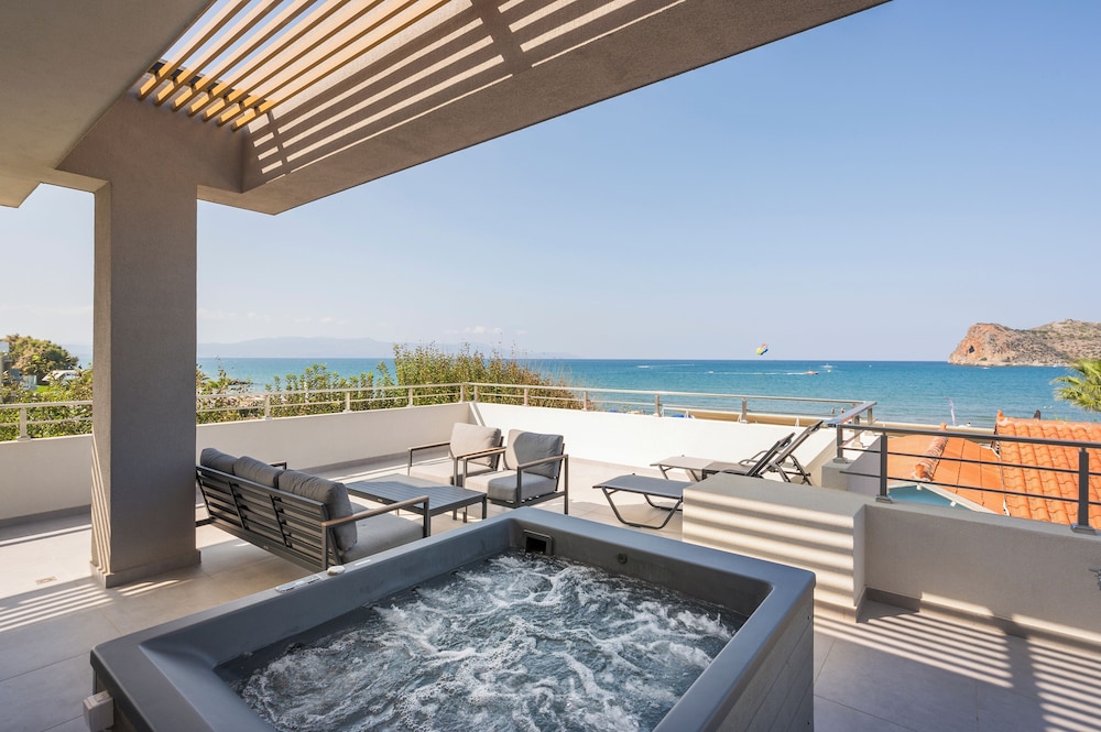Établissement exceptionnel qui propose des prestations haut de gamme autant dans la qualité des appartements que des services. Accueil très attentionné dès l’arrivée et tout le long du séjour avec Maria constamment aux petits soins à l’hôtel et Olga à la plage. Appartement haut de gamme juste incroyable grand, moderne, tout équipé, avec une terrasse vue mer sublime, jacuzzi privé, douche extérieure, transats et salon de jardin. Grande et large plage avec transats et serviettes à disposition inclus. Petit déjeuner complet servi au restaurant de l’hôtel.