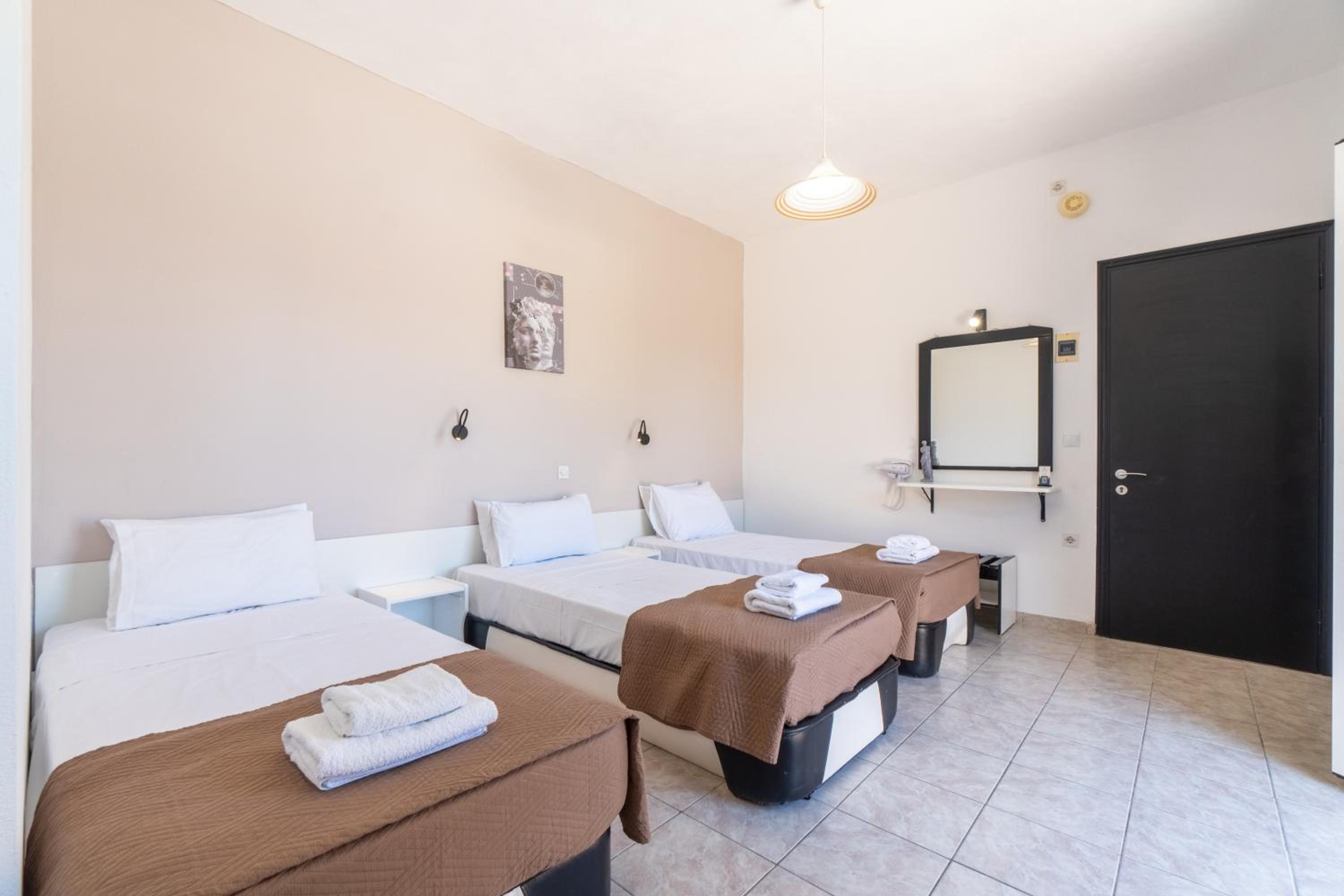 Spacious room and bathroom, good mattresses, close to the sea front. It has a restaurant with good but overpriced food.