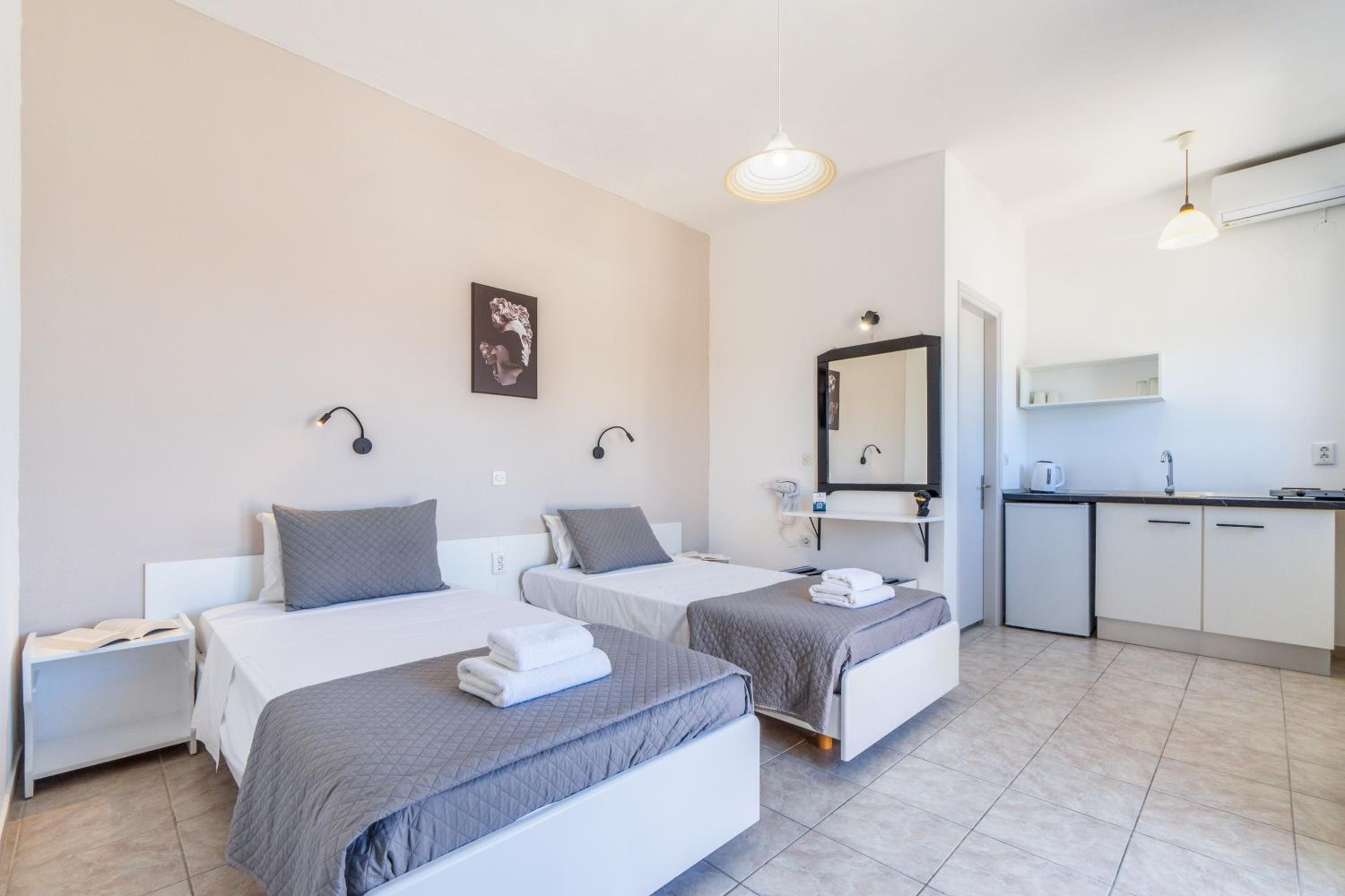 Wir waren 2 Tage im Hauptgebäude mit Balkon, ruhig und Strandnah. Pool war sehr schön. Georgios war superfreundlich und aufmerksam.