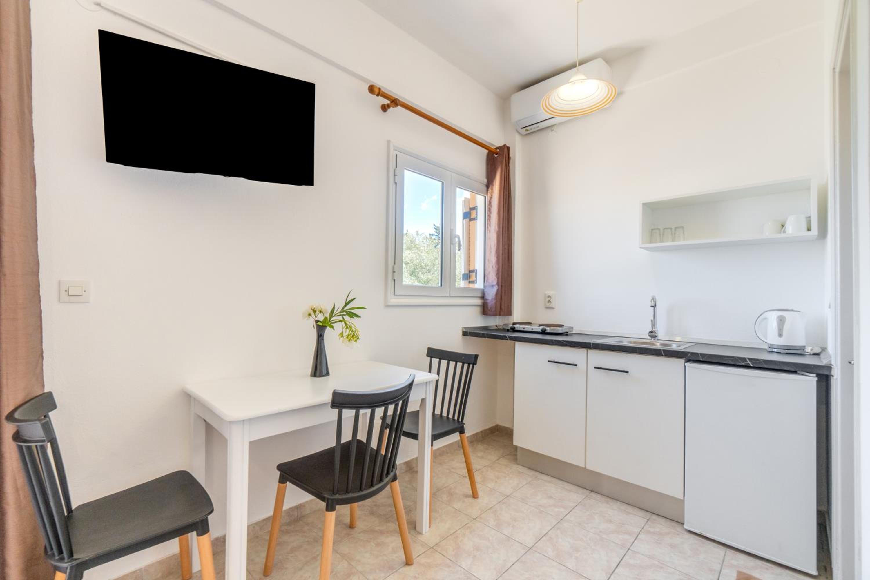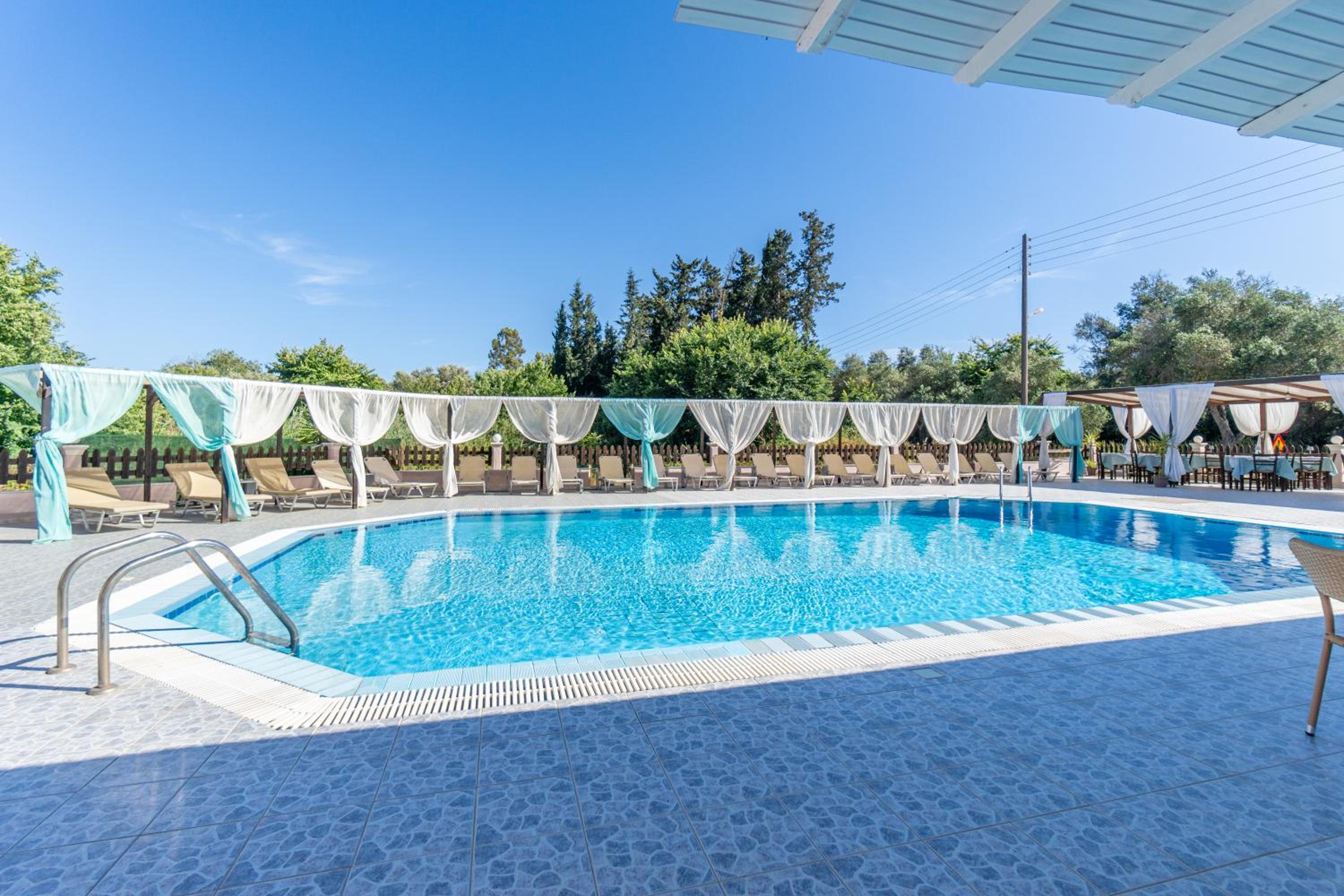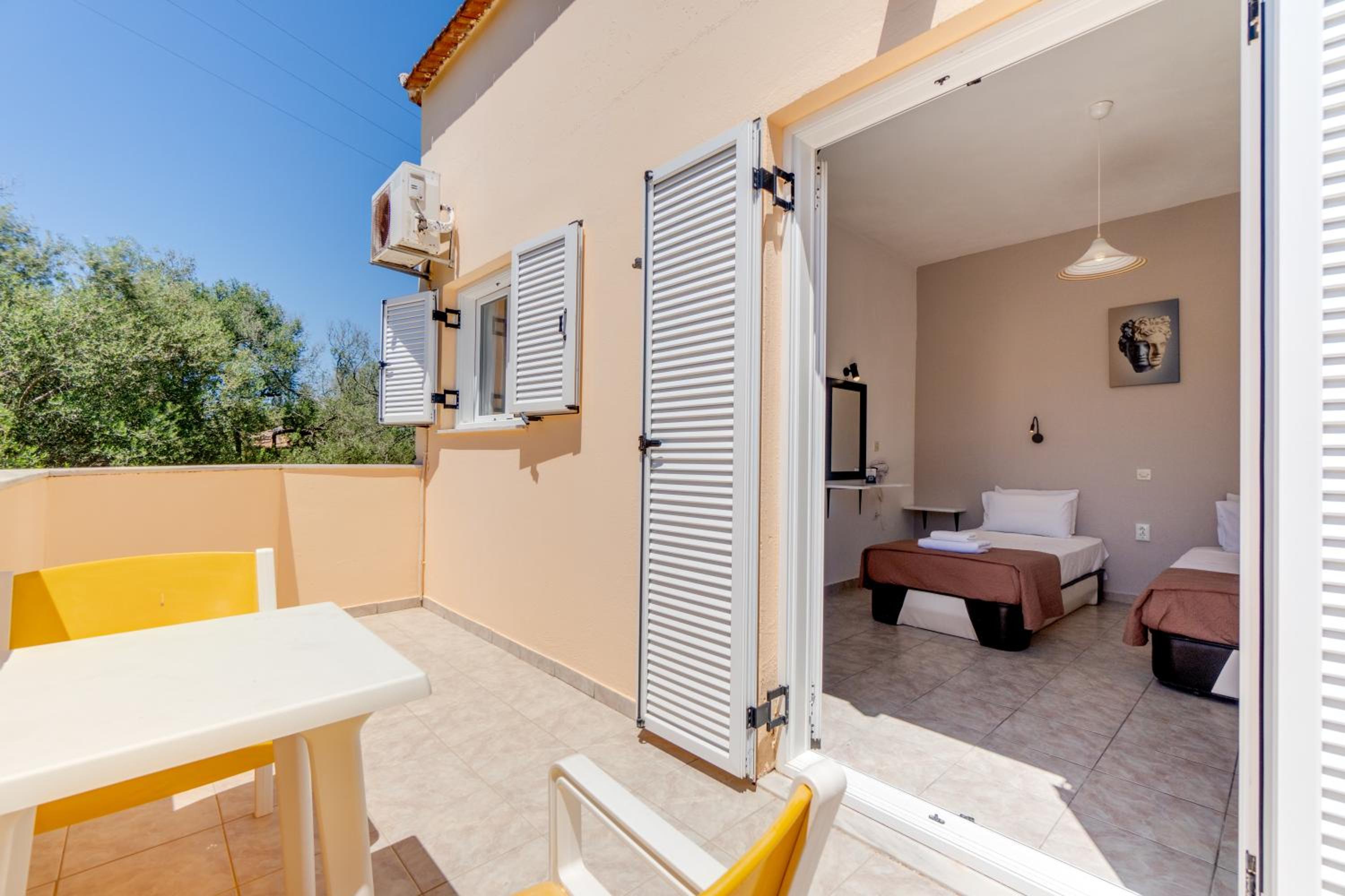 Kamers zijn gedateerd, gebouw is gehorig, er verblijven veel jongeren die in Kavos gaan stappen en in de nacht erg gehorig zijn. De toegang tot de zee is een erg wankel bruggetje en de zee is hier erg modderig (in tegenstelling tot de andere kant van het eiland waar het water helderblauw is). Je moet 1,5 km lopen naar Kavos (erg druk en toeristisch) en de andere kant op 4,5 km naar Lefkimmi (dat is wél leuk). Internet is erg traag en valt vaak uit.