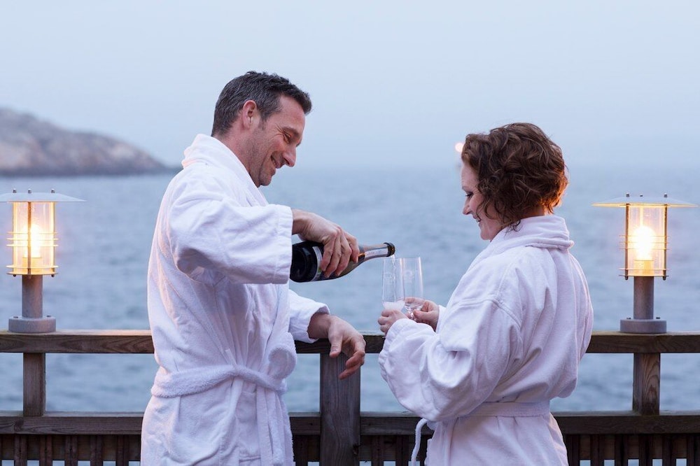 Enjoy a stay at Strandflickornas Husen vid Havet nestled near the beach, offering individually decorated guestrooms with outdoor private spa tubs and private patios for a truly relaxing experience.