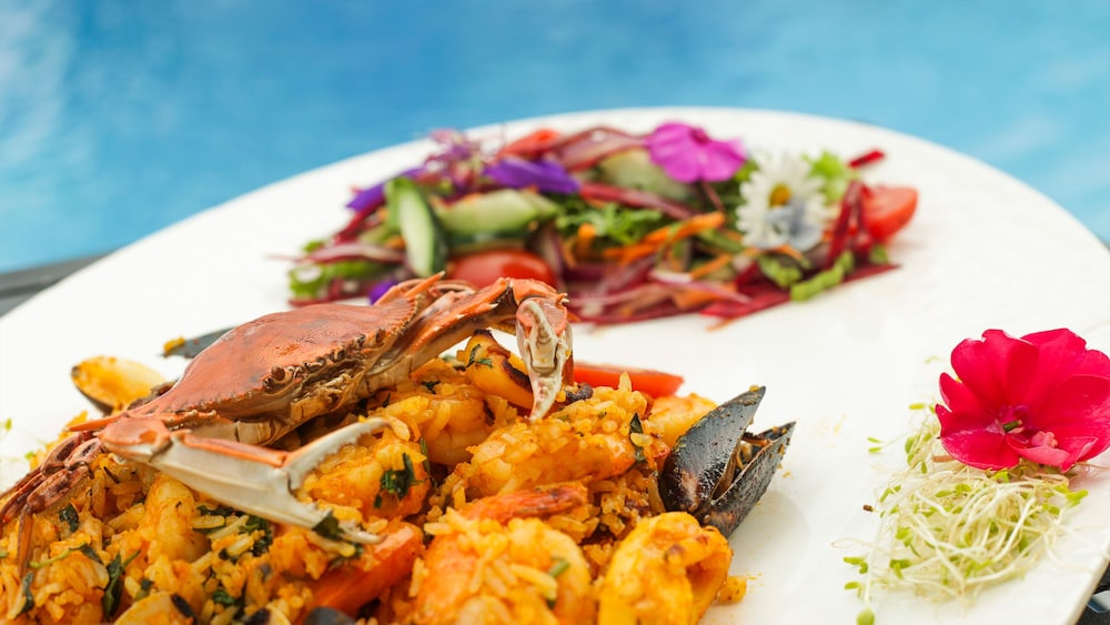 Savor a satisfying meal at the on-site restaurant and enjoy a refreshing drink at the swim-up bar by the picturesque pool.