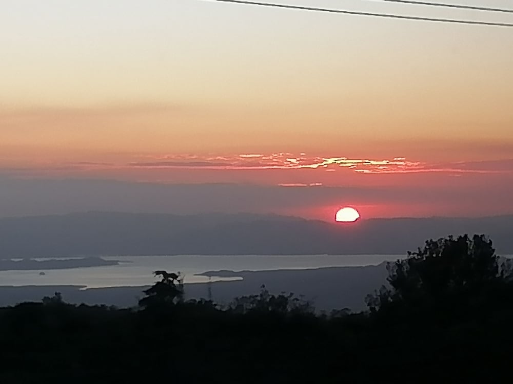 The hotel is just off one of the main roads, not far out of town center. It is not new, but it is clean, quiet and felt safe. We enjoyed two rooms with a small foyer area and a shared bathroom in the center. We also used the public space outside of our room. We sat in the hallway (pictured in the photos) and looked out at the (for us) exotic birds visiting outside. Breakfast was included, provided at the neighboring cafe, with a choice of either eggs and toast with fruit or pancakes with fruit. The cafe had a wonderful view over the valley.