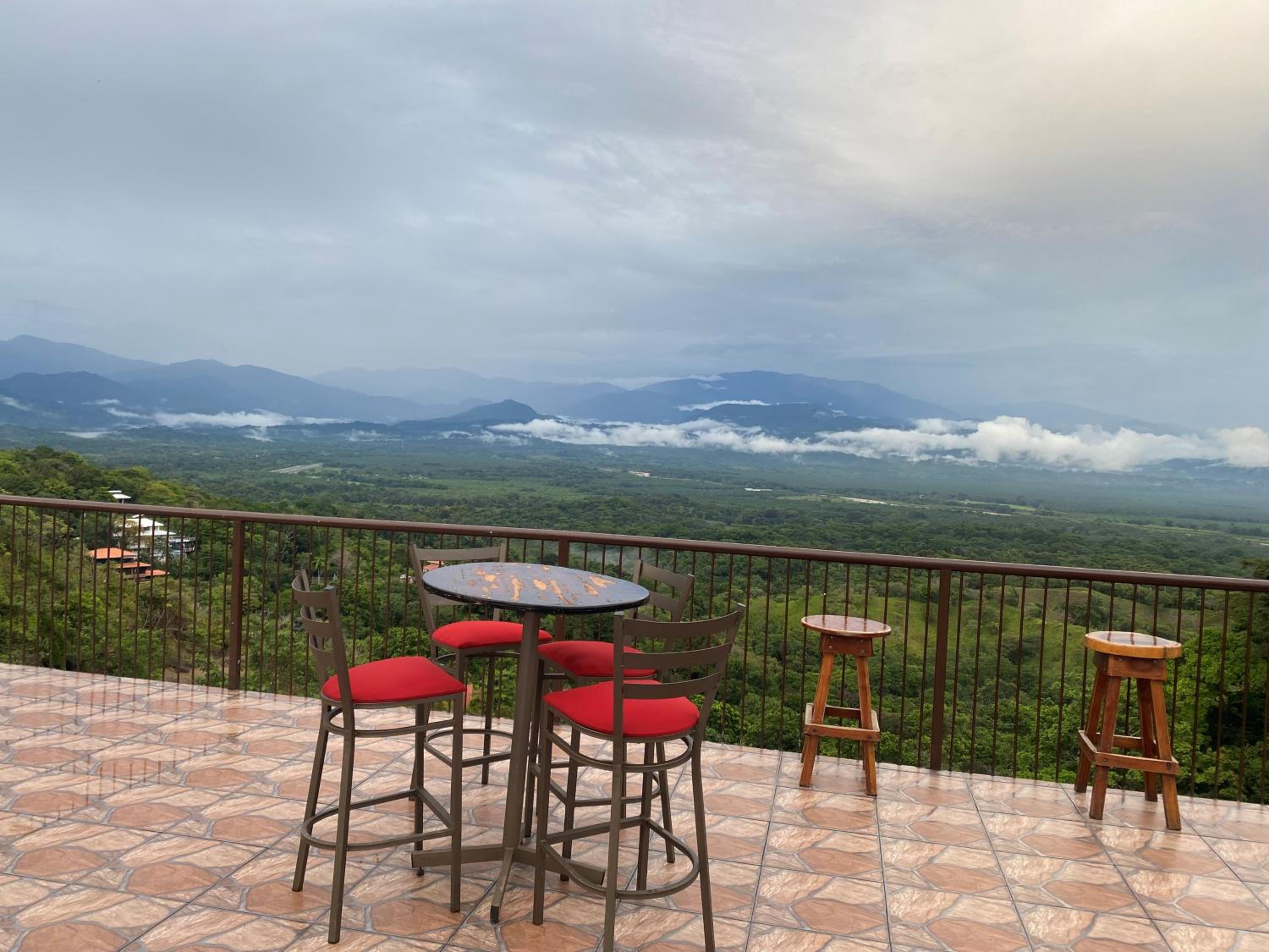 Die Aussicht vom Hotel war traumhaft, ein Rundumblick aufs Meer und in die Berge. Reichhaltiges Frühstück am Morgen währenddessen wir einige Tiere beobachten, konnten insbesondere Affen und Tukane. Wir haben im unteren Haus übernachtet, das Zimmer war sehr sauber und das Personal war sehr freundlich!