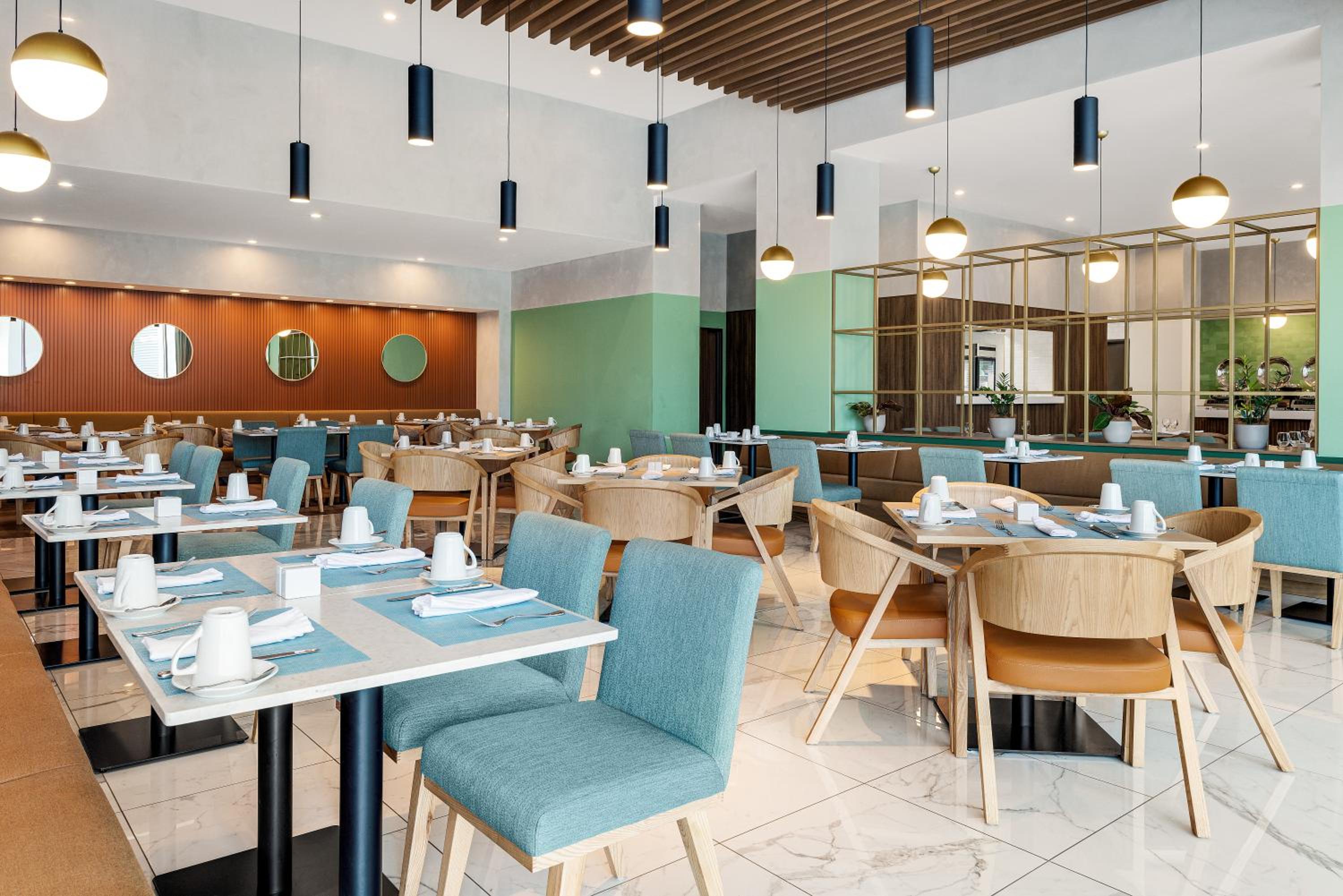 Muy cerca del aeropuerto, está en el mismo centro comercial, todo muy amplio y limpio. Desayuno rico y personal muy amable. Tiene un bus con servicio al aeropuerto cada 30min.