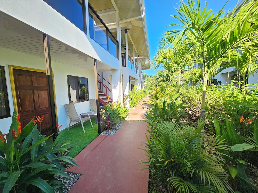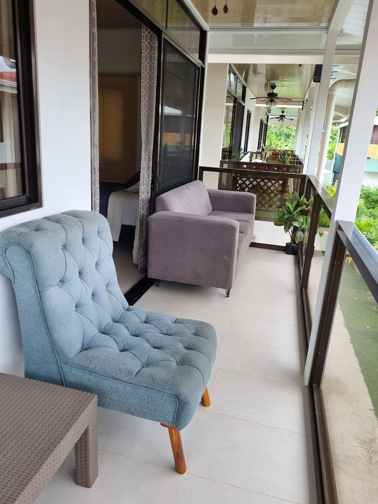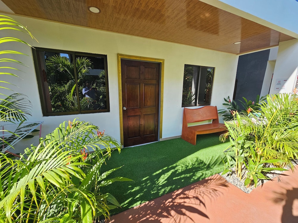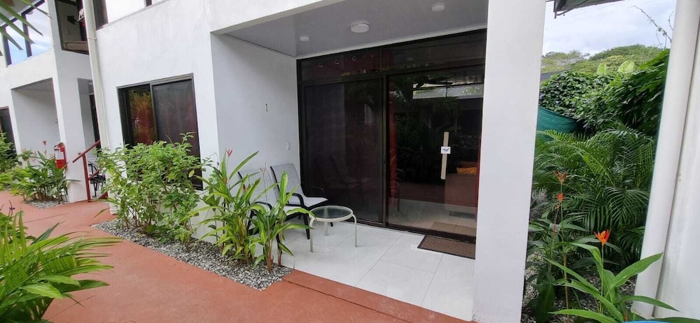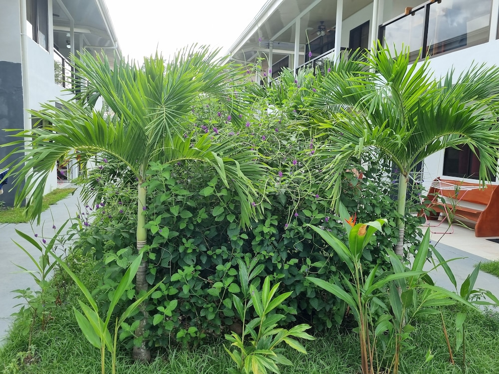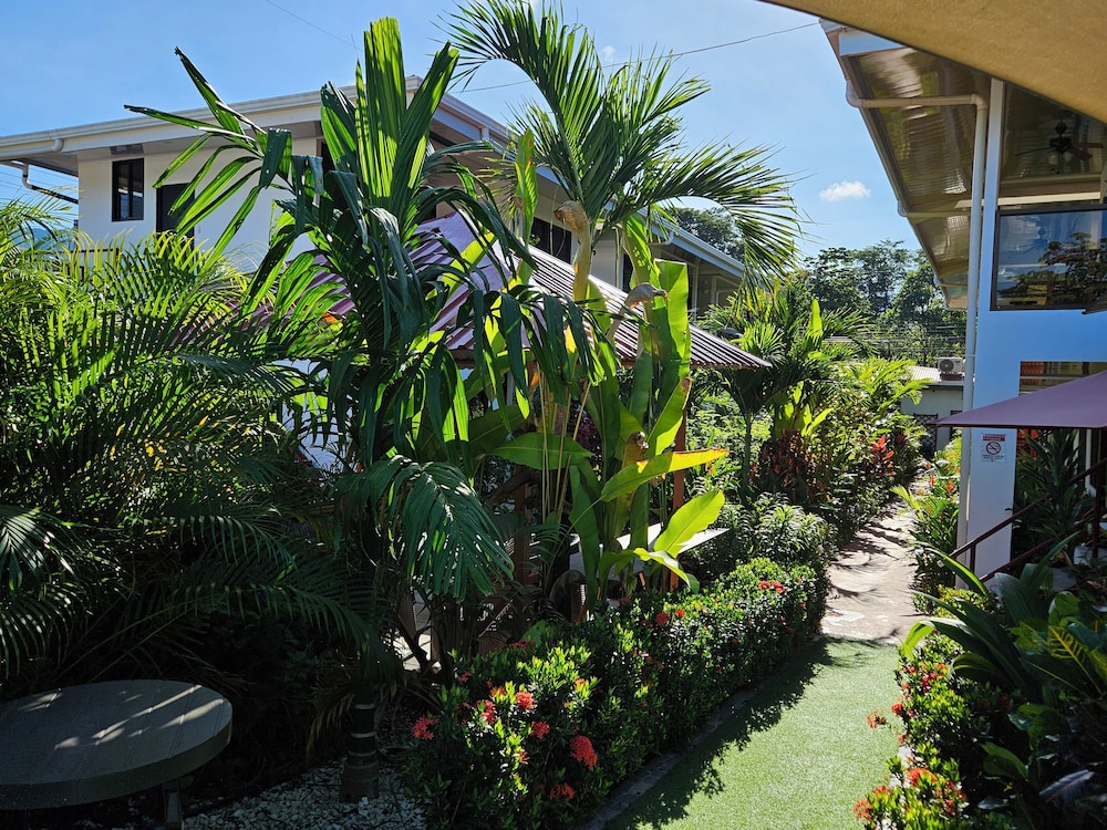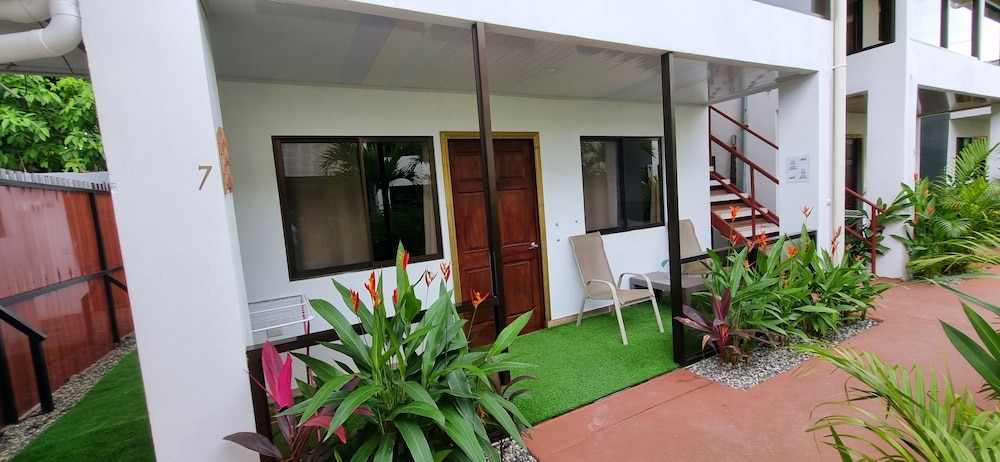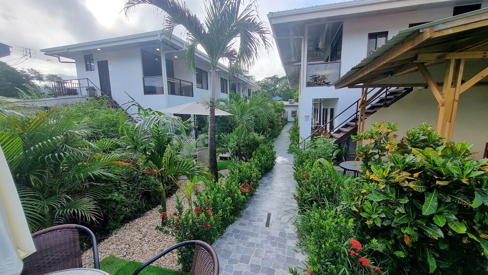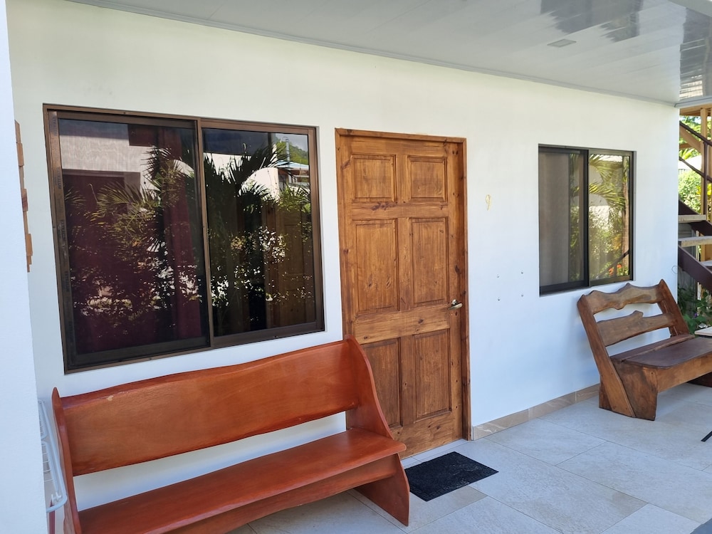 After a very long day in shuttles from Puerto Viejo, Gilberto was a very gracious, friendly and welcoming host. He quickly got us into our room and albeit "Happy Hour" was over, he set us up with a couple beverages and let us get settled. Our room had all the amenities we needed with a nice balcony and view of the tropical gardens. The breakfast was good with several options, and the pool and lounging area were the perfect addition after a day at Bahia Ballena and other excursions. The staff, Jess at the front desk, the cooking and cleaning crew were all wonderful and very friendly. There is a grocery store/deli, Steve's, right at the corner which was great to have, and a restaurant La Fogata directly across from it, with many more dining options just a few minutes walk away. We enjoyed our time in Uvita and happily recommend staying here.
