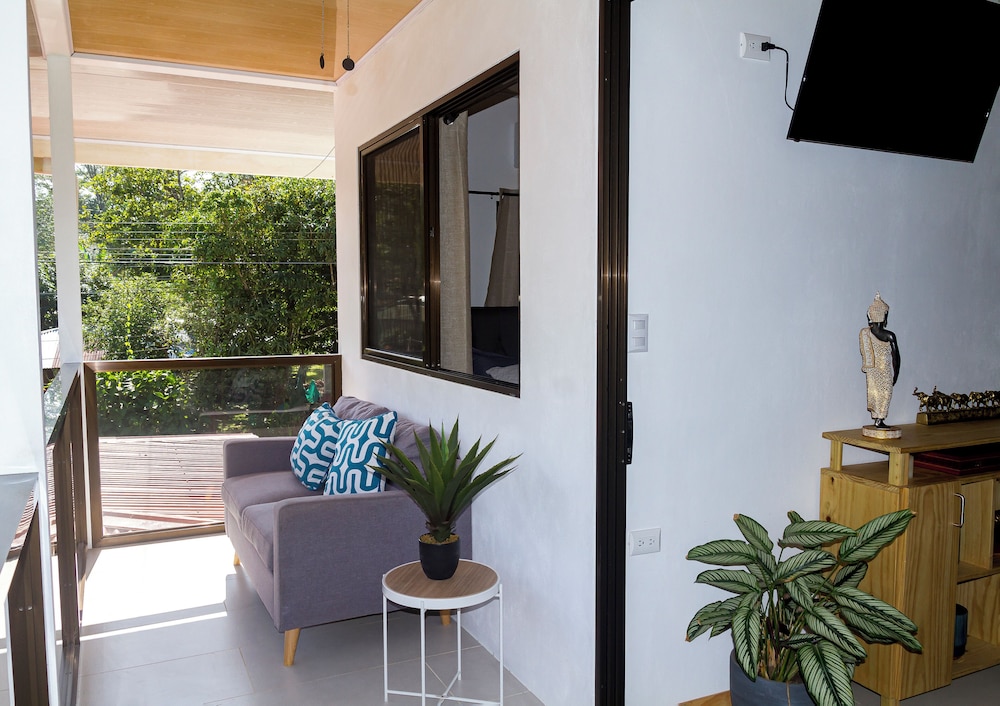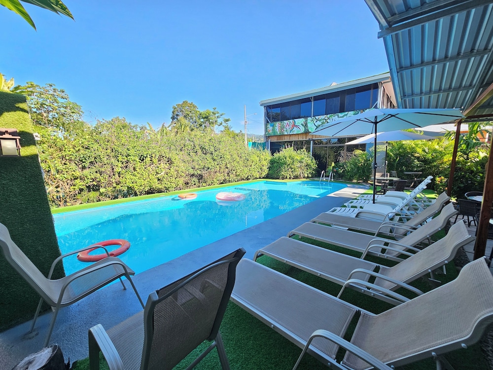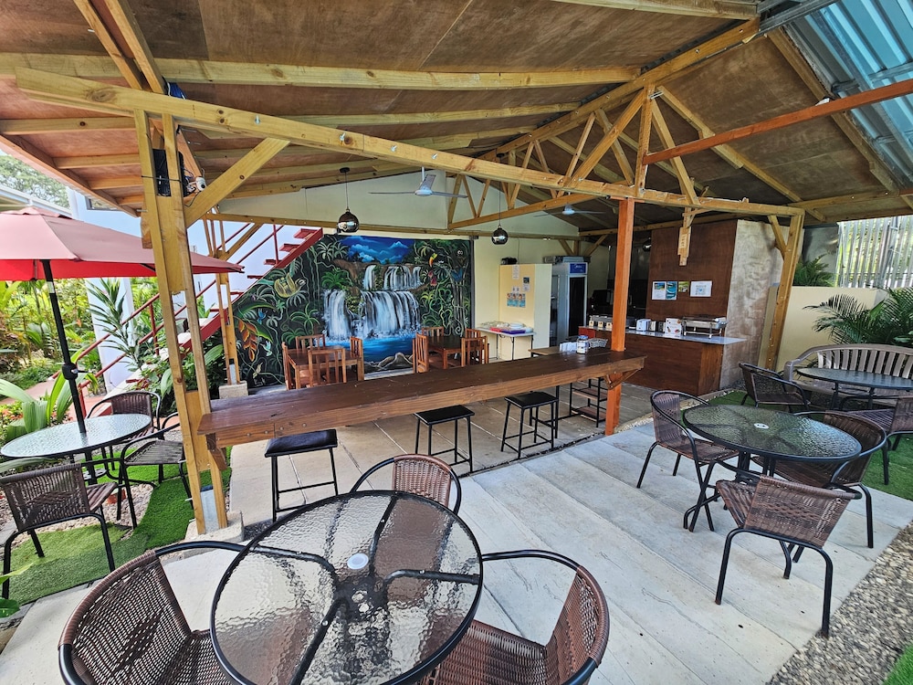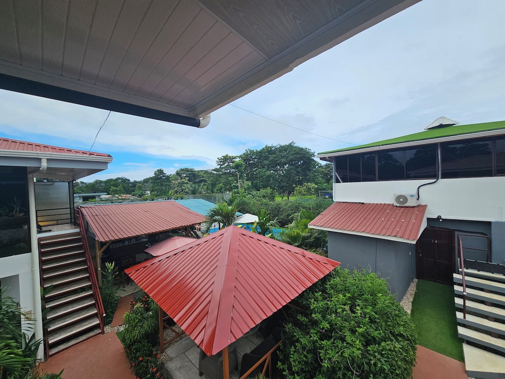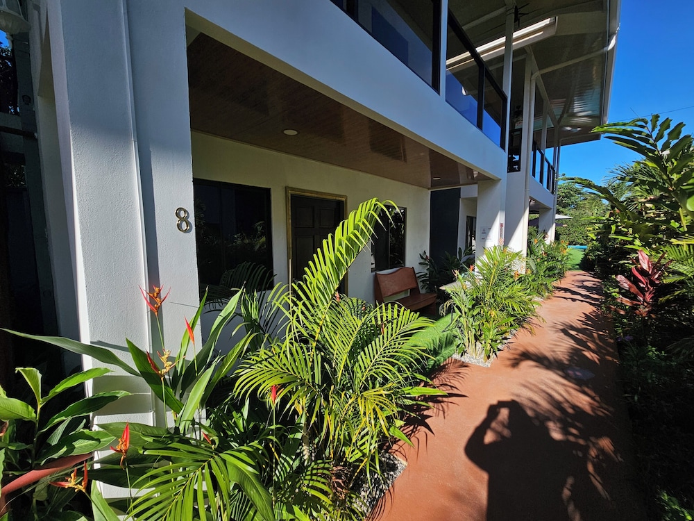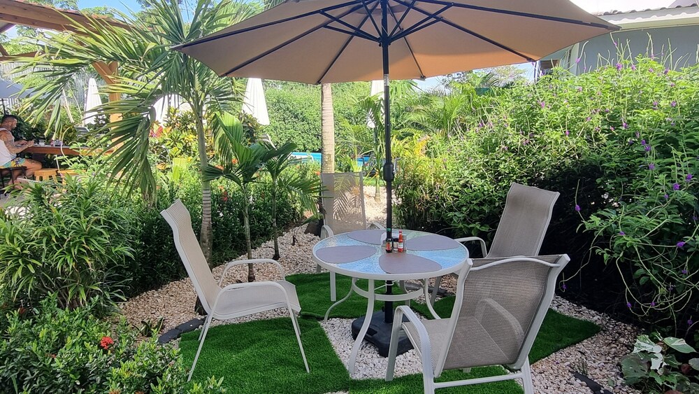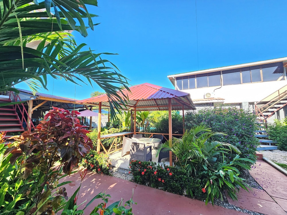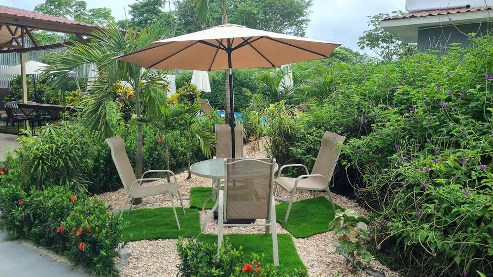 After a very long day in shuttles from Puerto Viejo, Gilberto was a very gracious, friendly and welcoming host. He quickly got us into our room and albeit "Happy Hour" was over, he set us up with a couple beverages and let us get settled. Our room had all the amenities we needed with a nice balcony and view of the tropical gardens. The breakfast was good with several options, and the pool and lounging area were the perfect addition after a day at Bahia Ballena and other excursions. The staff, Jess at the front desk, the cooking and cleaning crew were all wonderful and very friendly. There is a grocery store/deli, Steve's, right at the corner which was great to have, and a restaurant La Fogata directly across from it, with many more dining options just a few minutes walk away. We enjoyed our time in Uvita and happily recommend staying here.