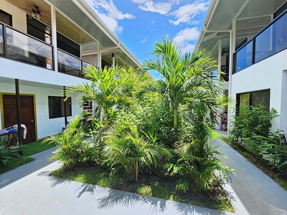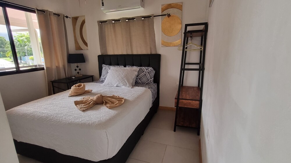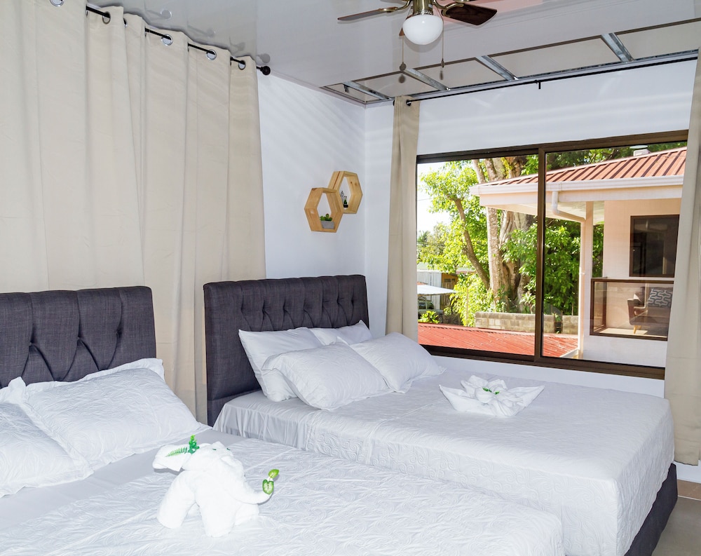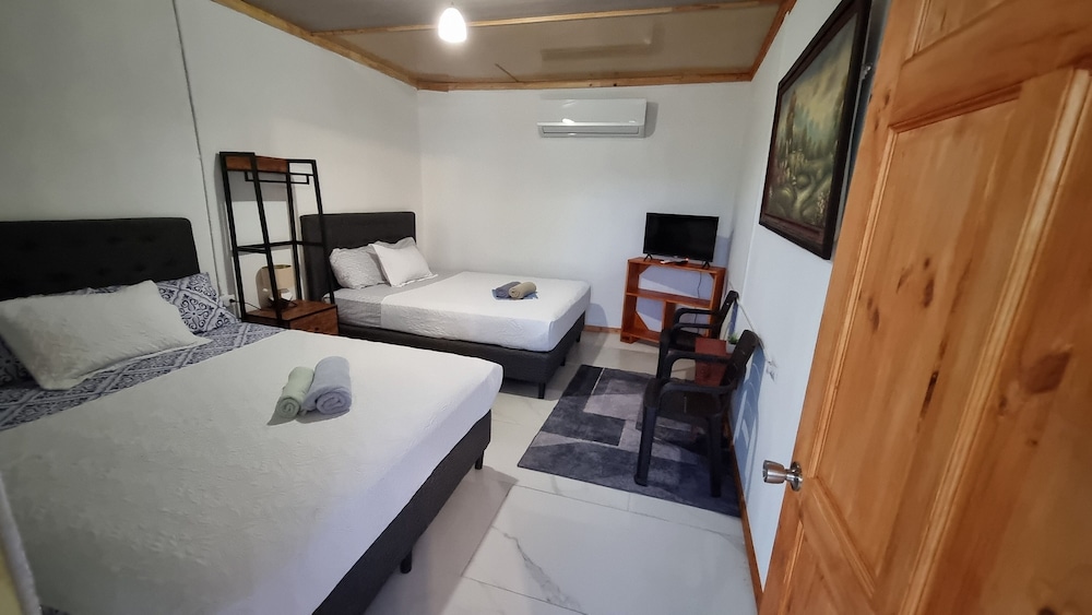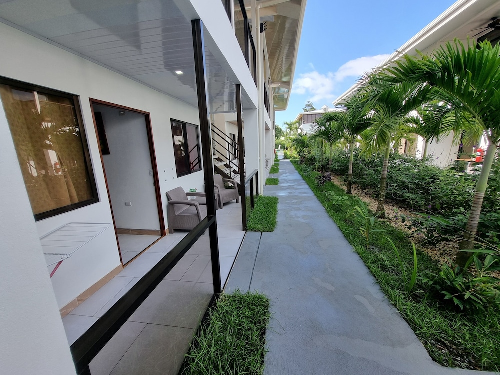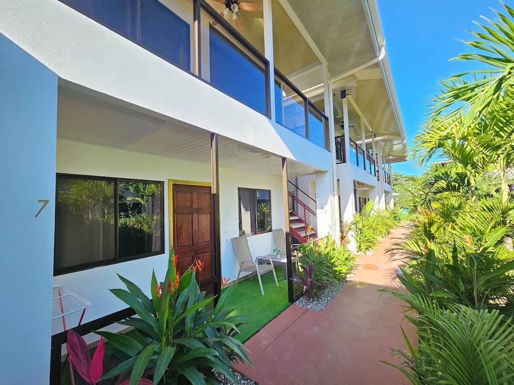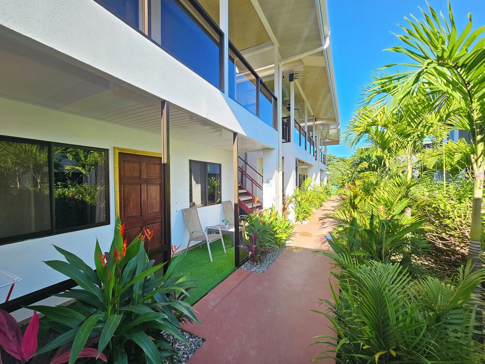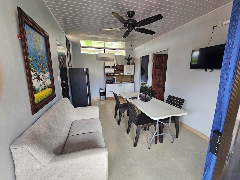 After a very long day in shuttles from Puerto Viejo, Gilberto was a very gracious, friendly and welcoming host. He quickly got us into our room and albeit "Happy Hour" was over, he set us up with a couple beverages and let us get settled. Our room had all the amenities we needed with a nice balcony and view of the tropical gardens. The breakfast was good with several options, and the pool and lounging area were the perfect addition after a day at Bahia Ballena and other excursions. The staff, Jess at the front desk, the cooking and cleaning crew were all wonderful and very friendly. There is a grocery store/deli, Steve's, right at the corner which was great to have, and a restaurant La Fogata directly across from it, with many more dining options just a few minutes walk away. We enjoyed our time in Uvita and happily recommend staying here.