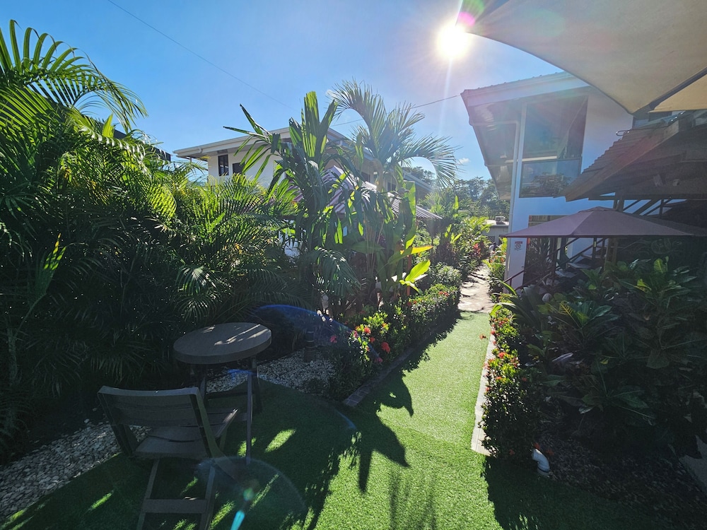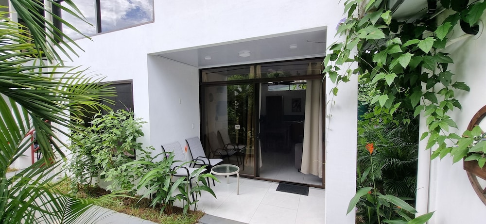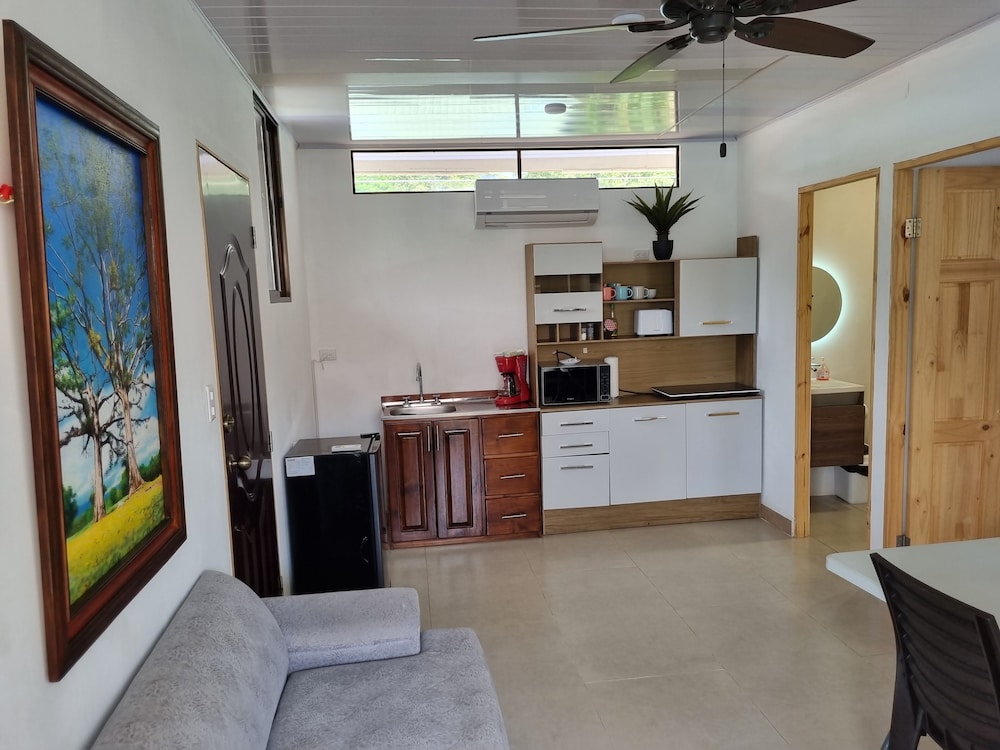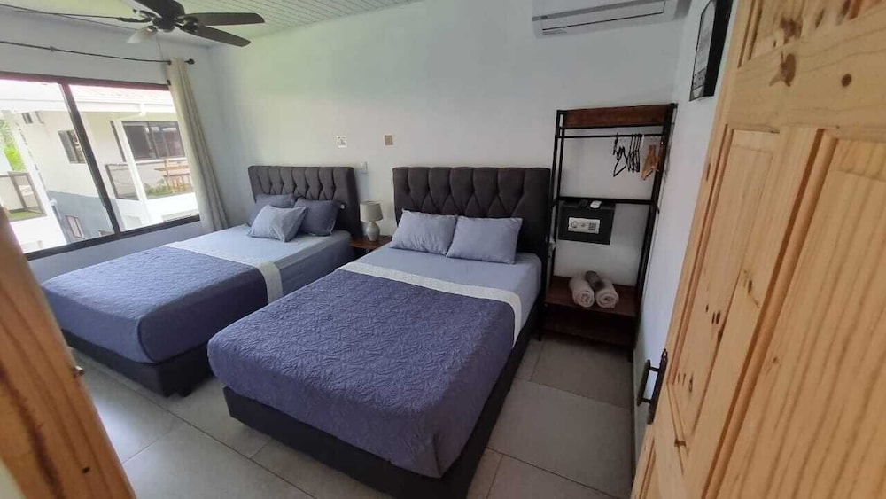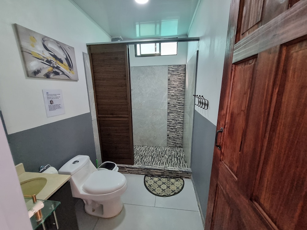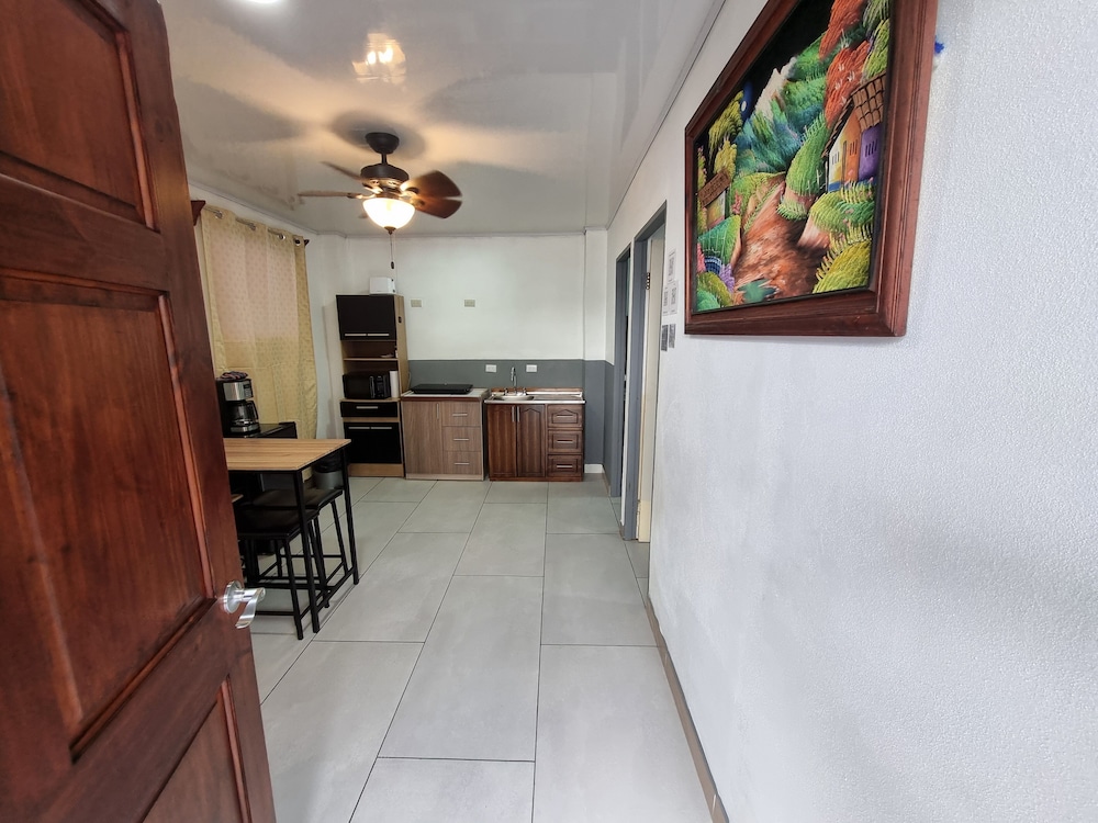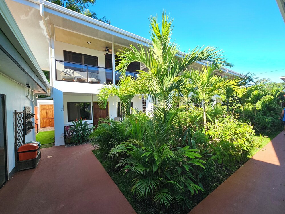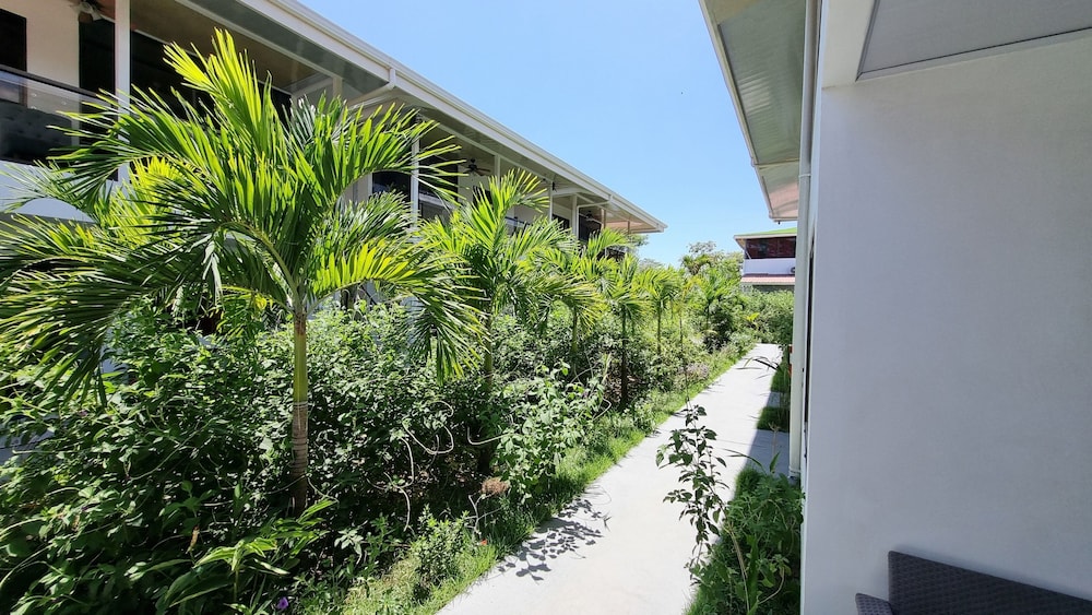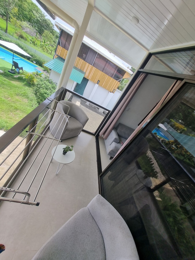 After a very long day in shuttles from Puerto Viejo, Gilberto was a very gracious, friendly and welcoming host. He quickly got us into our room and albeit "Happy Hour" was over, he set us up with a couple beverages and let us get settled. Our room had all the amenities we needed with a nice balcony and view of the tropical gardens. The breakfast was good with several options, and the pool and lounging area were the perfect addition after a day at Bahia Ballena and other excursions. The staff, Jess at the front desk, the cooking and cleaning crew were all wonderful and very friendly. There is a grocery store/deli, Steve's, right at the corner which was great to have, and a restaurant La Fogata directly across from it, with many more dining options just a few minutes walk away. We enjoyed our time in Uvita and happily recommend staying here.