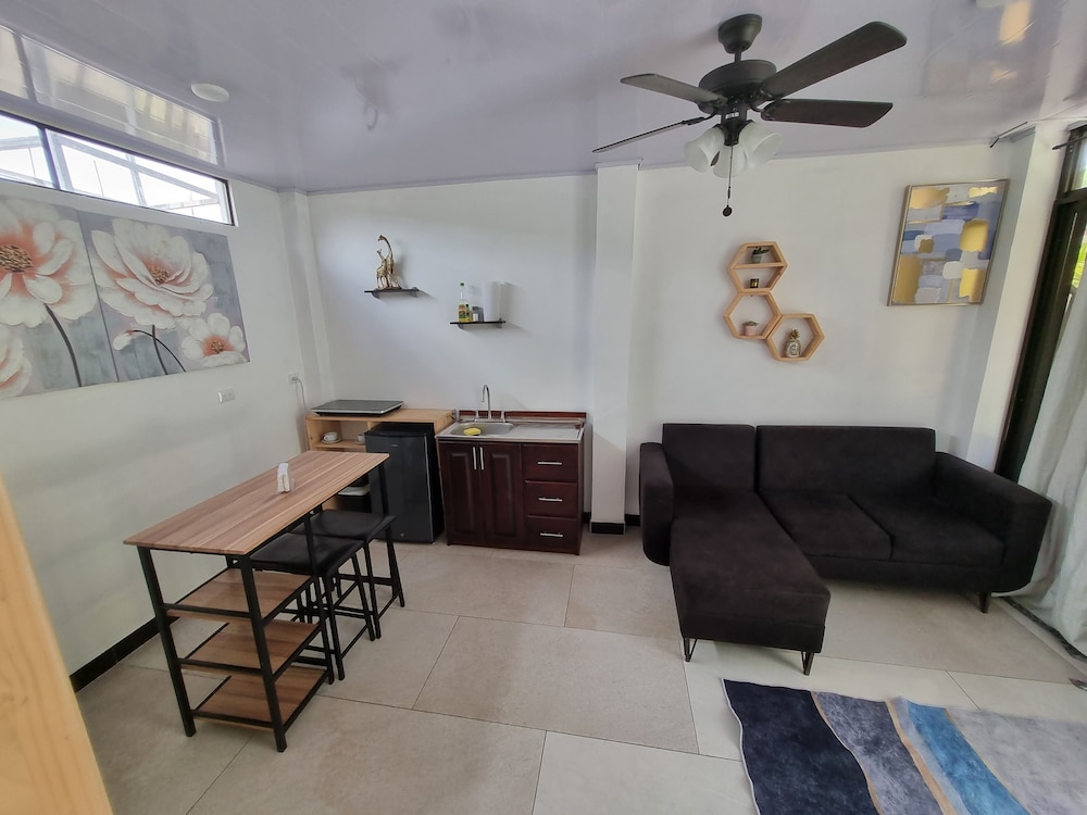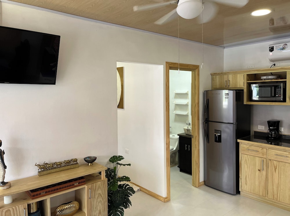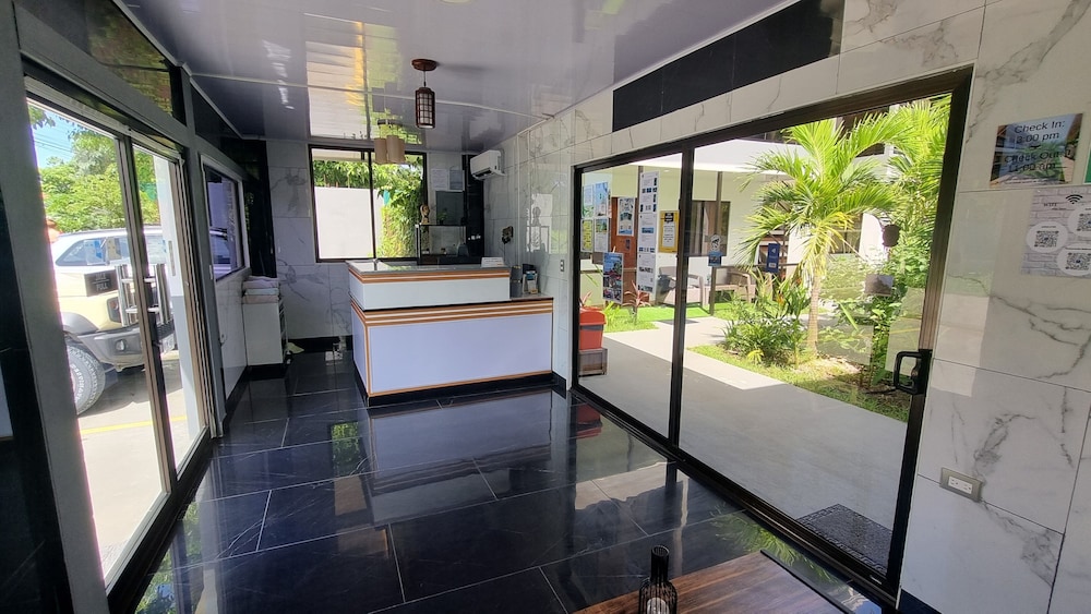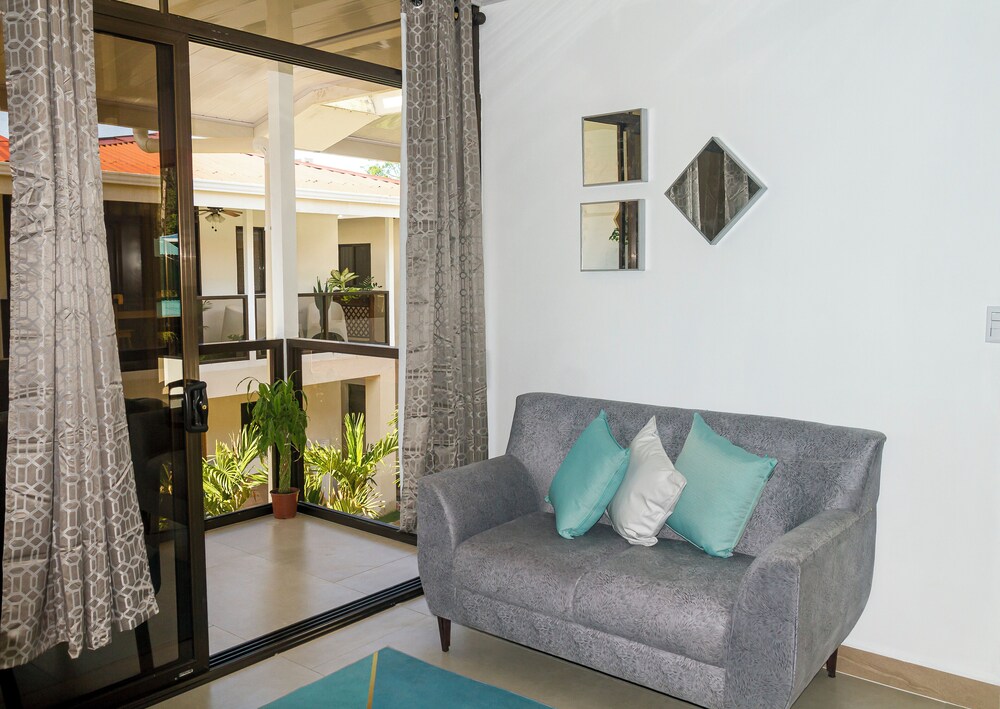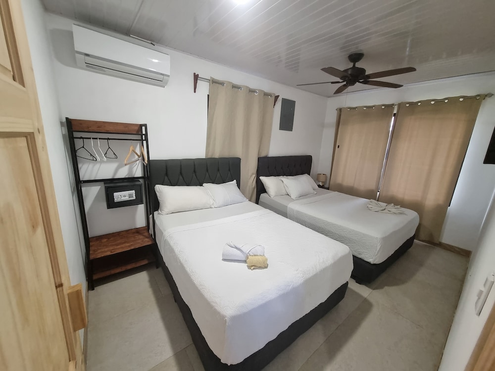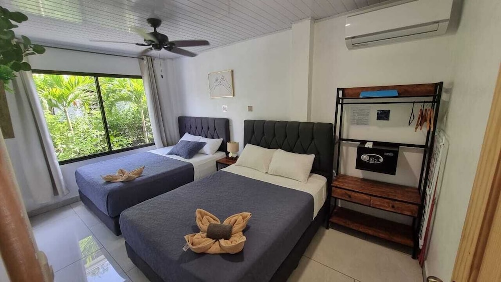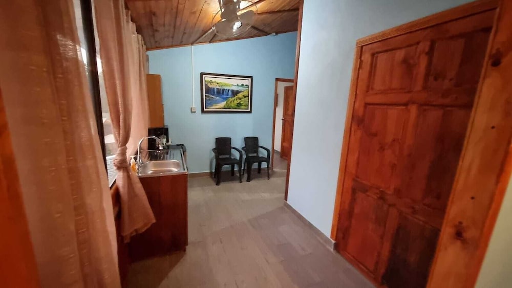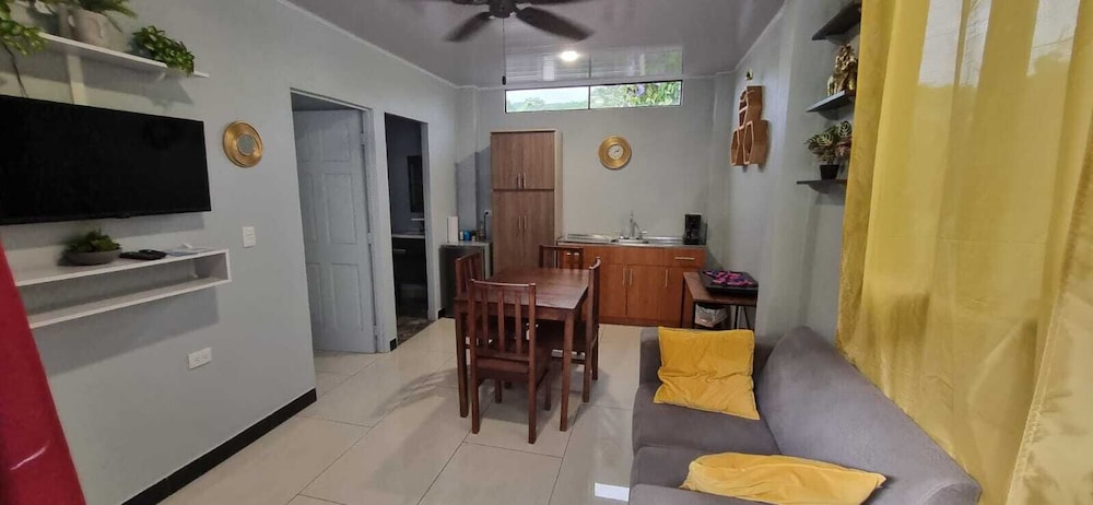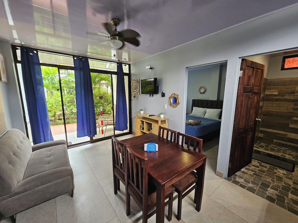 After a very long day in shuttles from Puerto Viejo, Gilberto was a very gracious, friendly and welcoming host. He quickly got us into our room and albeit "Happy Hour" was over, he set us up with a couple beverages and let us get settled. Our room had all the amenities we needed with a nice balcony and view of the tropical gardens. The breakfast was good with several options, and the pool and lounging area were the perfect addition after a day at Bahia Ballena and other excursions. The staff, Jess at the front desk, the cooking and cleaning crew were all wonderful and very friendly. There is a grocery store/deli, Steve's, right at the corner which was great to have, and a restaurant La Fogata directly across from it, with many more dining options just a few minutes walk away. We enjoyed our time in Uvita and happily recommend staying here.