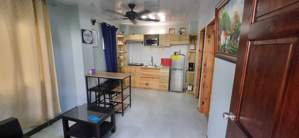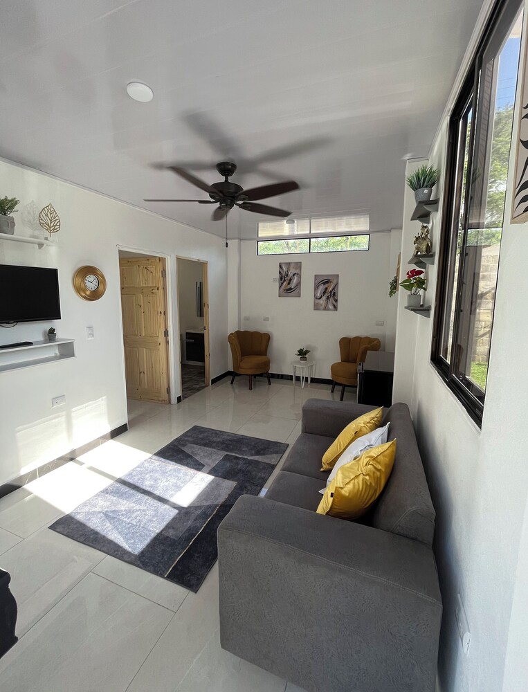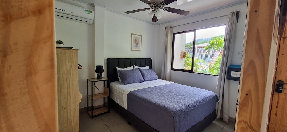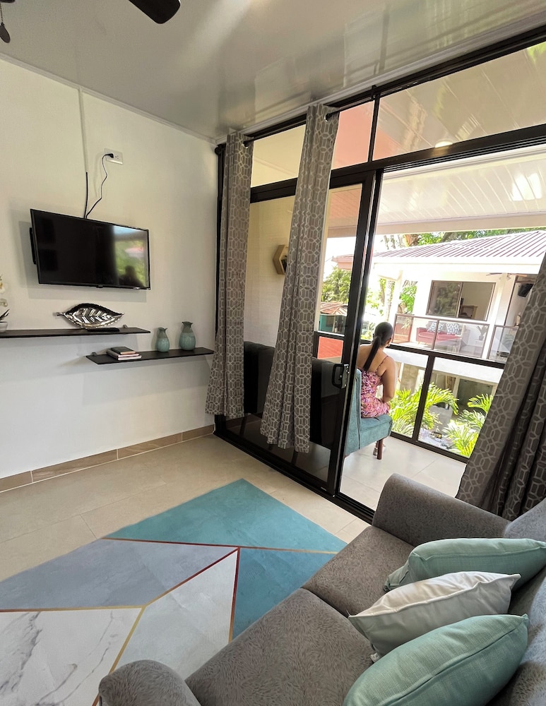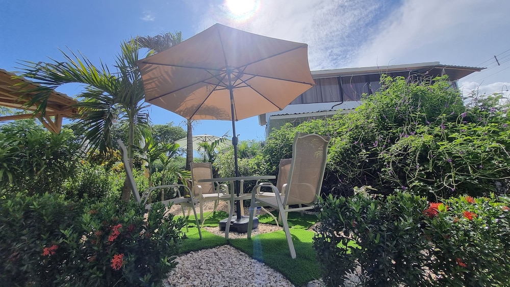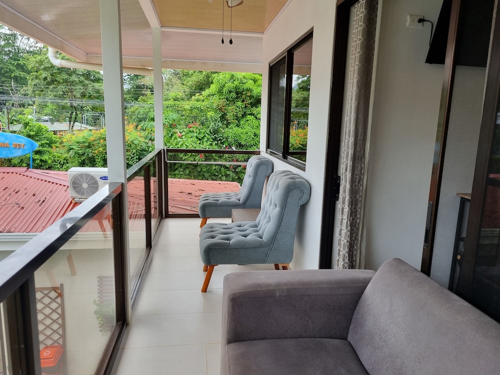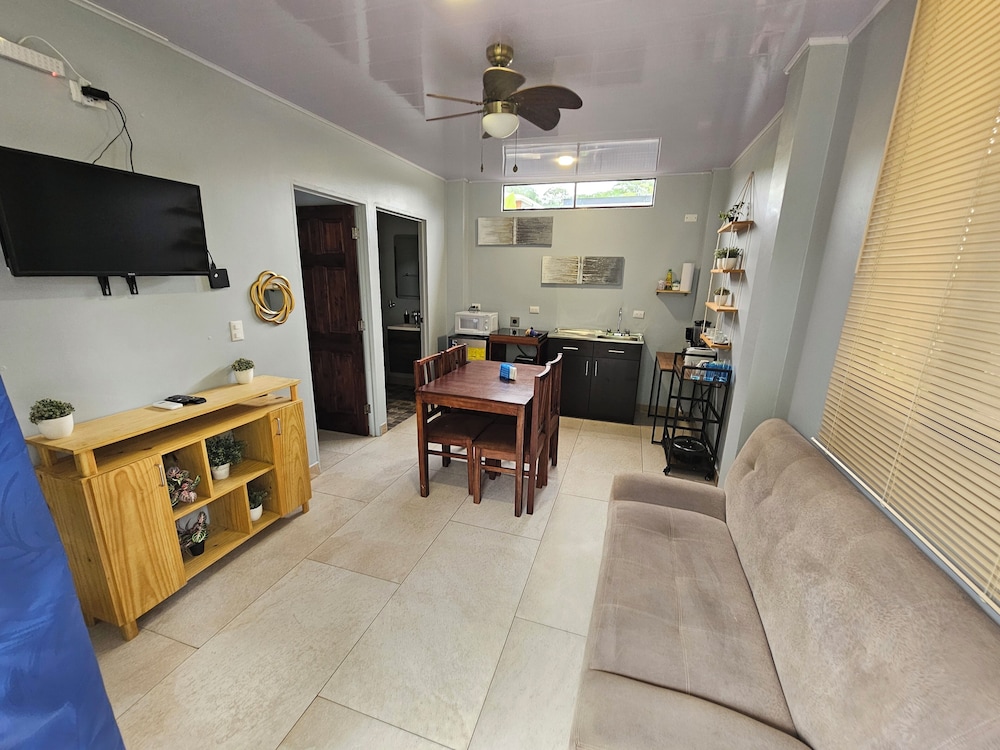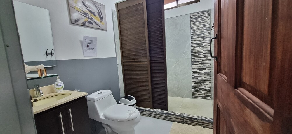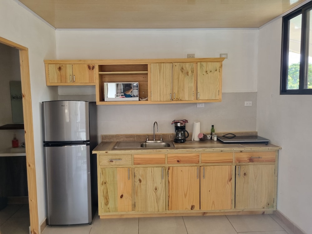 After a very long day in shuttles from Puerto Viejo, Gilberto was a very gracious, friendly and welcoming host. He quickly got us into our room and albeit "Happy Hour" was over, he set us up with a couple beverages and let us get settled. Our room had all the amenities we needed with a nice balcony and view of the tropical gardens. The breakfast was good with several options, and the pool and lounging area were the perfect addition after a day at Bahia Ballena and other excursions. The staff, Jess at the front desk, the cooking and cleaning crew were all wonderful and very friendly. There is a grocery store/deli, Steve's, right at the corner which was great to have, and a restaurant La Fogata directly across from it, with many more dining options just a few minutes walk away. We enjoyed our time in Uvita and happily recommend staying here.