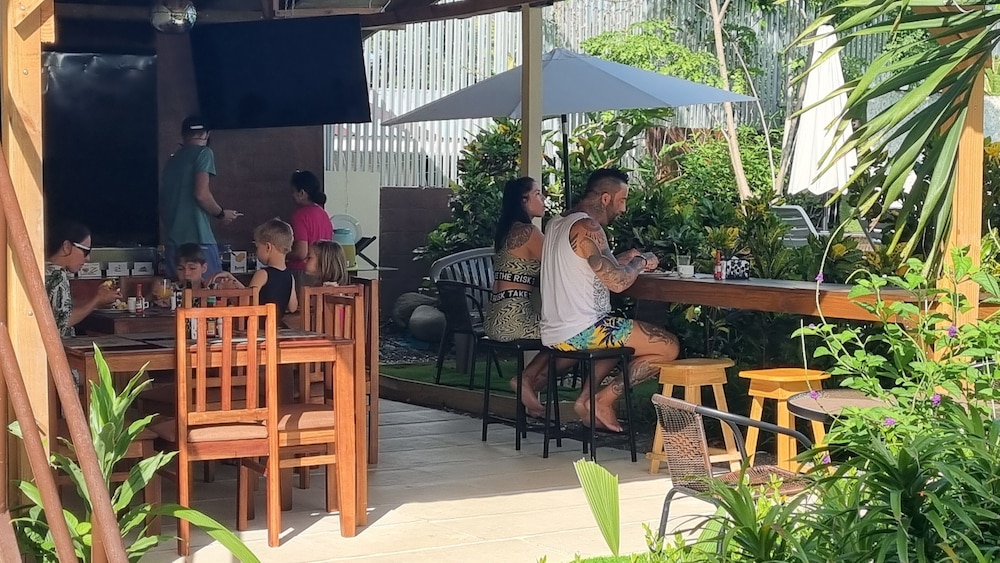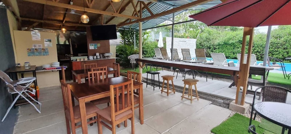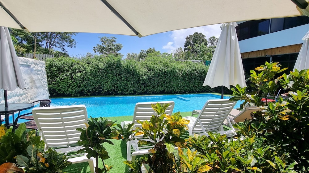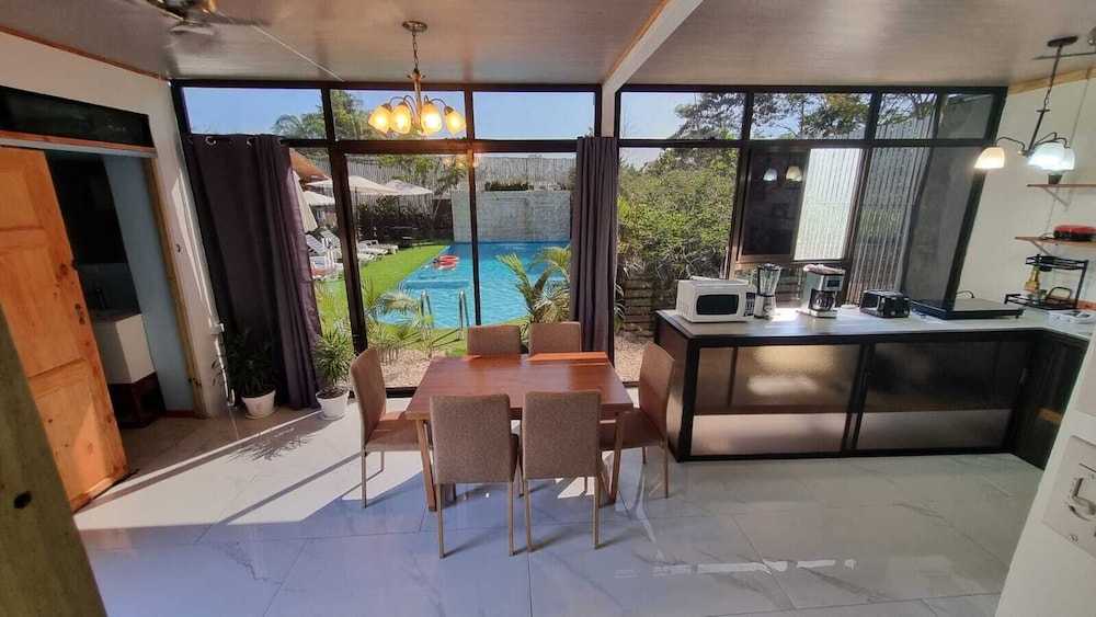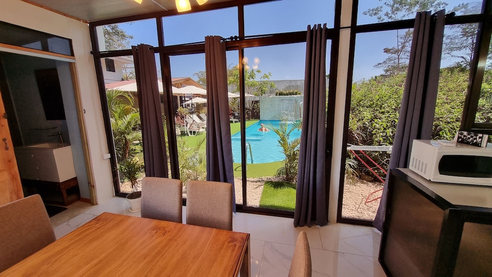 Gréât customer service. Pool is great. Breakfast is complete: coffee, juice, fruits, bacon, eggs, pancake, rice/bean, etc. Towels for pool, parking, ac, clean, mini kitchen, etc