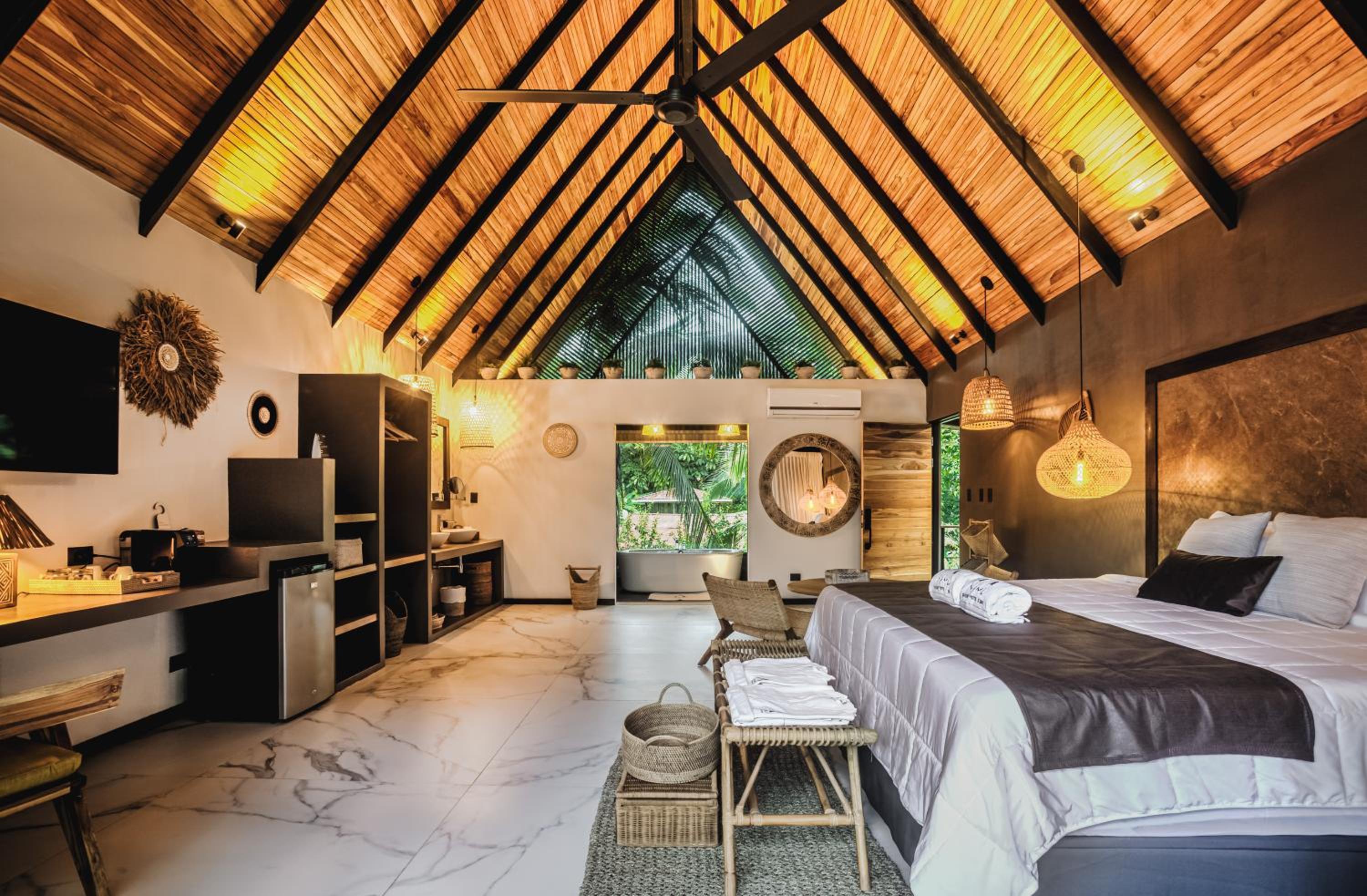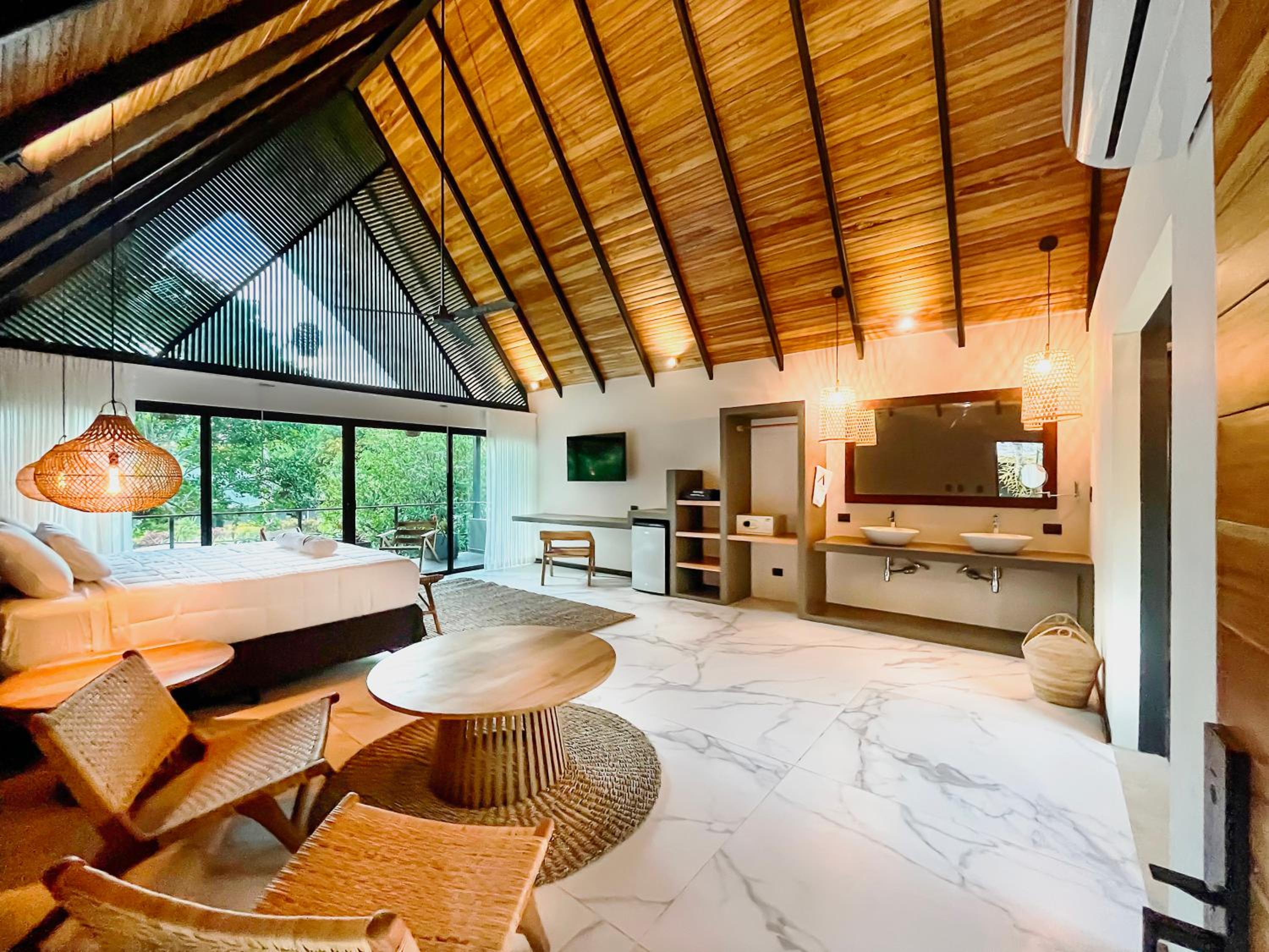 Wake up to breathtaking mountain views from select rooms with balconies, or take a short walk to Cocles Beach for a day of sun and surf. For nature enthusiasts, the Jaguar Rescue Center is a nearby must-visit spot to explore local wildlife.