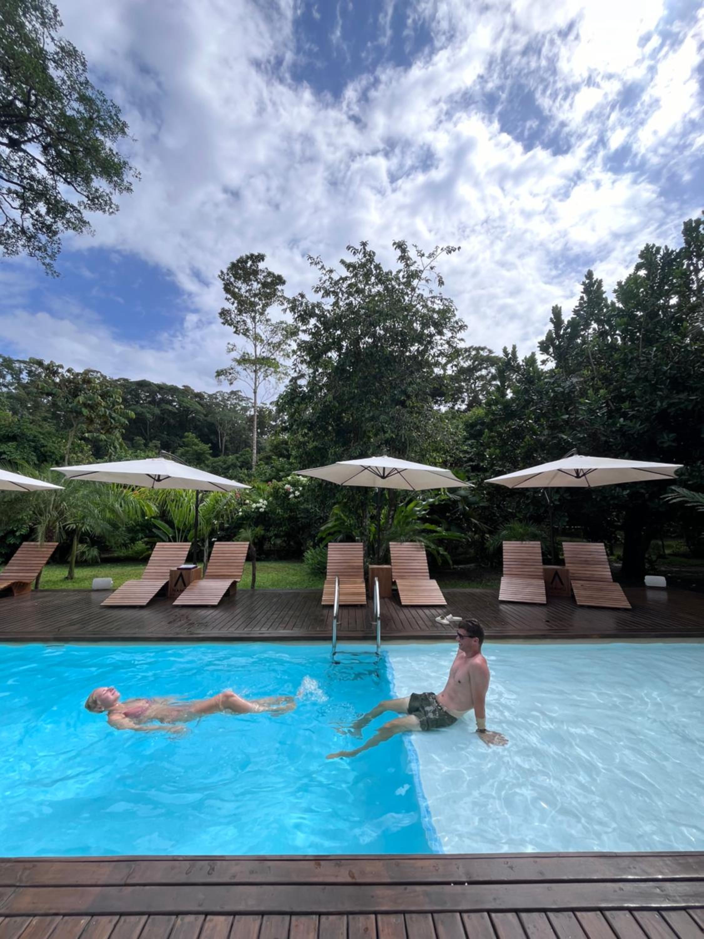 Piscine privé pas chauffé, l’eau de la douche fraîche le soir, l’étanchéité du bungalow (cafards qui rentrent dans la chambre malgré qu’elle soit fermée)