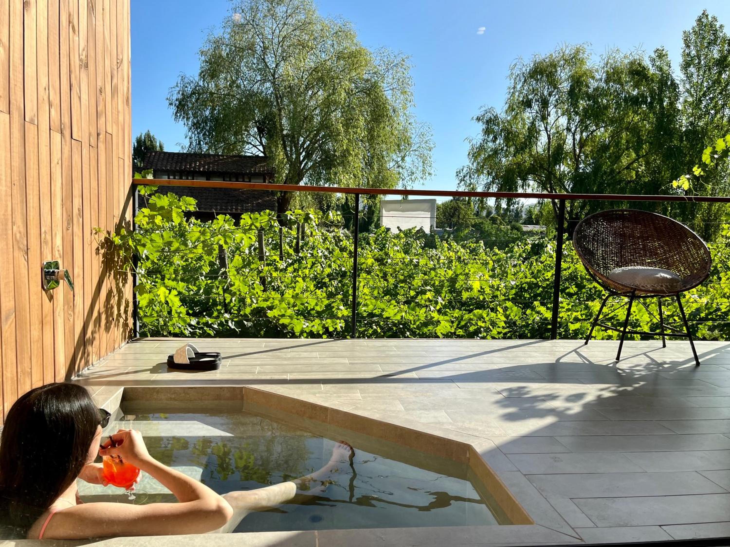 Wow! What an incredible place. Beautiful boutique hotel with incredible, attentive service and really good food and drinks. You never have to leave if you don't have to! 2 beautiful pools, spacious rooms with a hot tub on a balcony overlooking a vineyard. Full service restaurant and bar, you can get your breakfast or dinner served in your room if you don't want to leave. Free bottle of wine at the pool everyday! Great location as well - you can borrow bikes for free and ride into town or to a couple of vineyards. The owner, Felipe, was so incredibly nice and generous. When we couldn't find a ride back from a vineyard, he came and got us himself. 10/10 recommend!