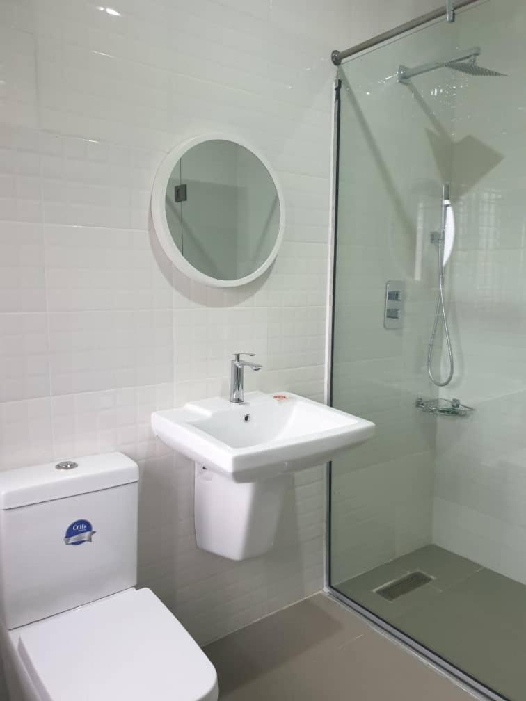 The shower cubicle was disappointing. The shower curtain drop was short, which allowed water onto the floor when running the shower.