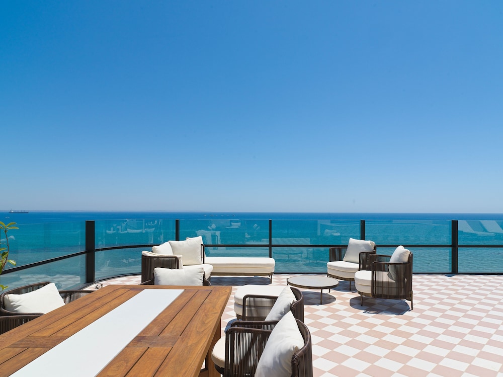 Fantastic location. We had two Couples and rented a 2BR room. It had a full kitchen, 2 bathrooms and a wrap around balcony with an amazing view of the Mediterranean Sea! The staff is super friendly and free water, tea and coffee for the room. Restaurant's are very walkable with a lot within 1.5 miles. Highly recommend!