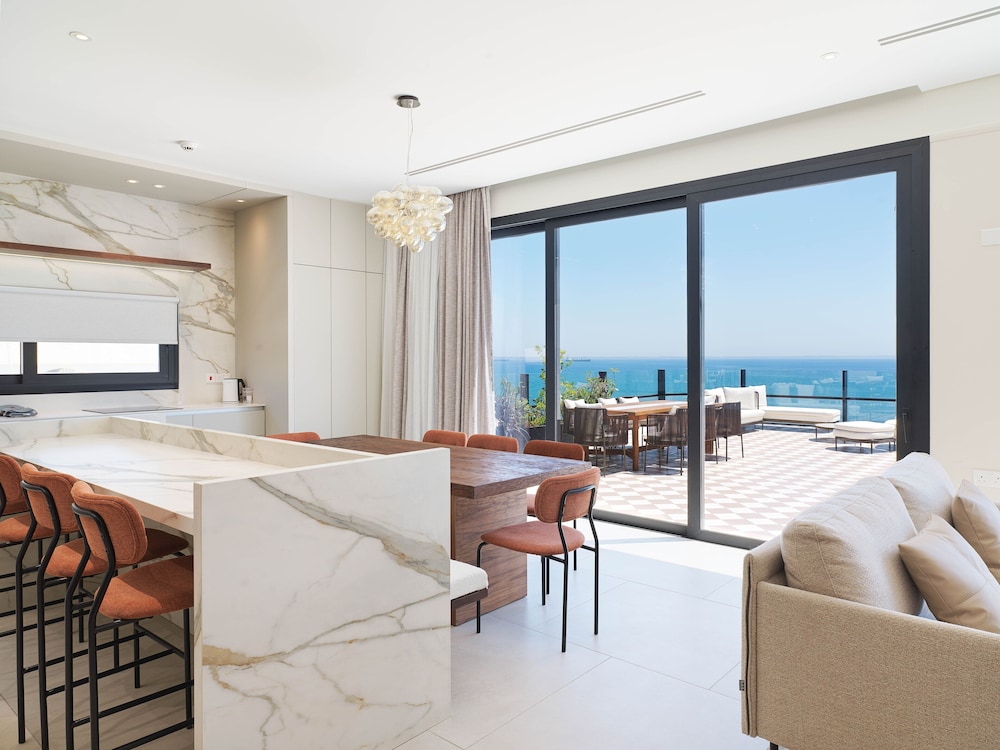 We stayed in a 2 bedroom apartment with sea view. It was absolutely beautiful, right across from the beach, the apartment was spacious and comfortable. There were plenty of restaurants along the promenade to choose from. The staff were friendly and welcoming. Very close to Larnaca airport. Definitely recommend.