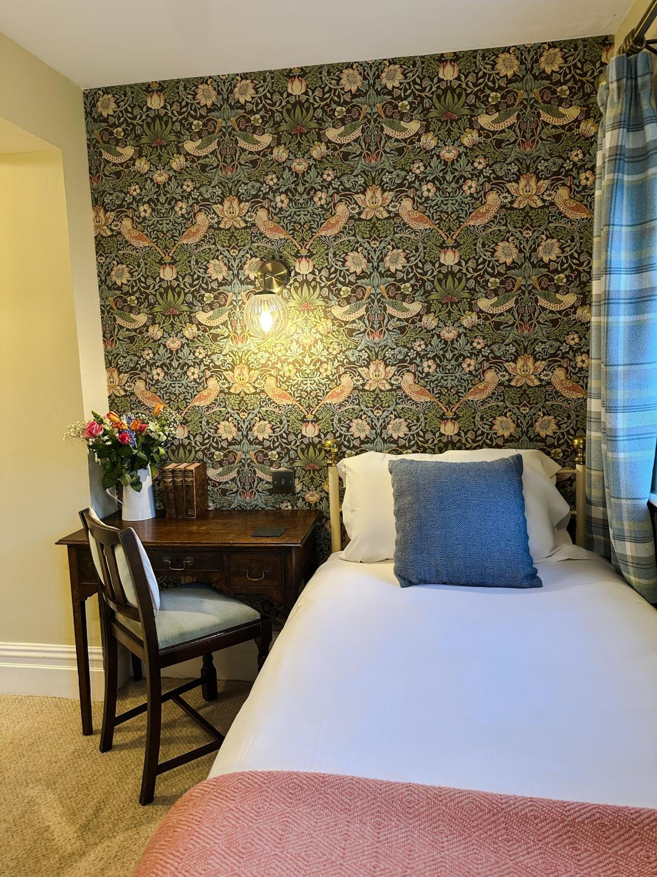 We stayed at three cocks to attend the hay festival. It was a great location for this. The lady on reception was so friendly and helpful. The rooms are beautifully decorated. It’s good to note there wasn’t food/drink available in the evening but this didn’t bother us as we were out and about. The lounge room had a record player and games which we enjoyed when we got back in the evening. They served a lovely cooked breakfast, which you order the night before. All in all a comfortable and friendly place. We would happily stay again.