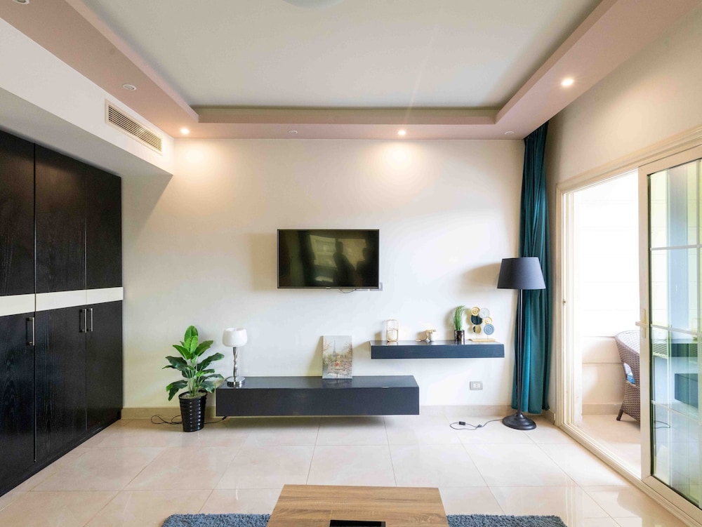 The problem of the property is that there is not a good connection between the 2 sides of the road. It's very hard for european to cross the roads while no traffic light works to guarantee a safe passage on the other side of the road where the mall is located nearby. The property was clean and good equipped. Internet working well. Good to move by UBER or similar.