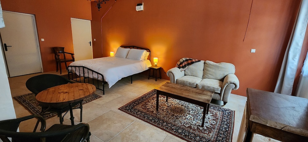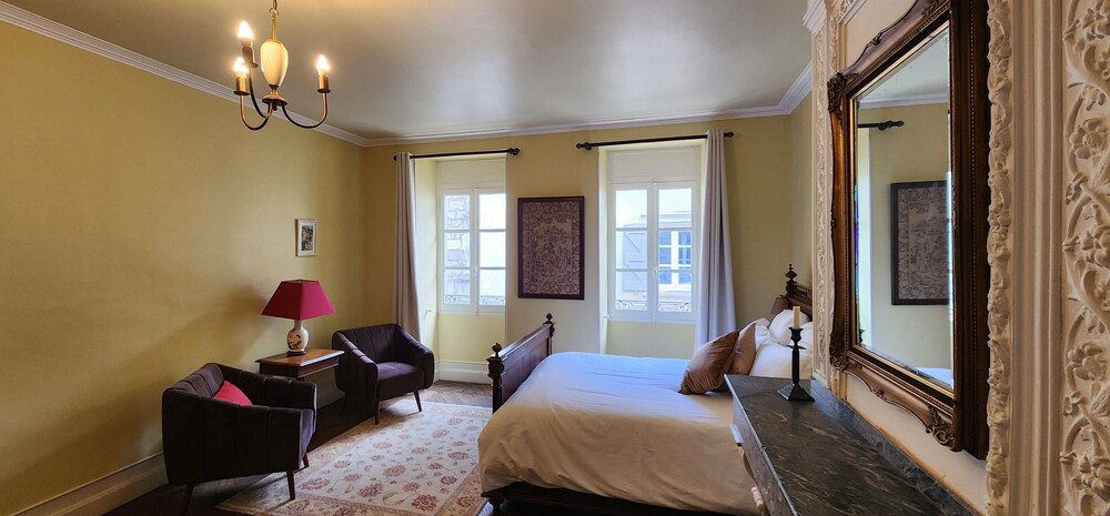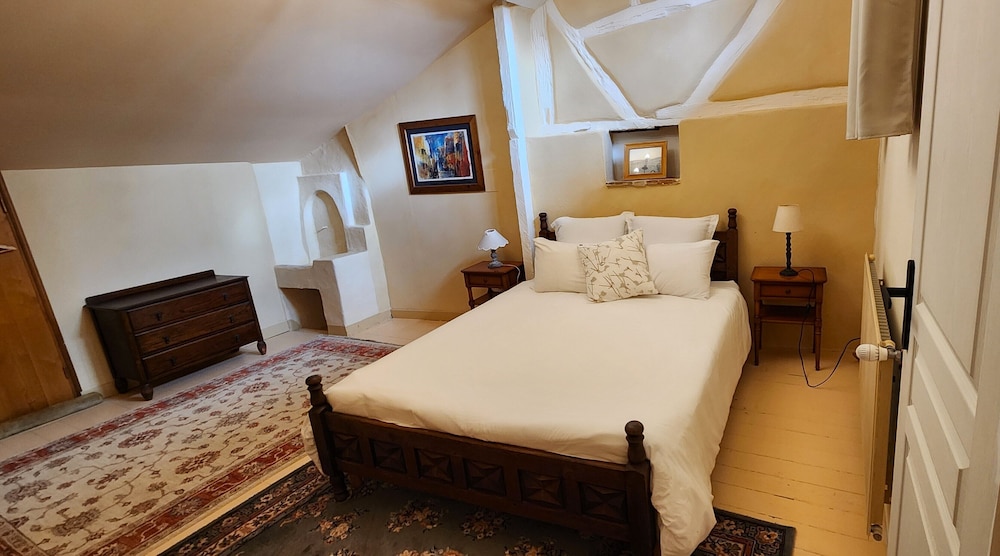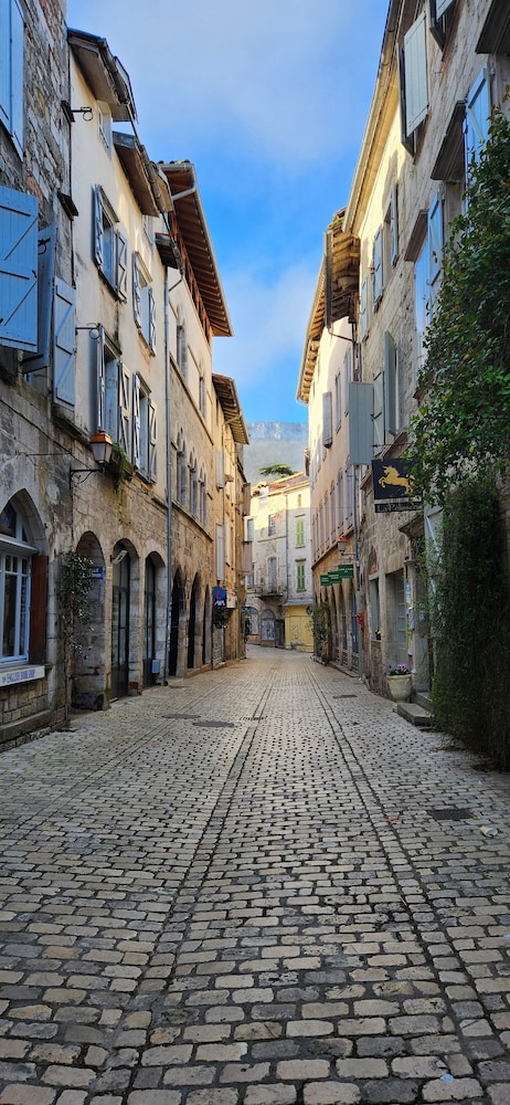 Beaucoup de charme, chambre spacieuse, équipée d’un coin cuisine, wifi, donne en rdc sur la principale rue piétonne de la ville ancienne, mais calme et parking public à 50 m. Matelas un peu mou à mon goût, rien de grave.