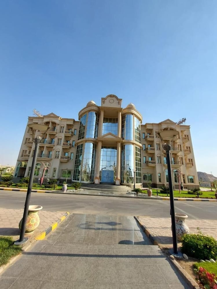 Clean and safe hotel inside a walled compound. Big outdoor pool in the summer but closed in winter. Very friendly staff. Mohab at reception is very helpful and speaks good English. Convenient for the airport and International Conference Centre. Only a 60EP Uber to either. Far from Cairo centre. There is nothing outside the hotel complex. Heavy security at the compound gate. 500EP Uber to the pyramids or GEM museum. Cashpoint for VISA cards in compound for Egyptian pounds. No hidden charges. Friendly restaurant staff. Good for traditional chicken or skewer dishes. Breakfast is either Egyptian, continental, or omelette